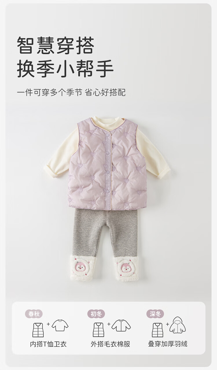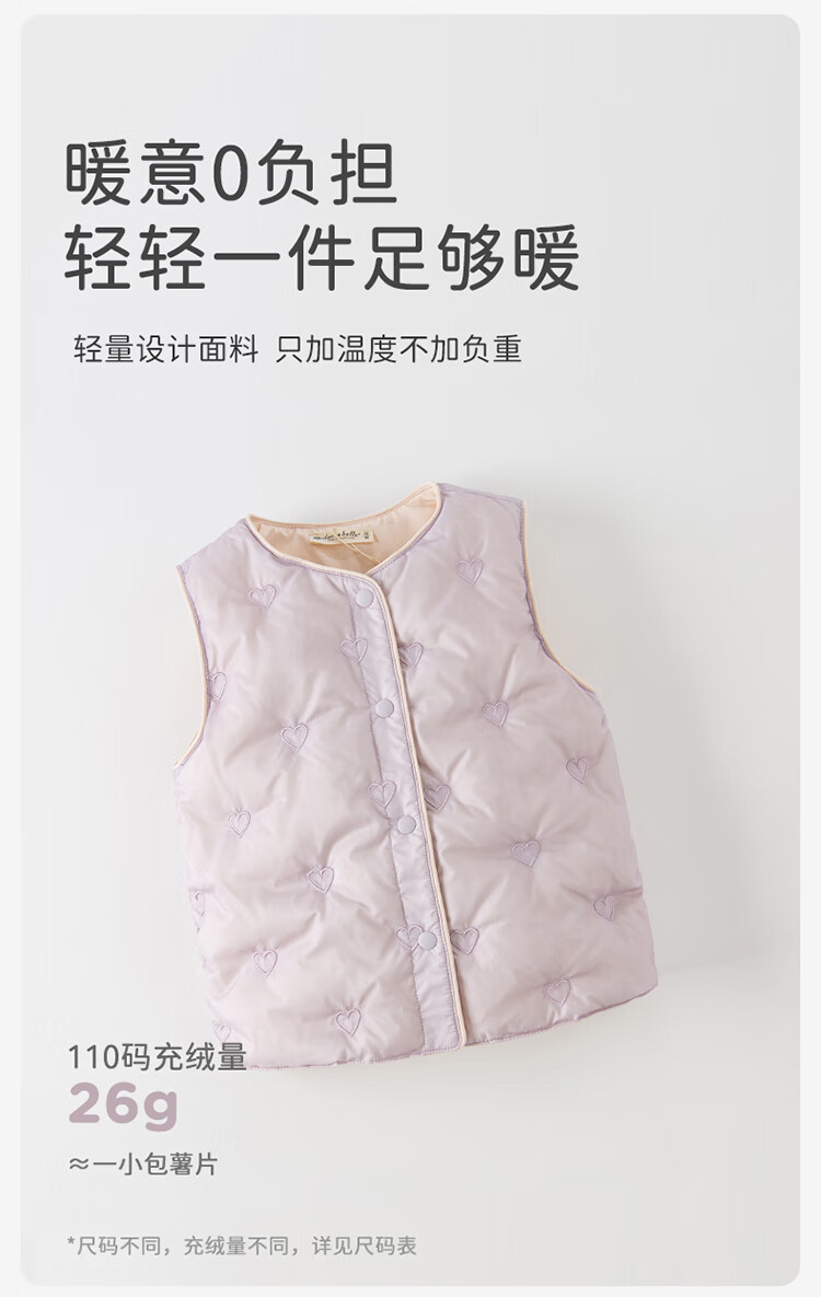 DAVE&BELLA girls' down vest, winter clothing, children's vest, baby thin vest, school uniform artifact, inner wear for children