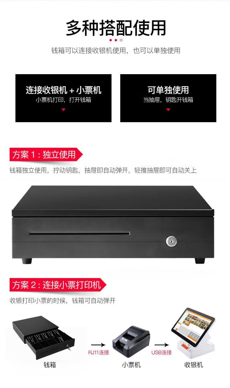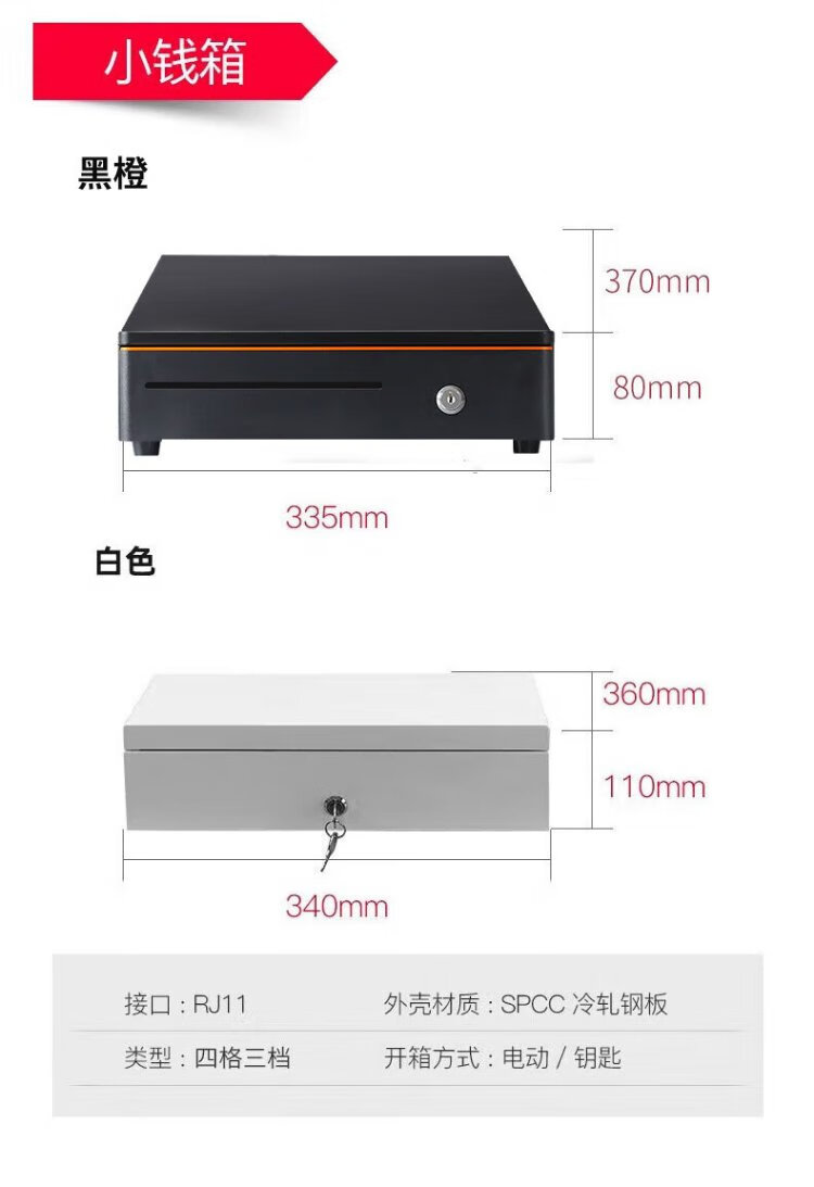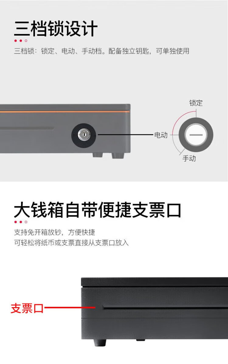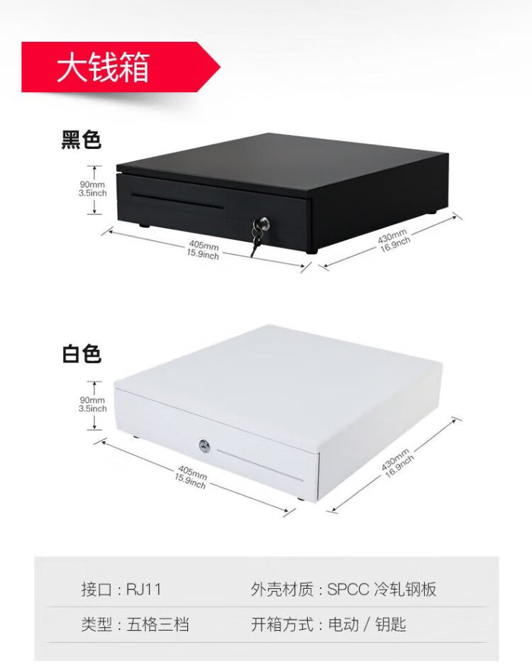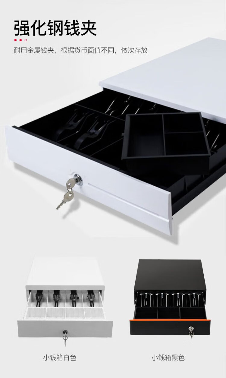 Aojia cash box with lock cashier box cashier box black and white box thickened silver receiver three-speed lock smart cash box universal money box money box