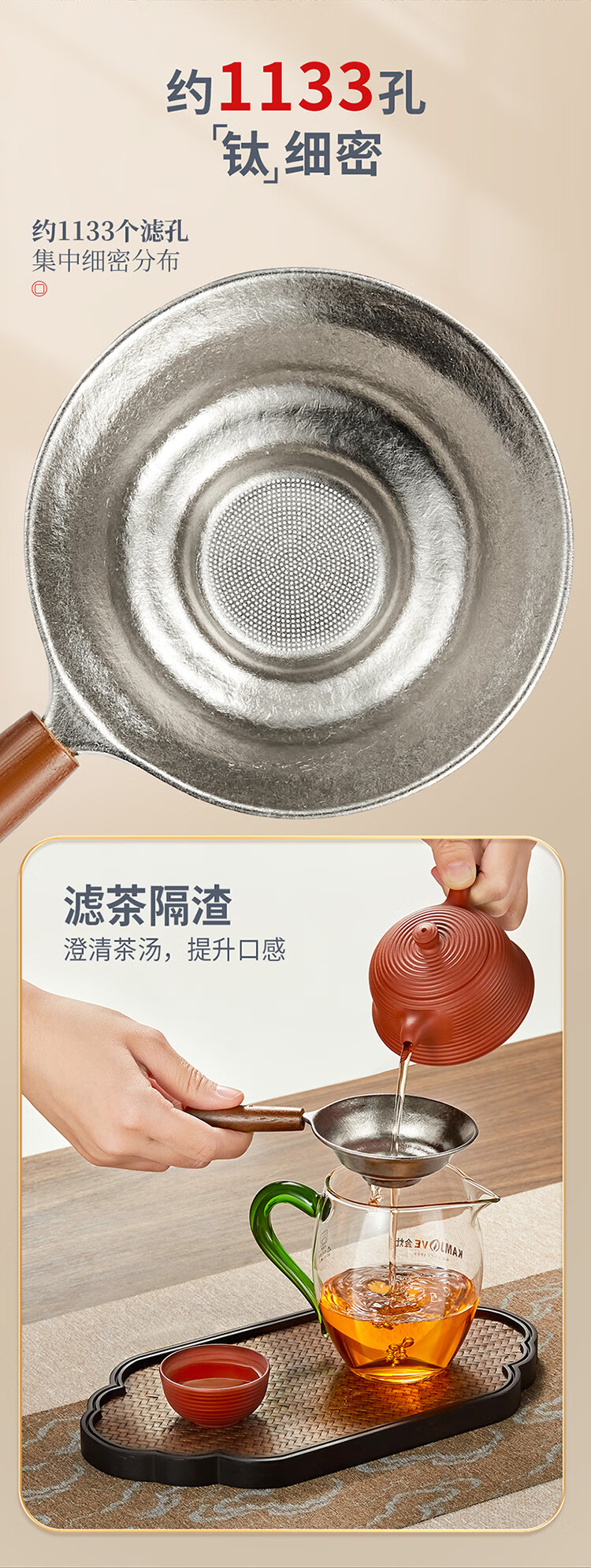 KAMJOVE titanium tea leakage tea filter integrated tea filter ultra-fine tea filter fair cup tea separator titanium tea filter