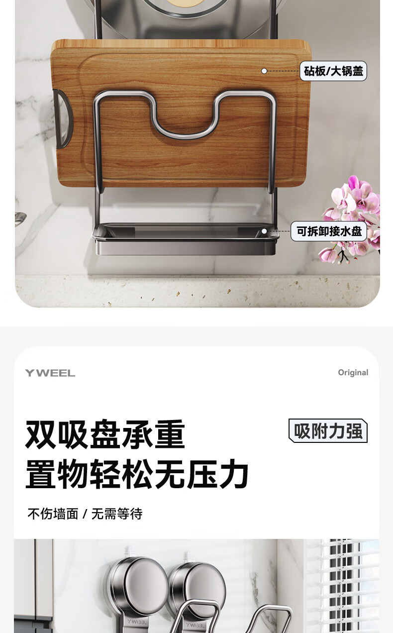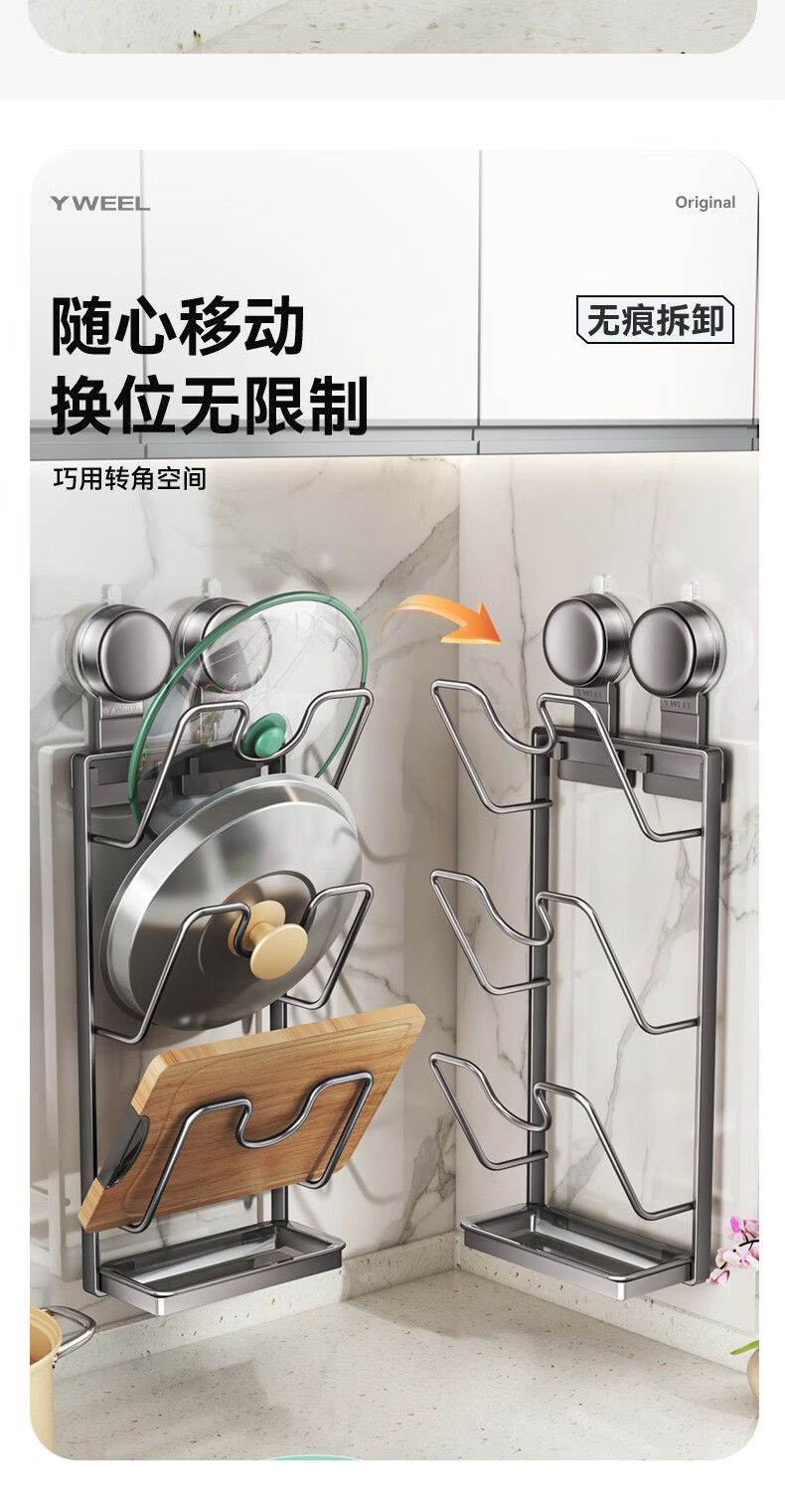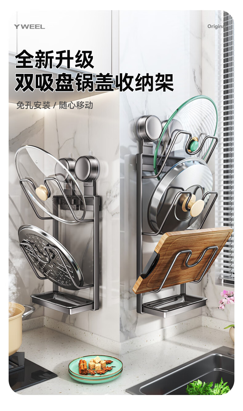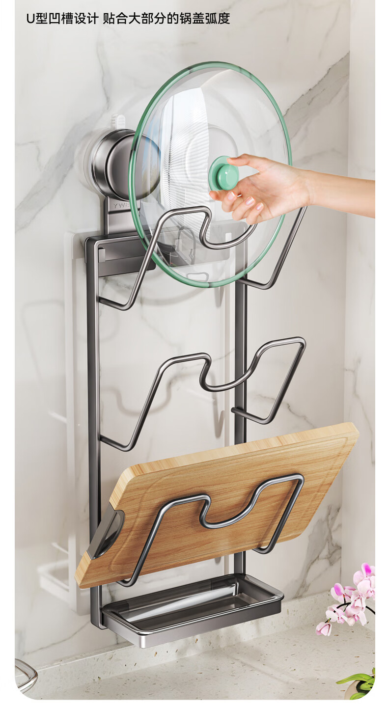 Yweel suction cup pot lid rack wall-mounted punch-free kitchen storage rack multi-functional storage rack cutting board rack multi-layer cutting board rack