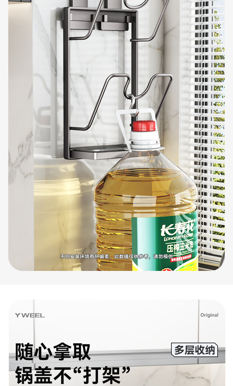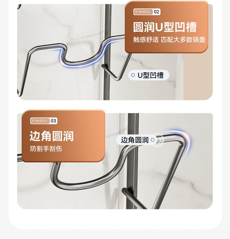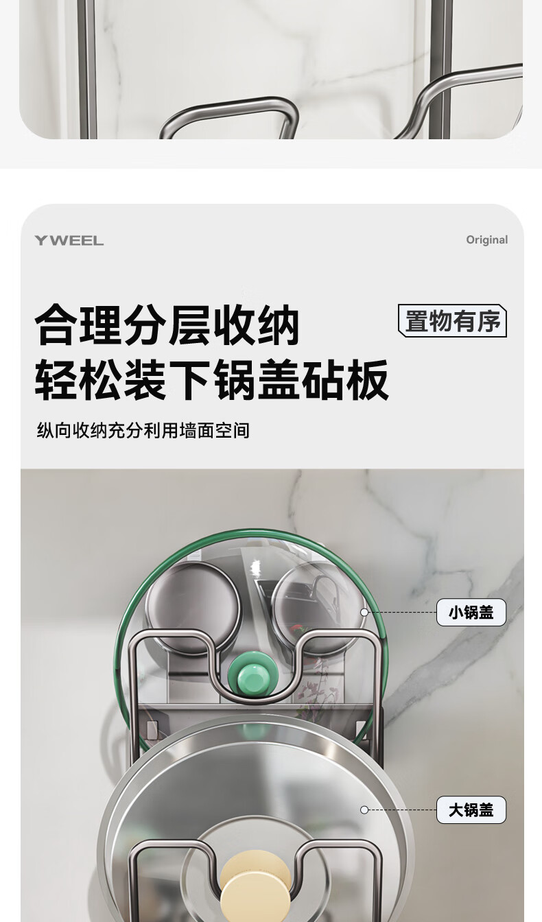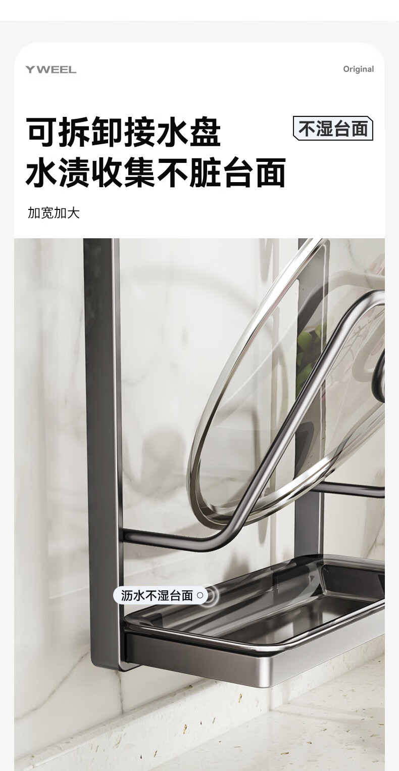 Yweel suction cup pot lid rack wall-mounted punch-free kitchen storage rack multi-functional storage rack cutting board rack multi-layer cutting board rack