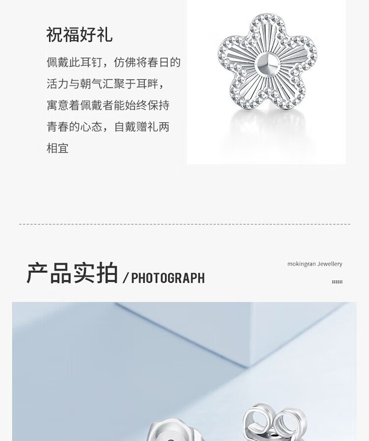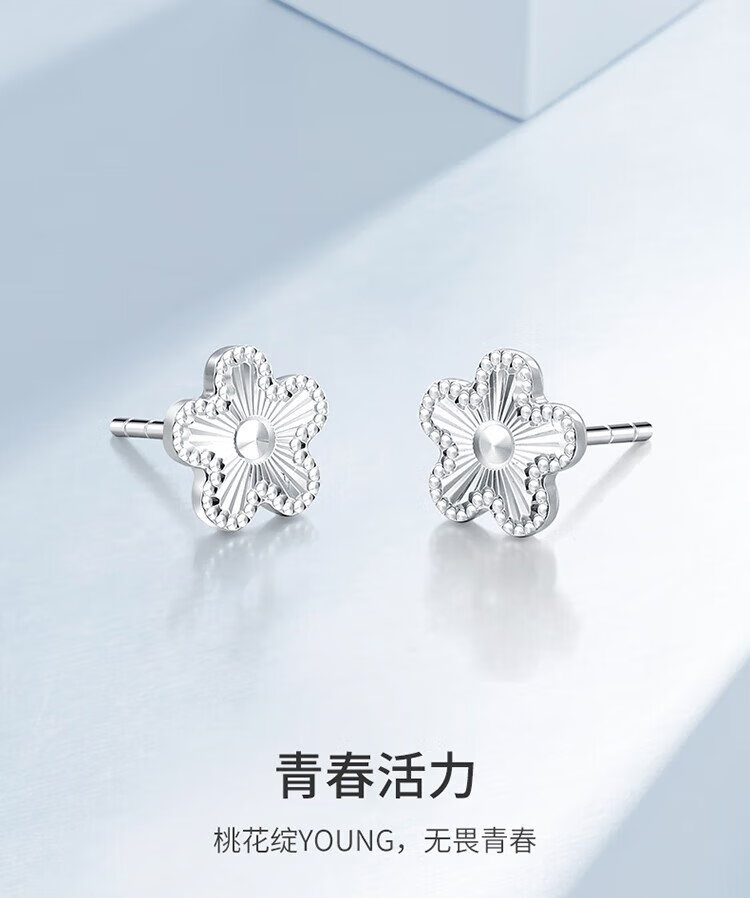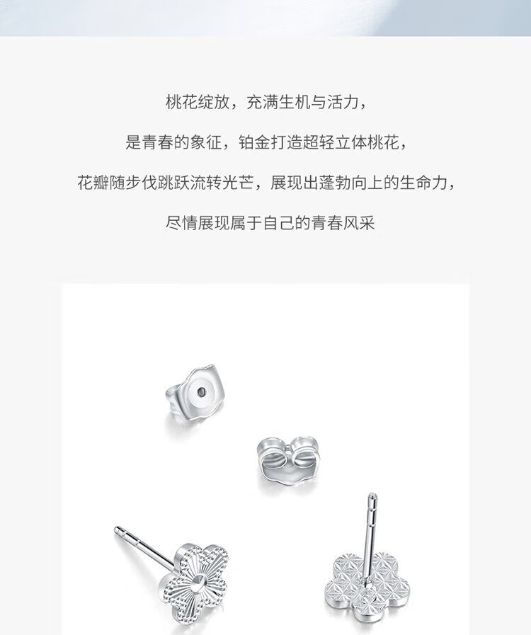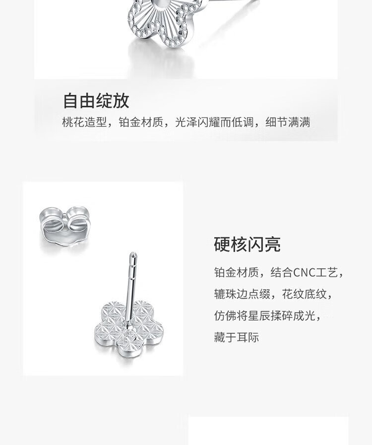Mengjinyuan Platinum Earrings PT950 Utopia Peach Blossom Earrings Carved Earrings as a Gift for Your Girlfriend