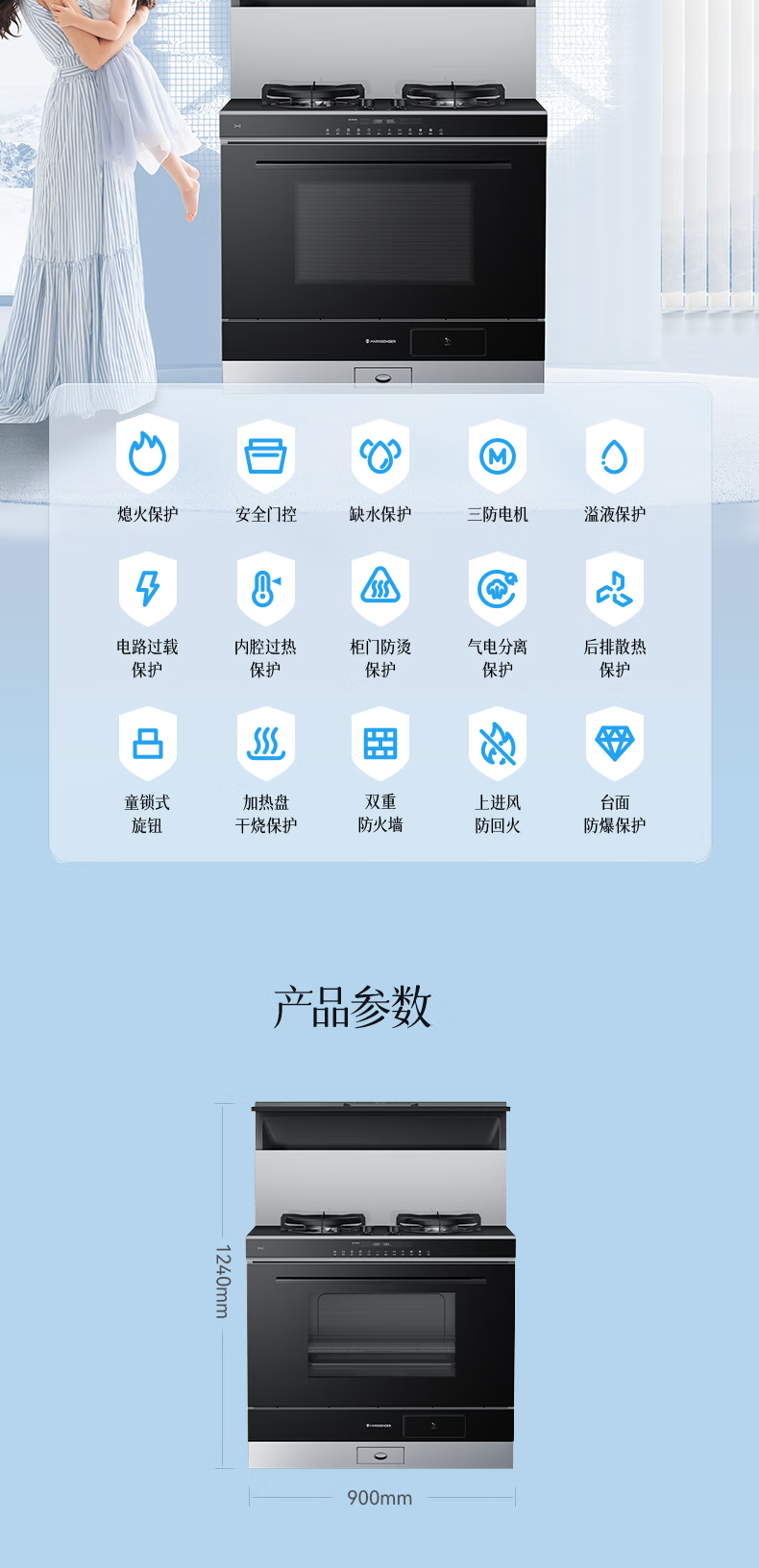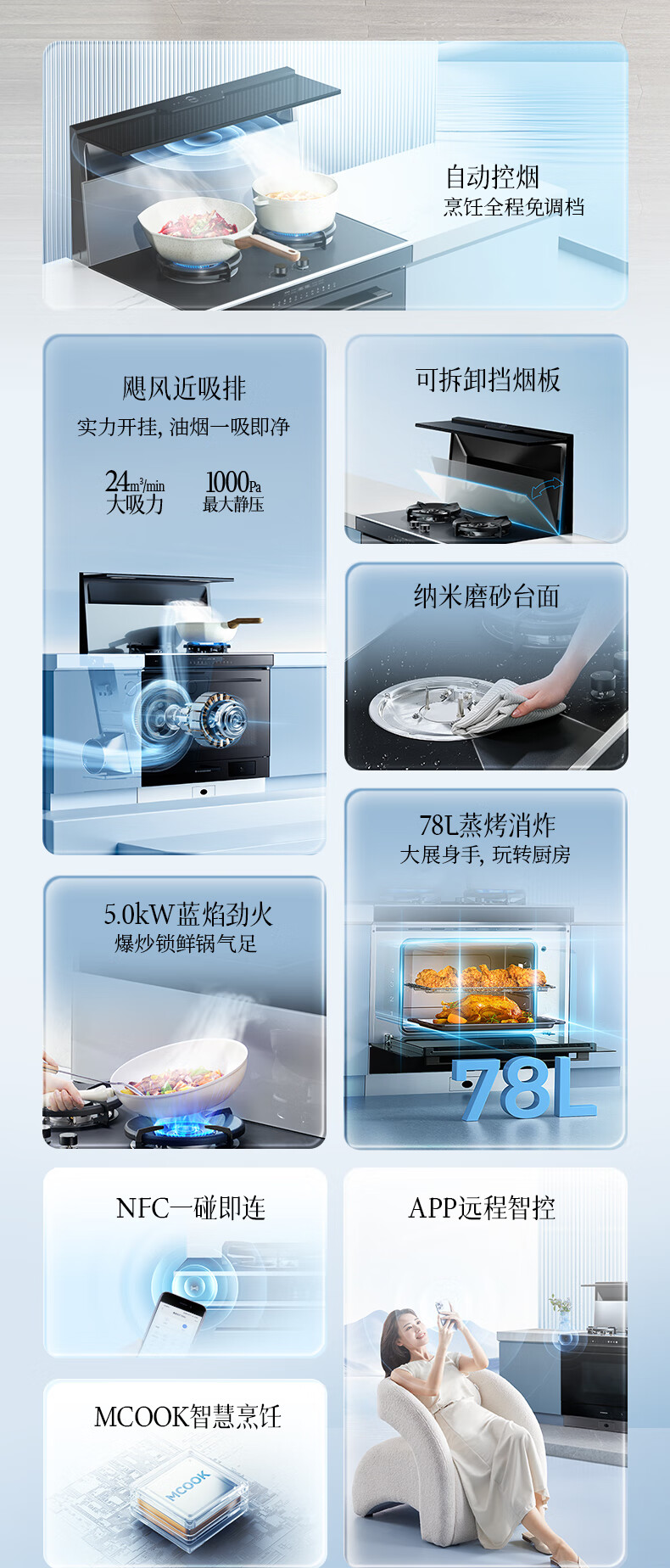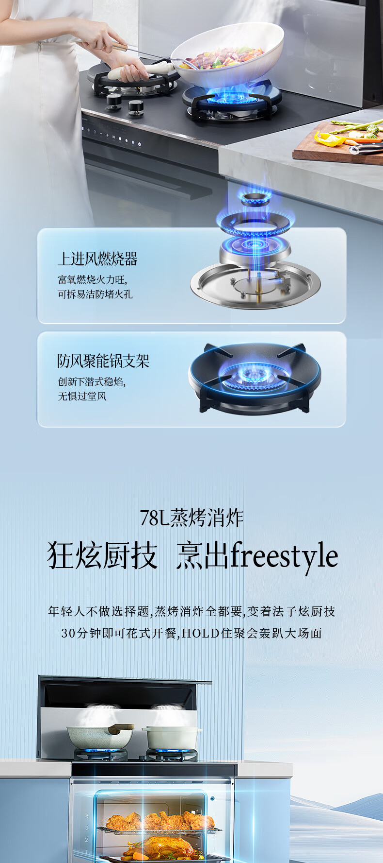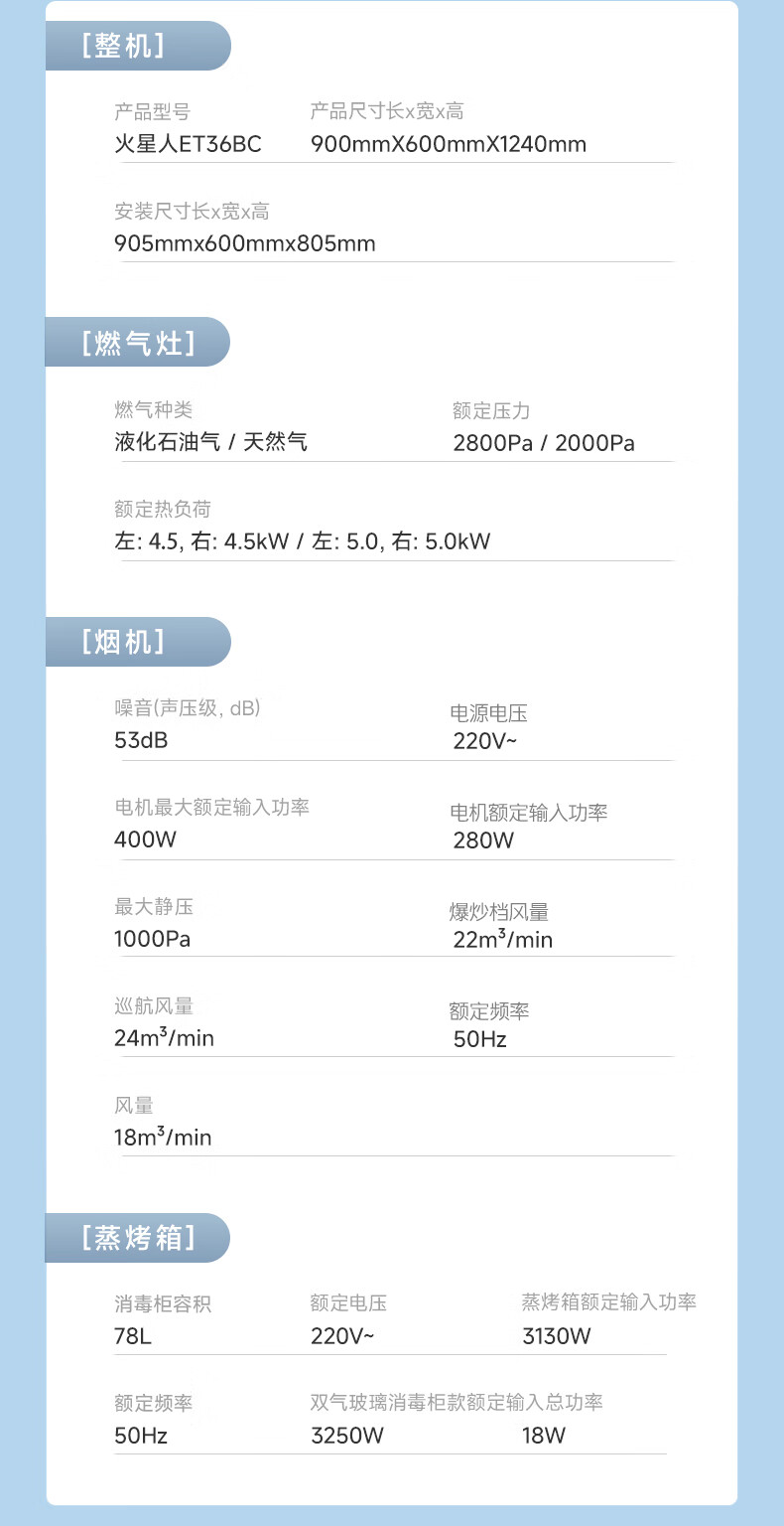 Martian integrated stove ET36BC integrated stove integrated steaming, grilling and frying steam oven integrated machine range hood gas stove natural gas right exhaust
