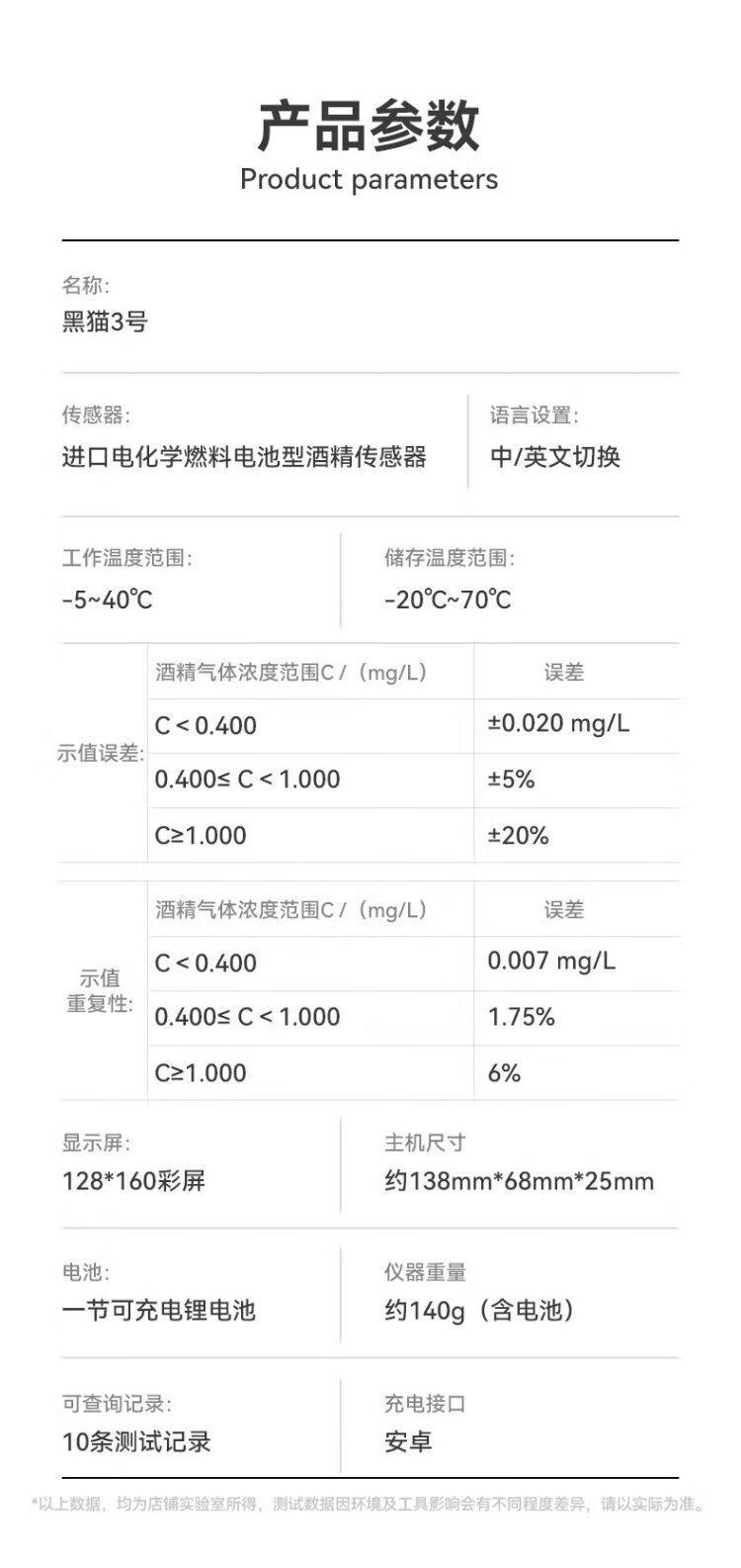 Car pick-up black cat No. 3 alcohol tester alcohol tester alcohol tester test drunk driving breather special high-precision