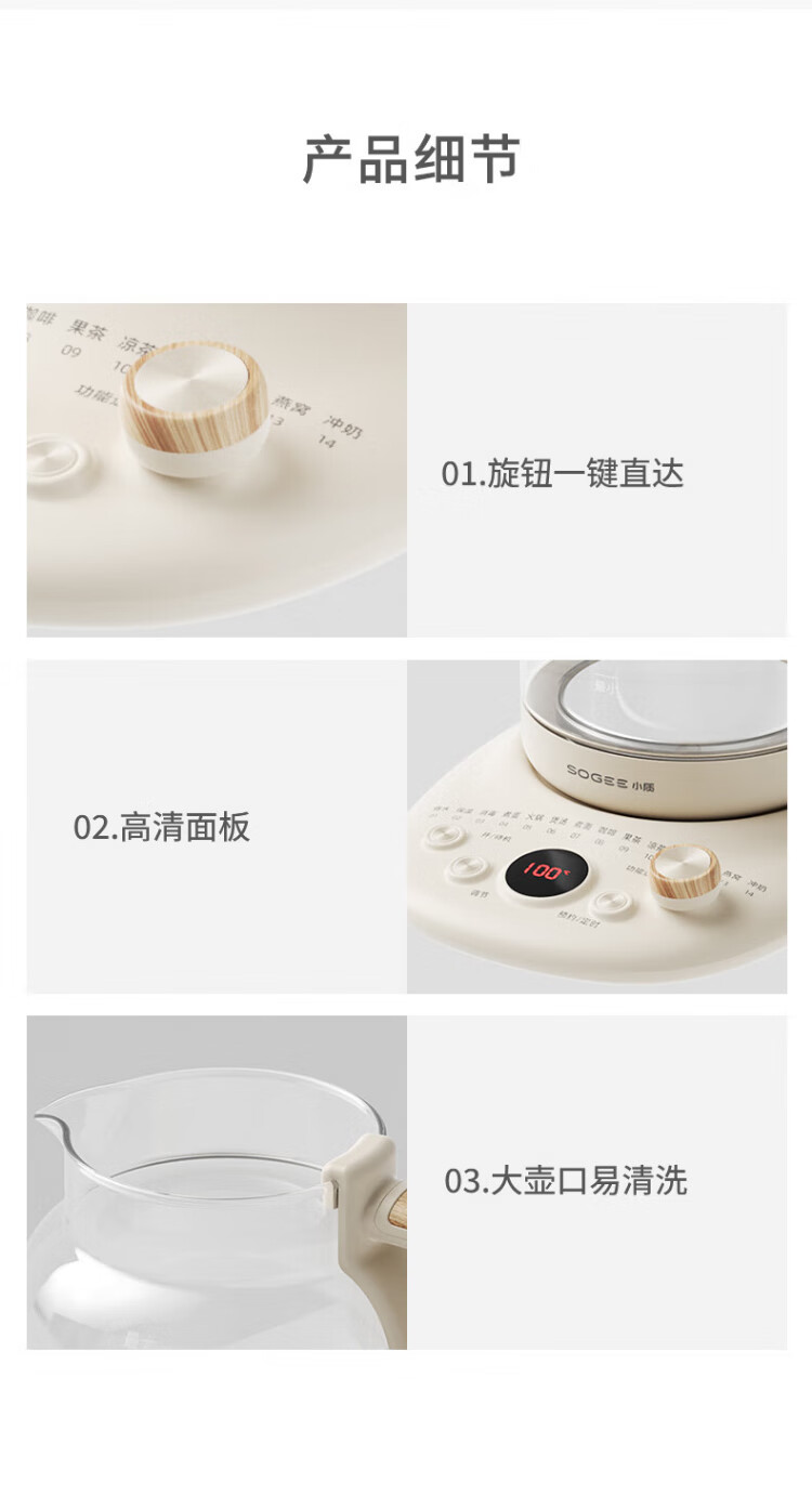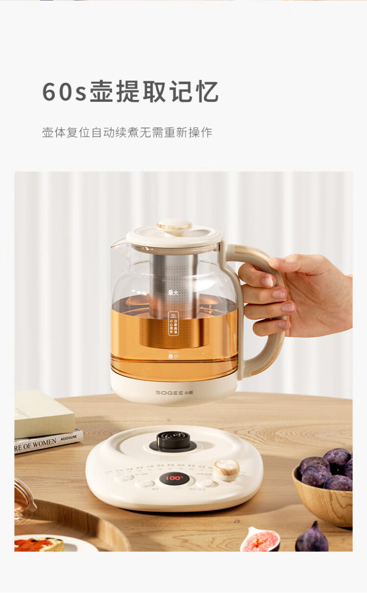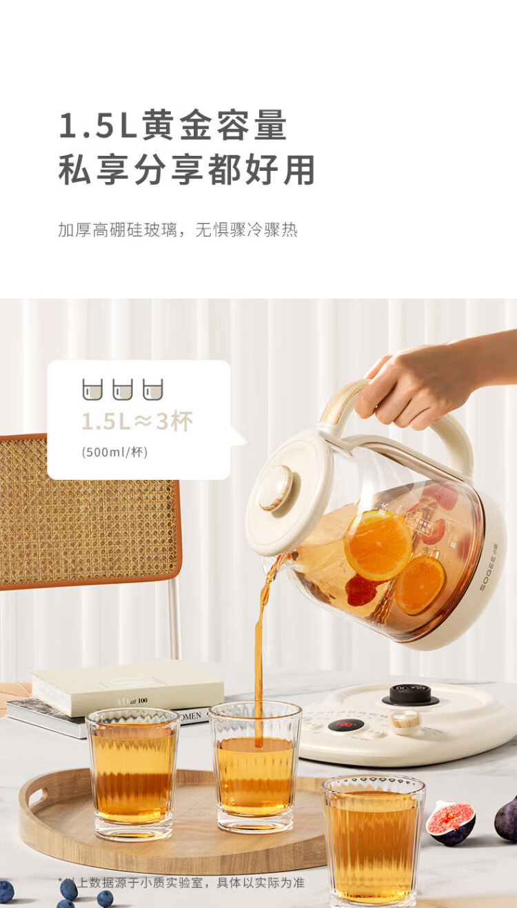 Small quality 0 glue health pot large capacity 1.5L office household tea kettle fully automatic kettle electric kettle thermostatic glass with tea leakage YSH06A