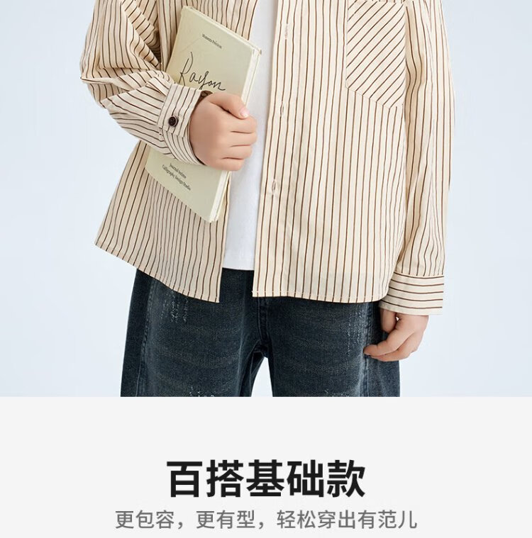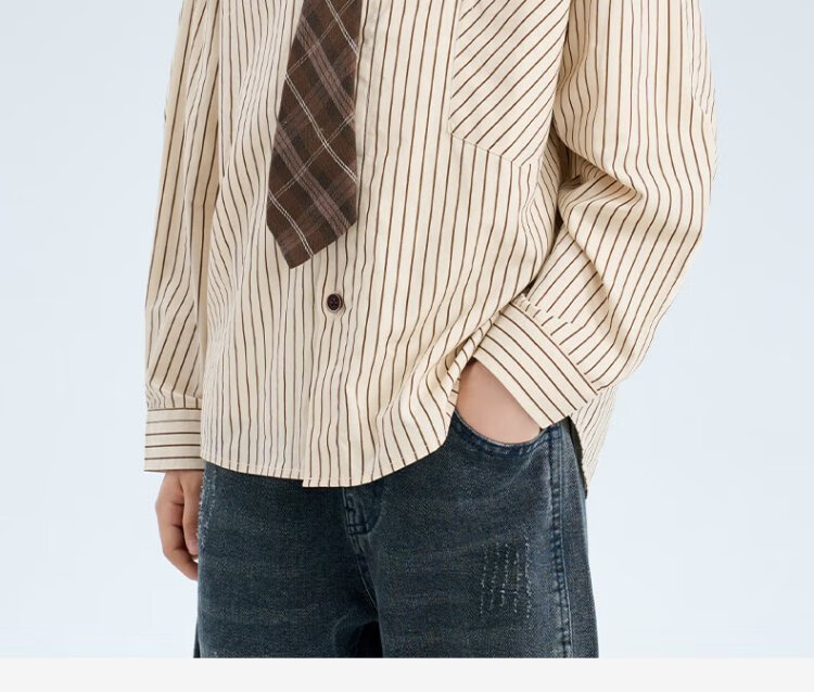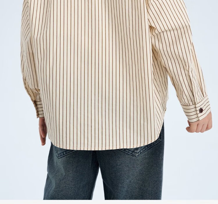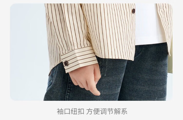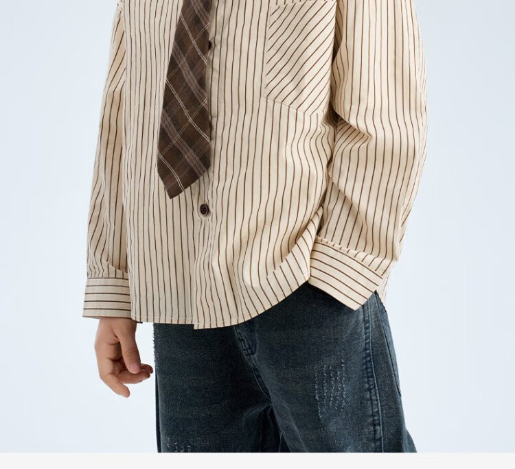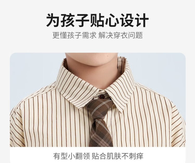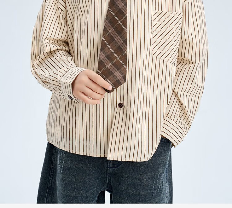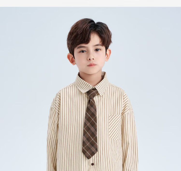 Luo Meng children's brown striped shirt handsome style boys versatile casual spring and autumn long-sleeved cotton shirt coffee color 150