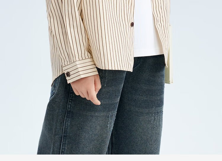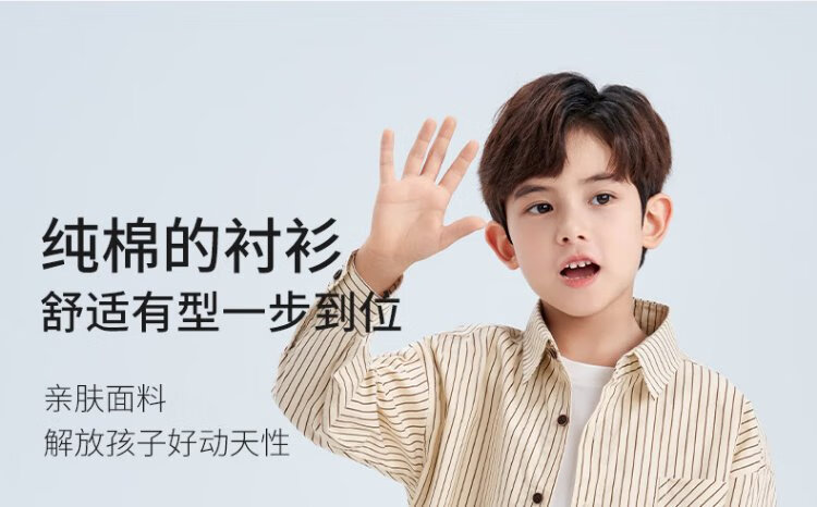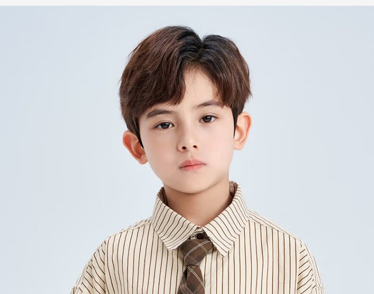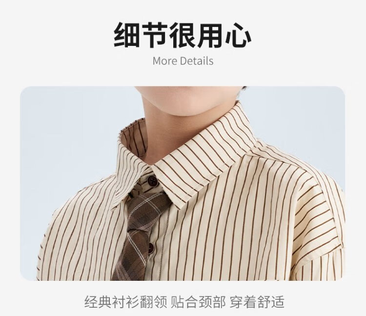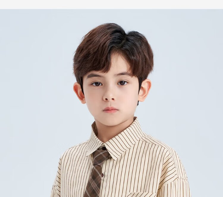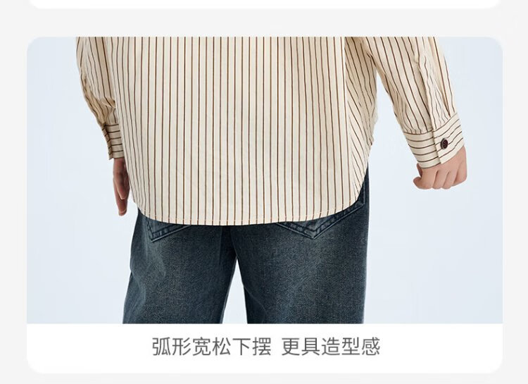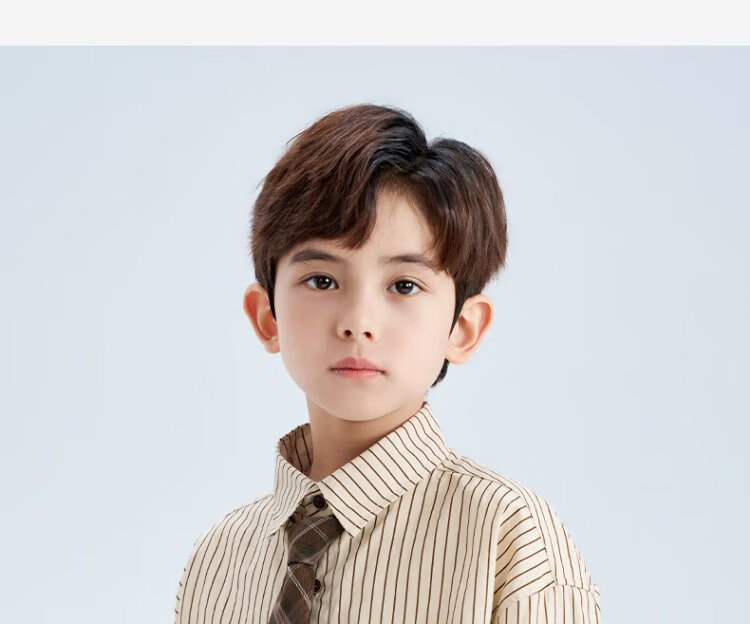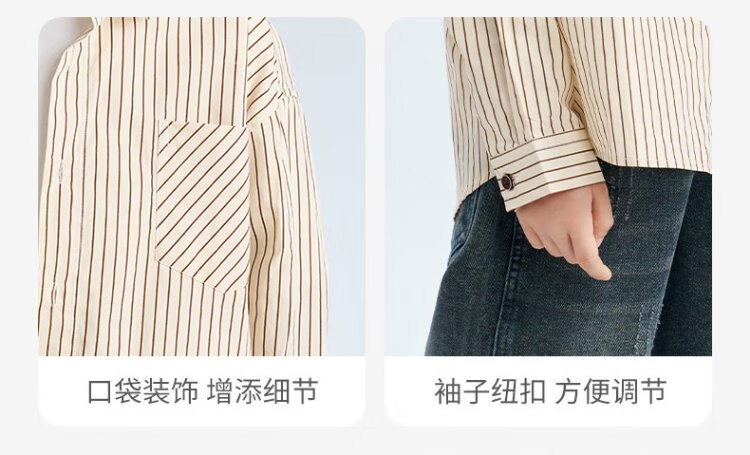 Luo Meng children's brown striped shirt handsome style boys versatile casual spring and autumn long-sleeved cotton shirt coffee color 150