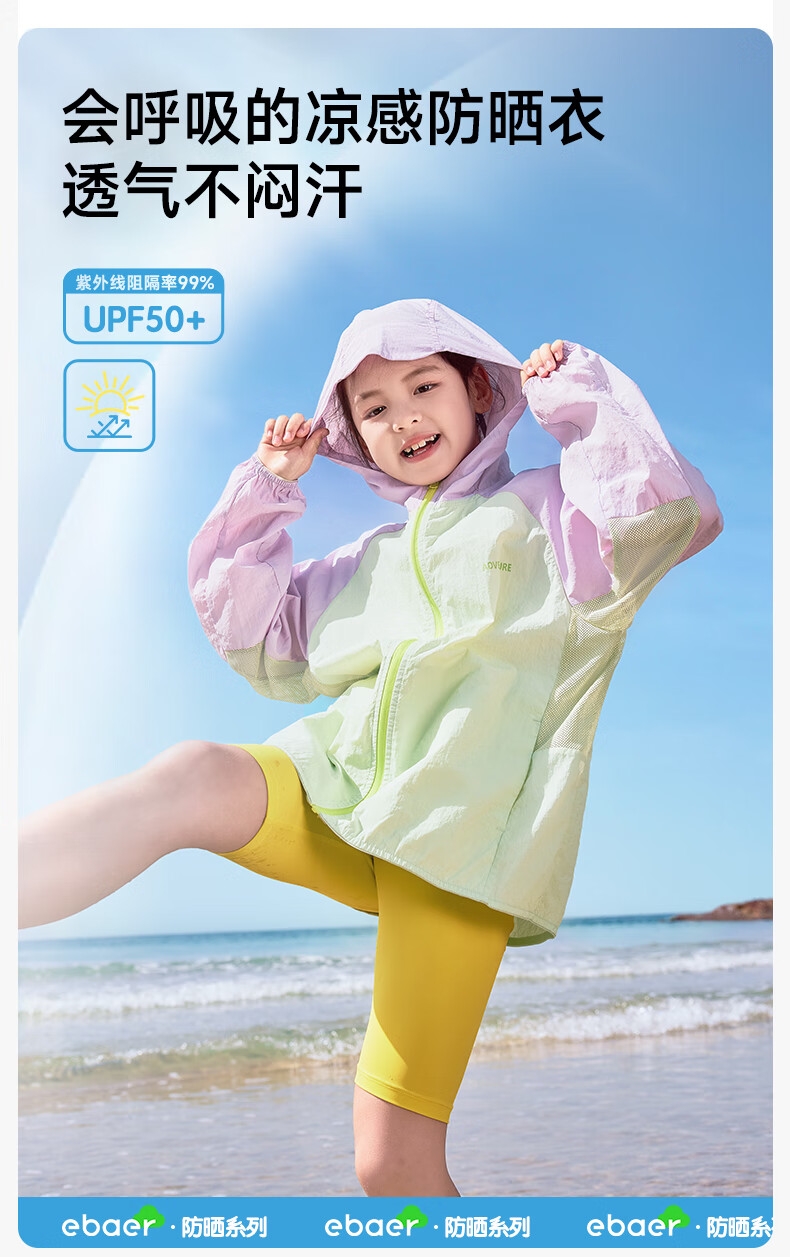 EBAER children's sun protection clothing for boys and girls 2025 summer new light casual jacket lilac 150