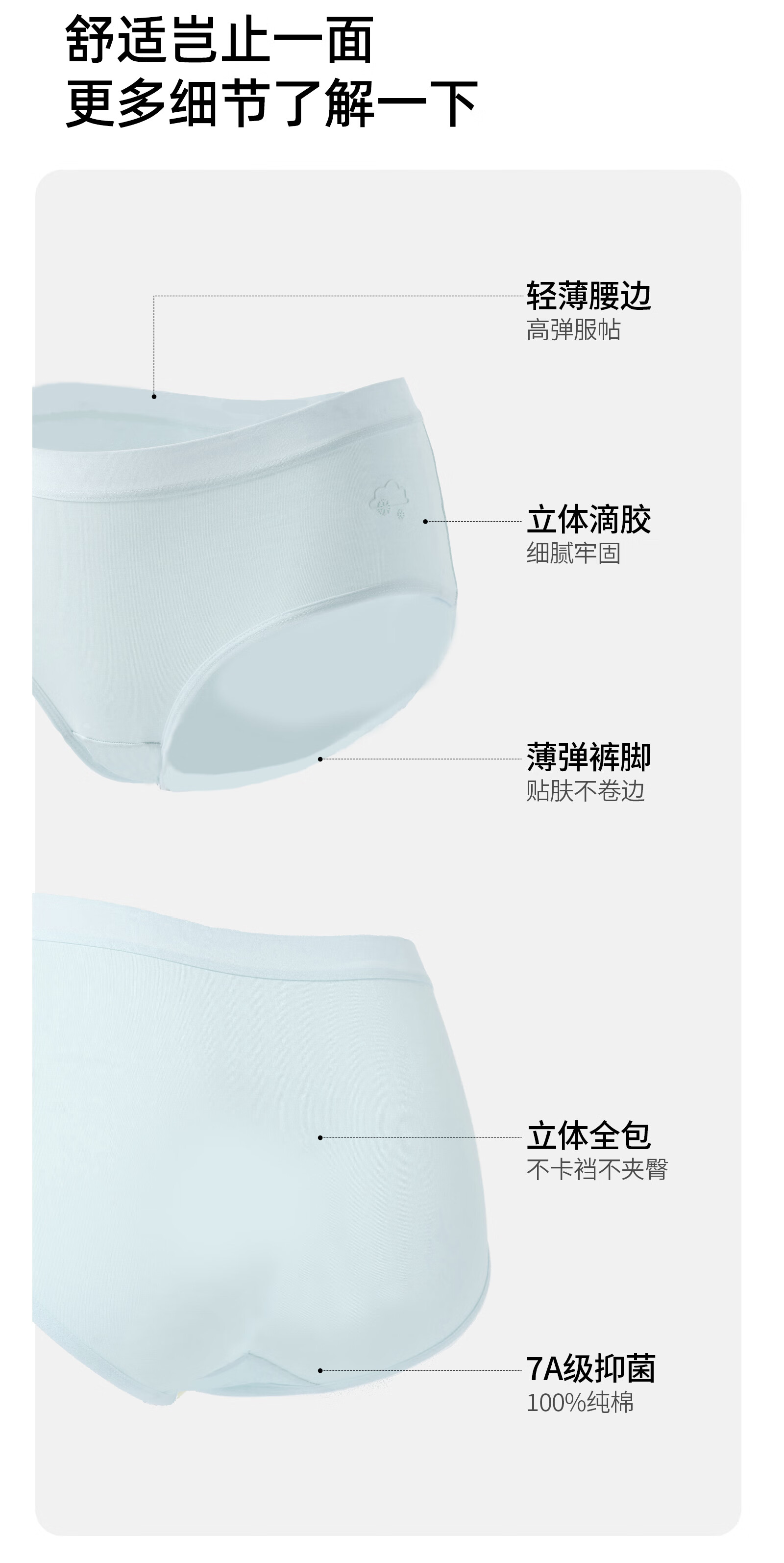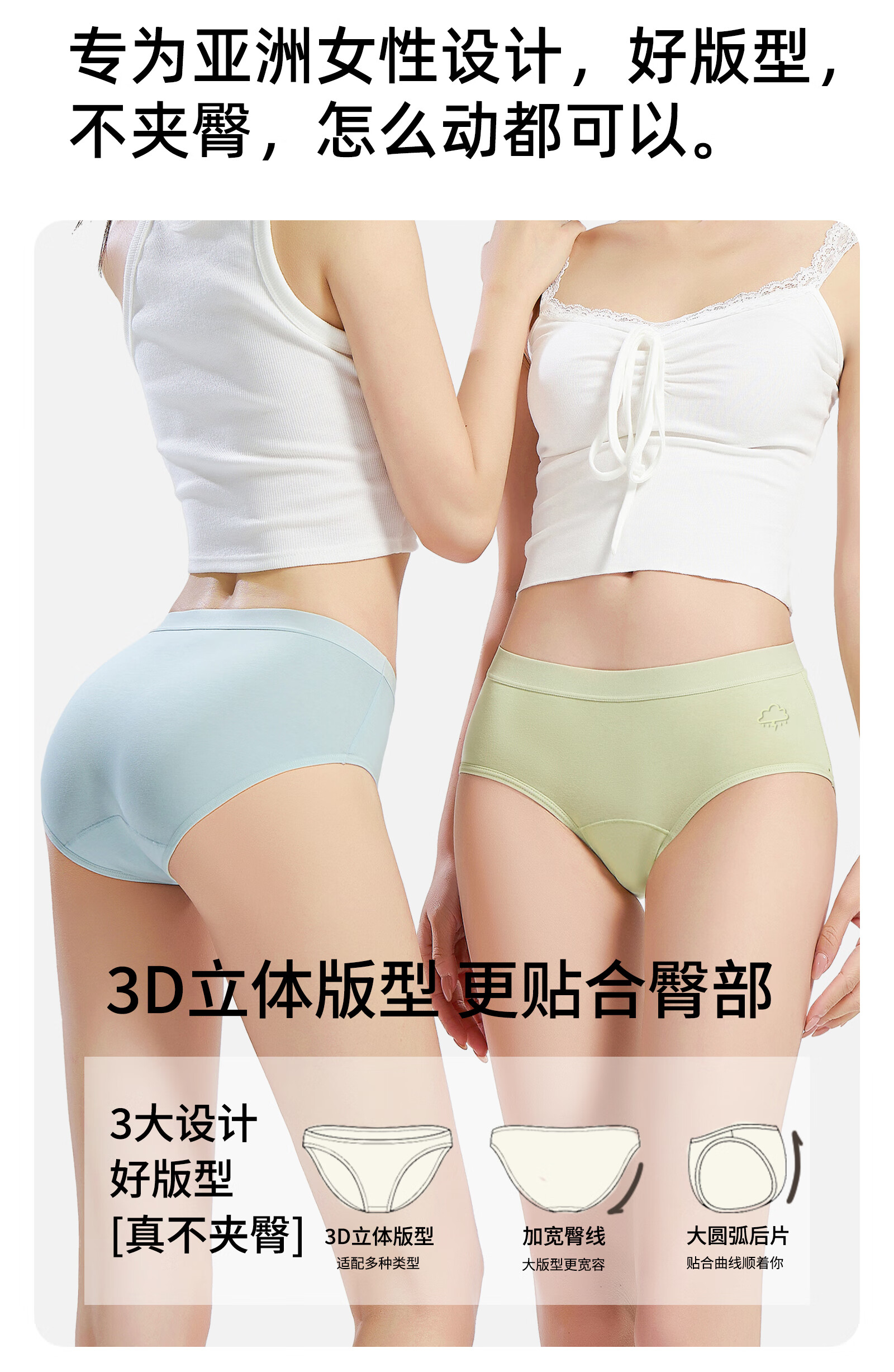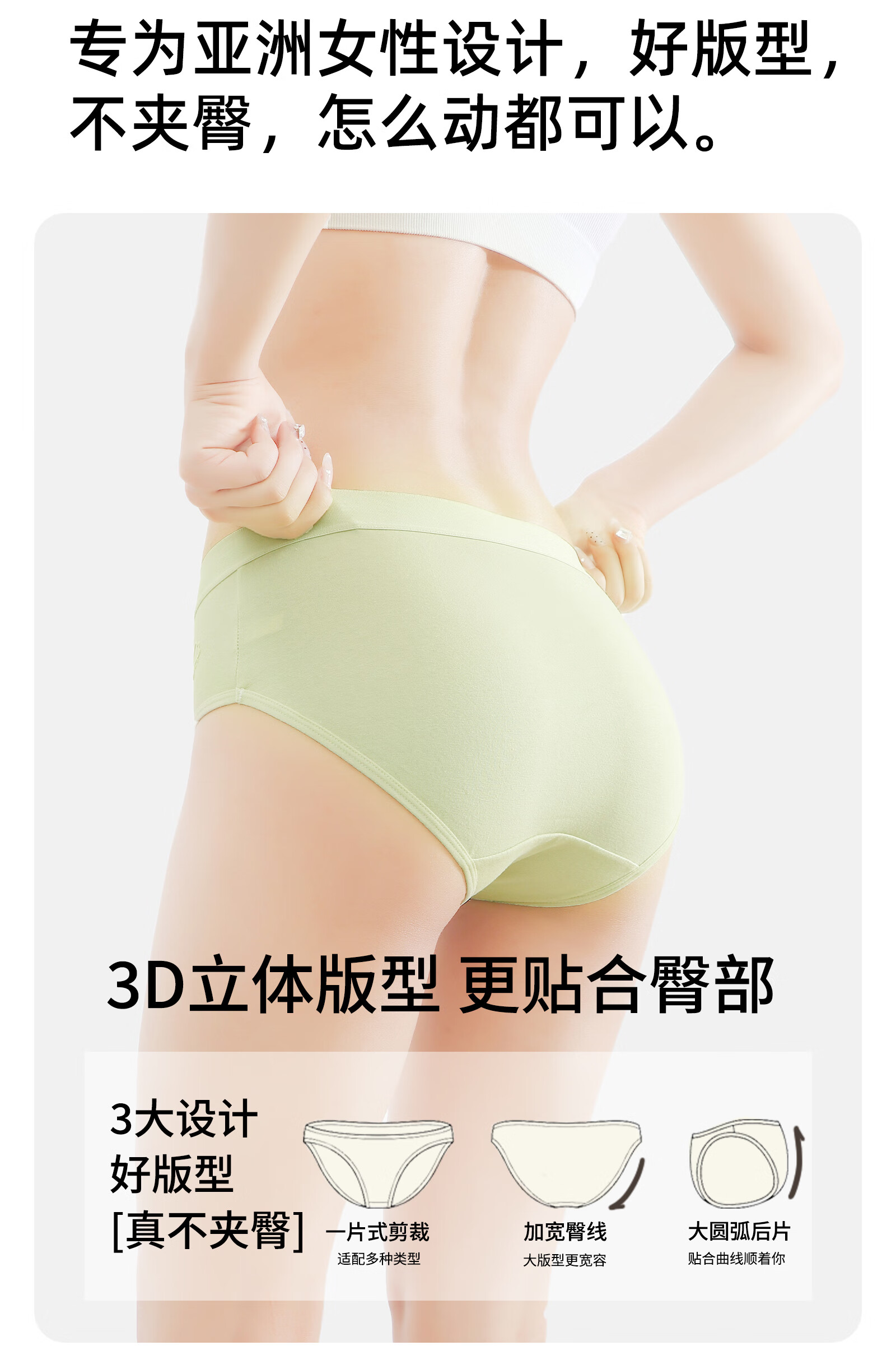 Deer Beauty's first no-wash women's underwear women's 10A pure cotton antibacterial cotton crotch mid-waist girl's soft briefs