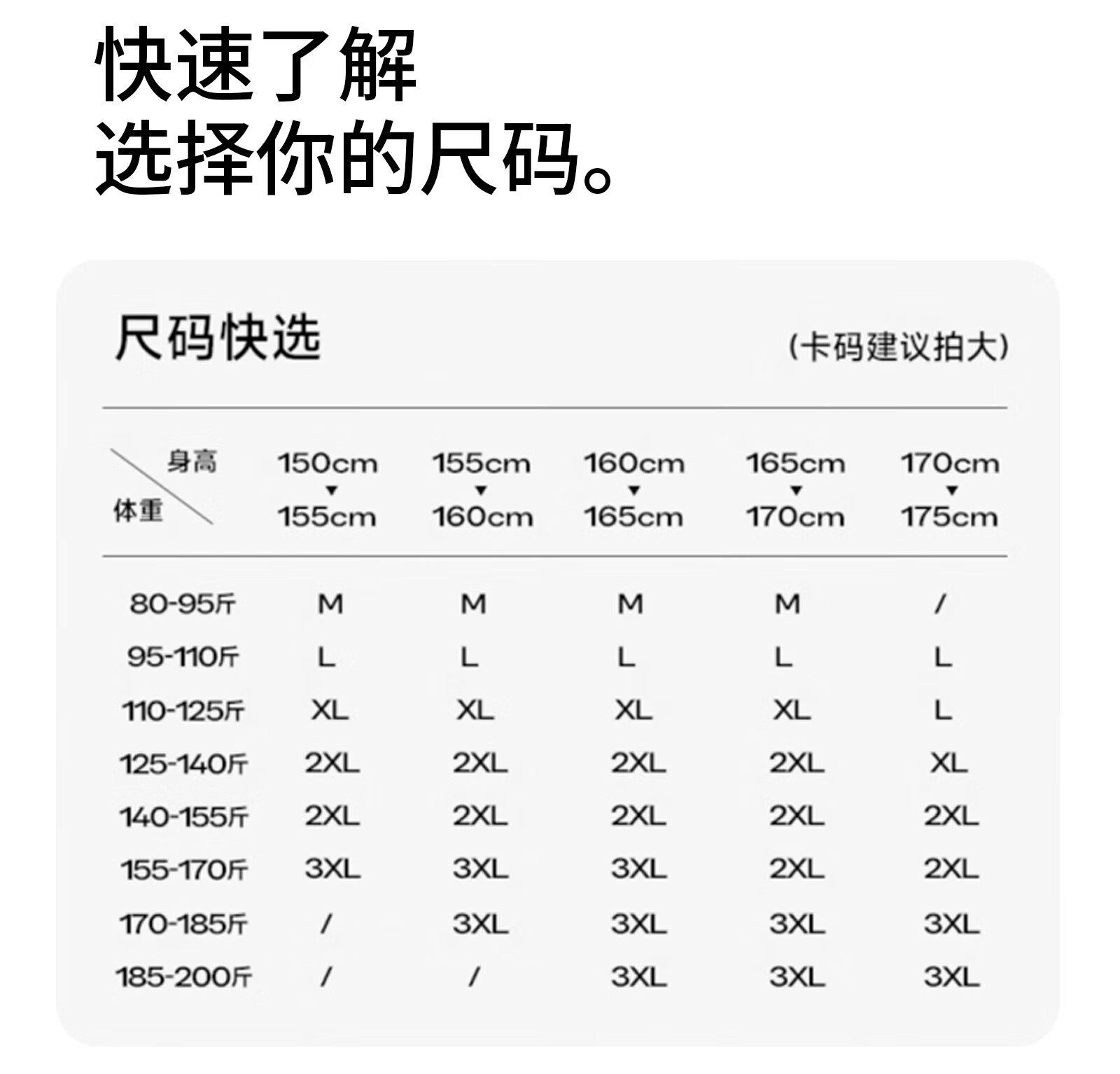 China (cm) 160-165/84-86 165-170 / 88-90 167-172 / 92-96 168-173 / 98-102 170-176 / 106-110