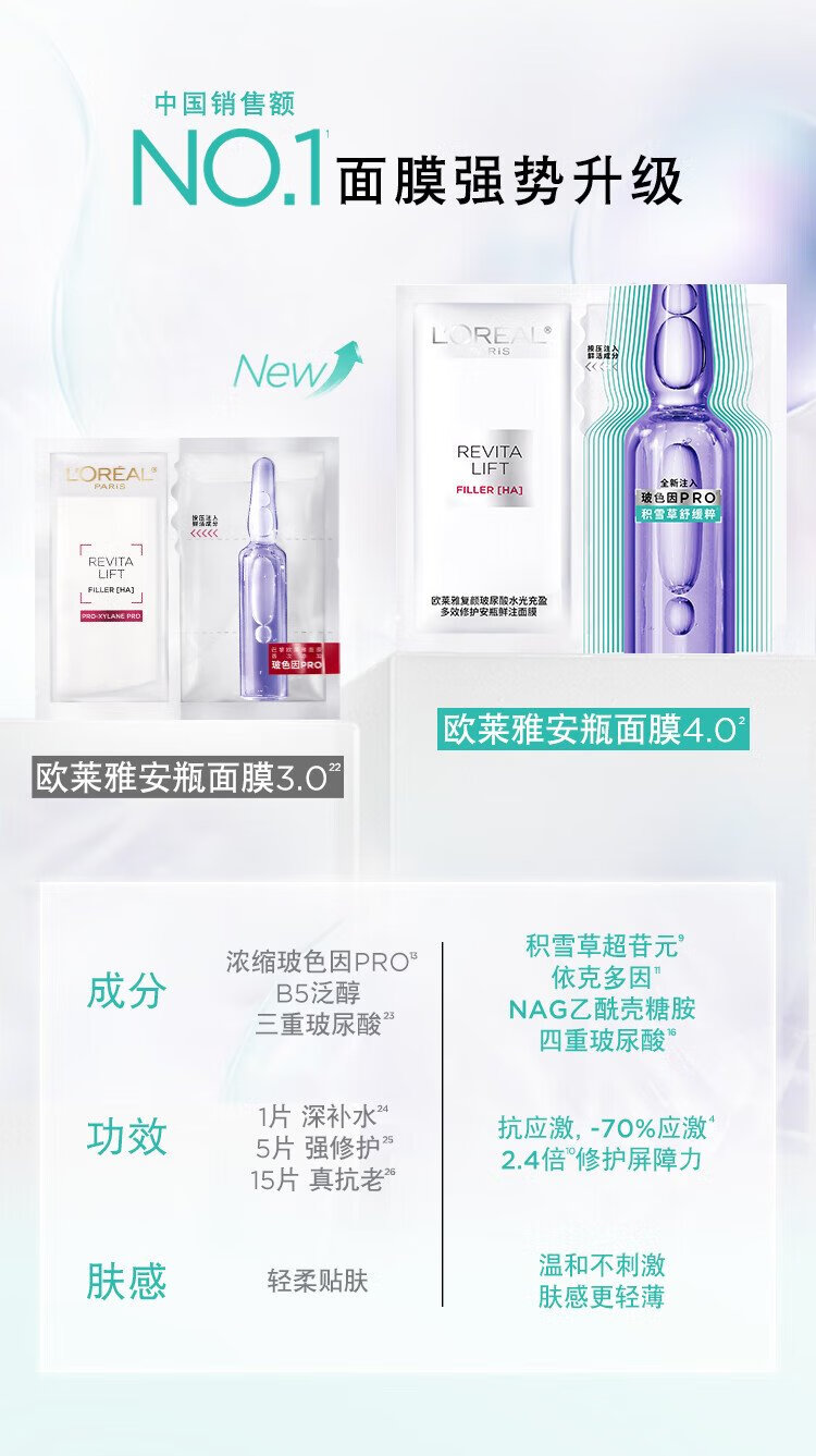 L'Oreal Ampoule Mask 4.0 20 pieces hydrating, moisturizing, repairing and soothing skin care products birthday gift