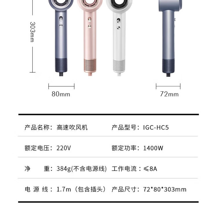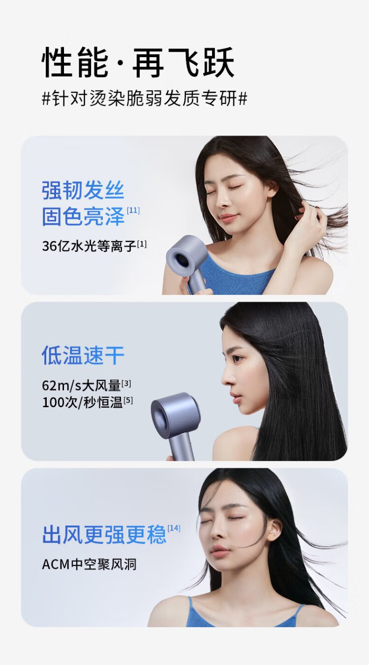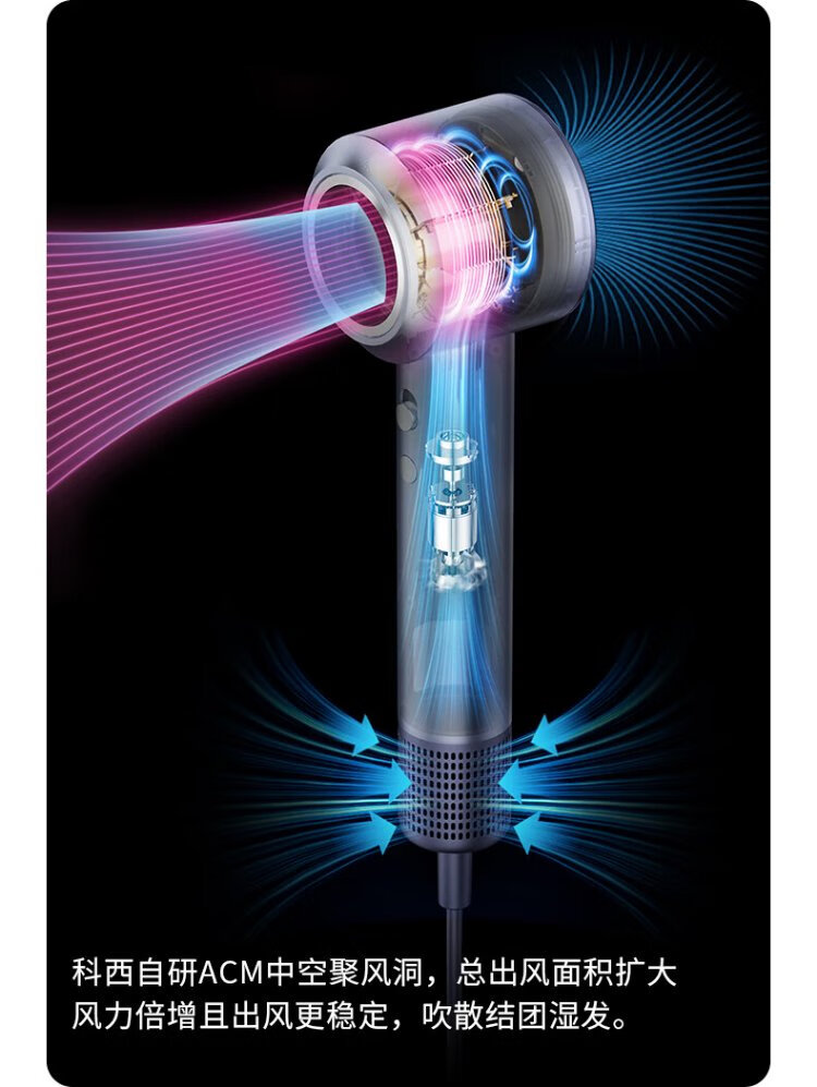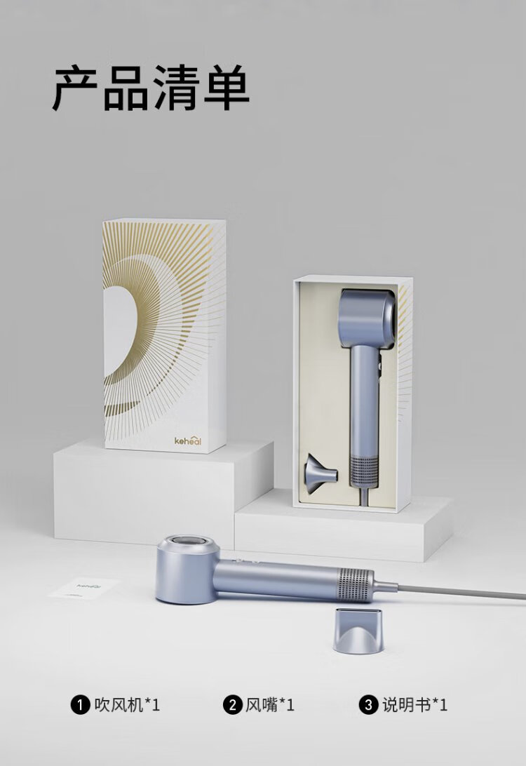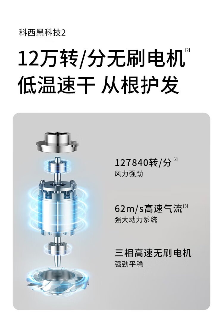 KEHEAL national subsidy Kesi high-speed hair dryer 3.6 billion plasma hair care power generation hair dryer household negative ion hair care quick-drying hair dryer recommended gift HC5 Silver Moon White