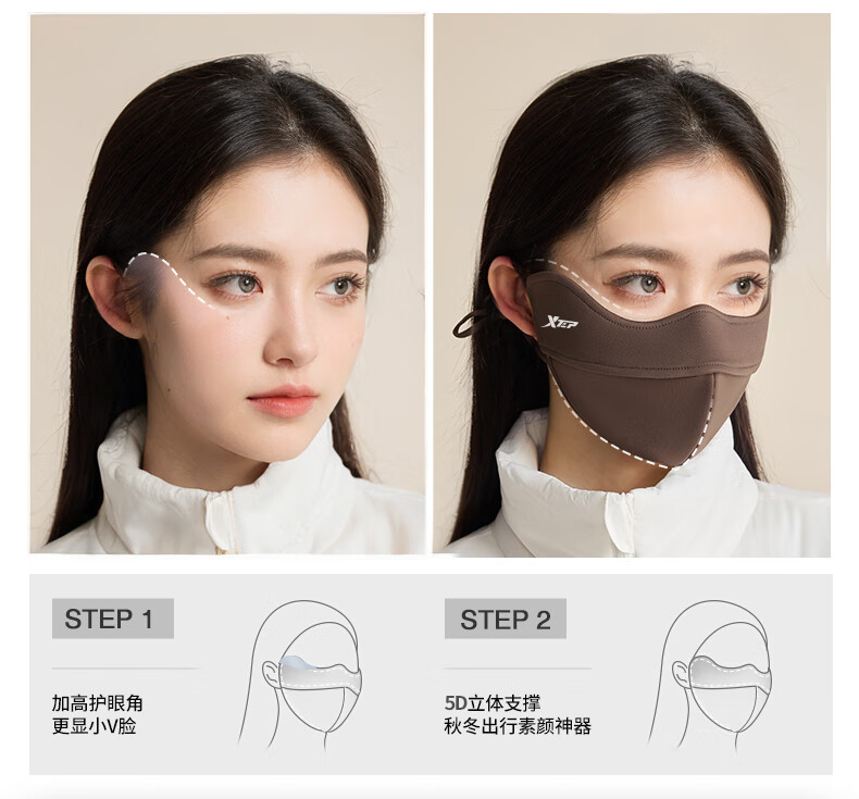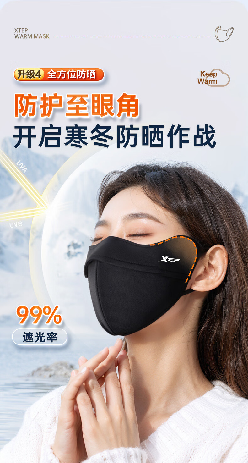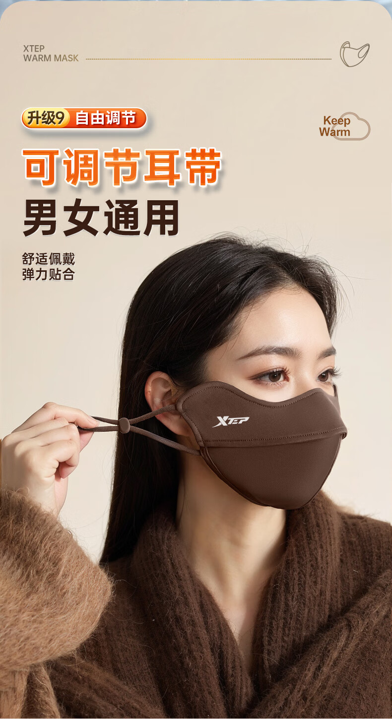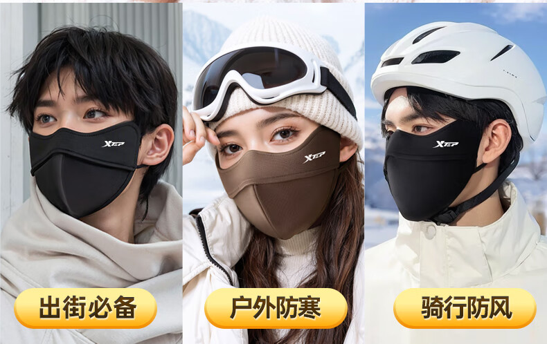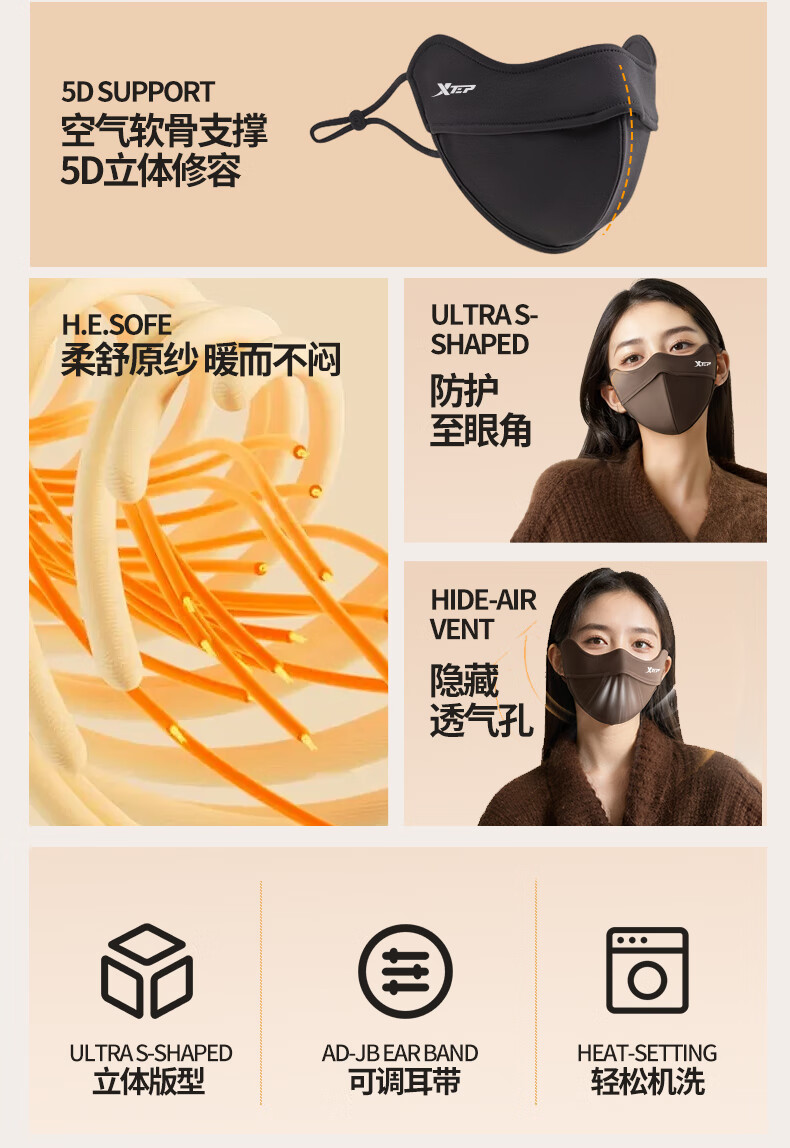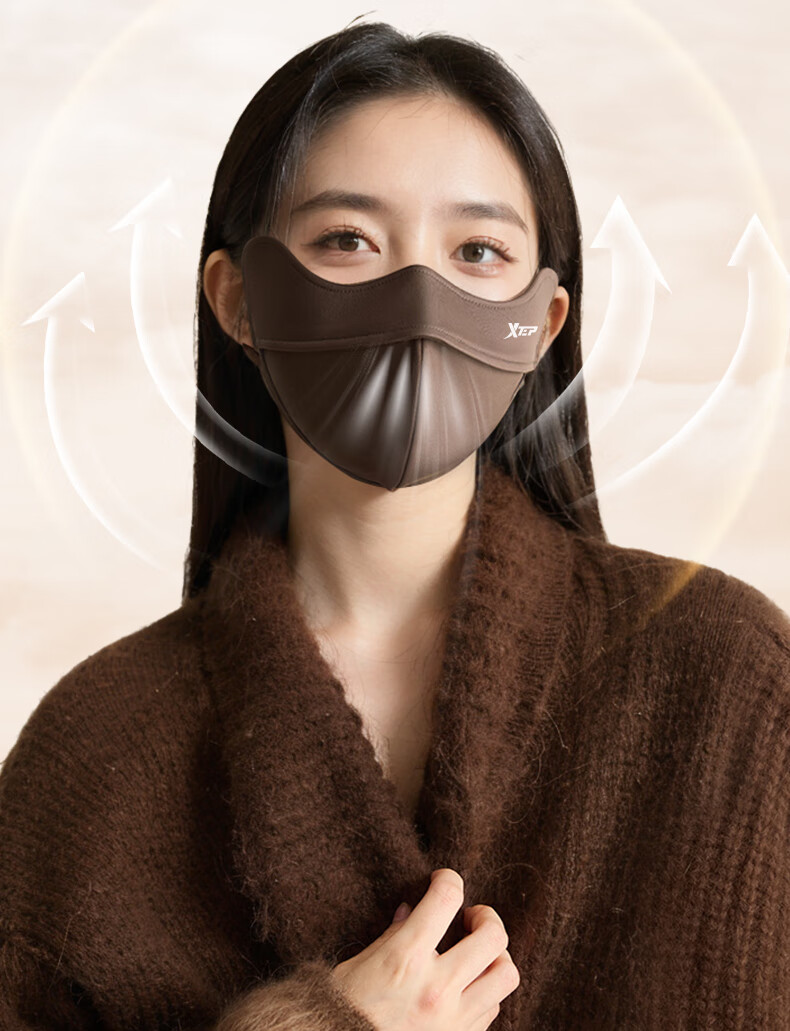 XTEP warm mask, winter riding mask, thickened, cold and windproof, men and women, outdoor skiing and motorcycle, washed black brown