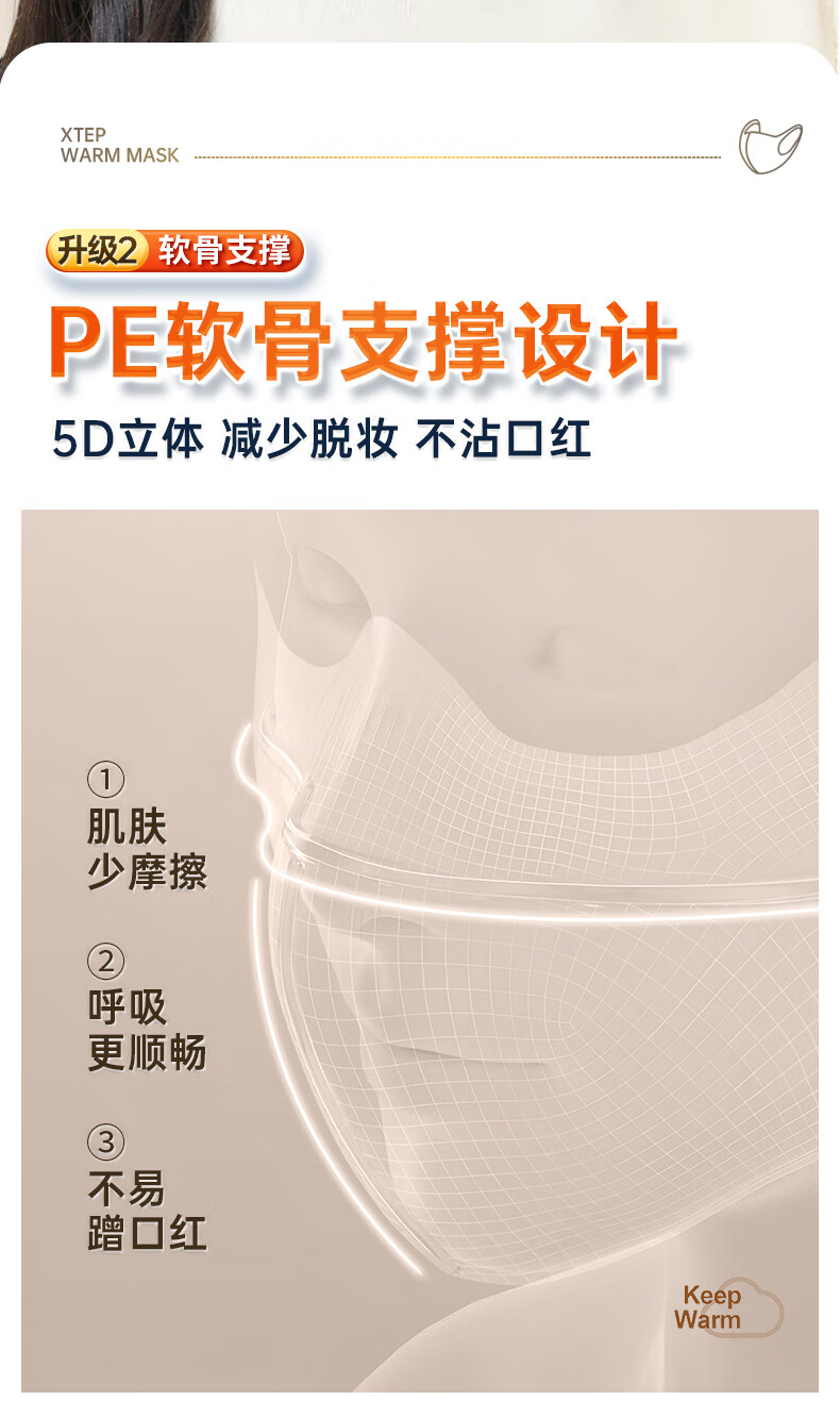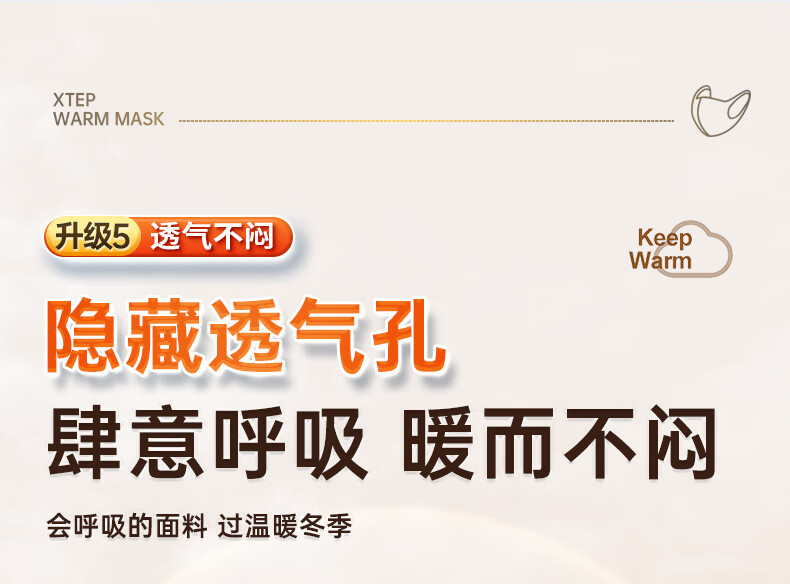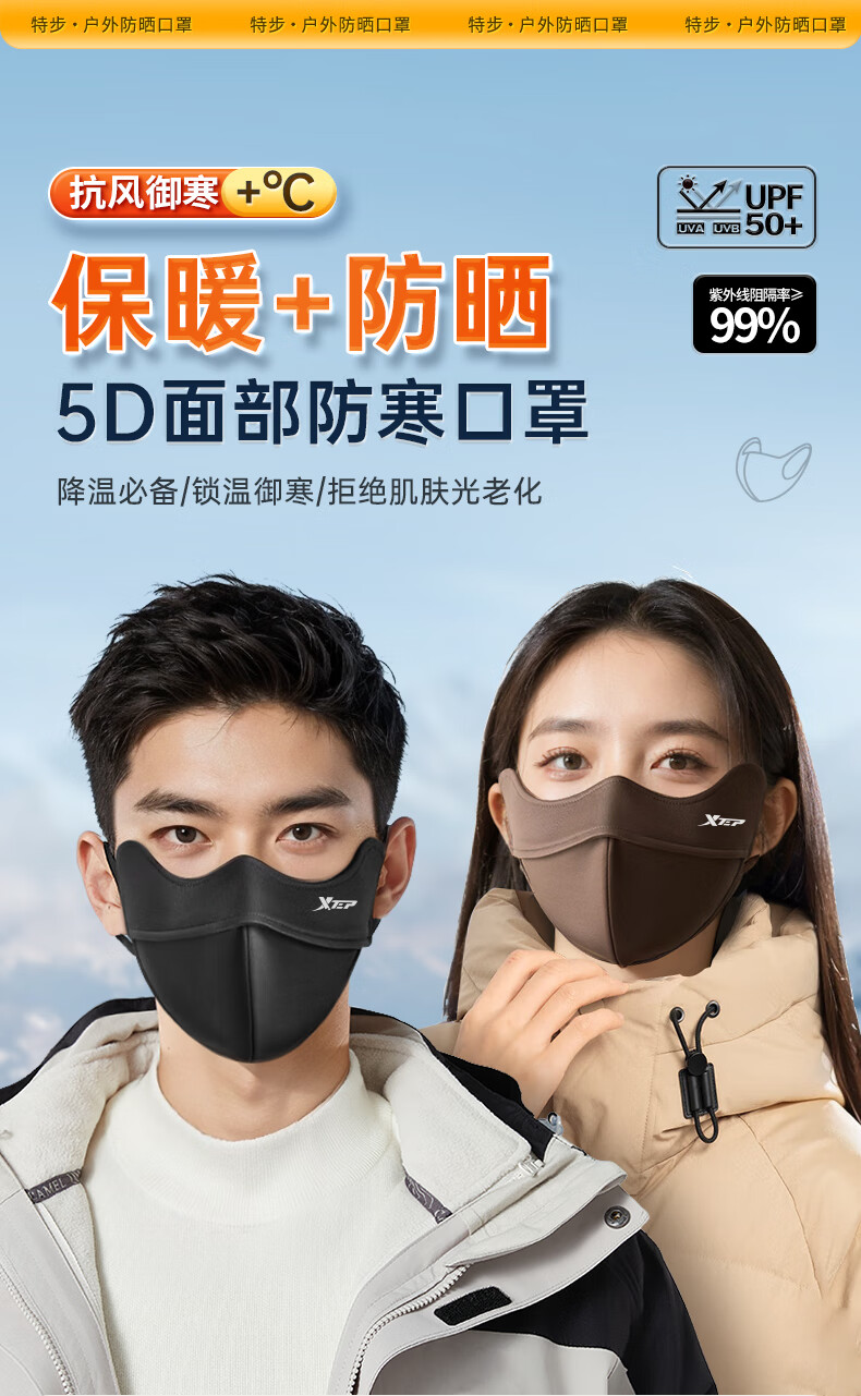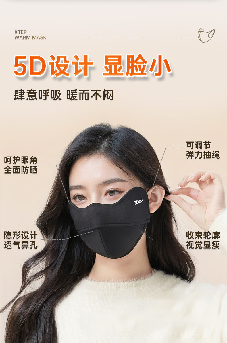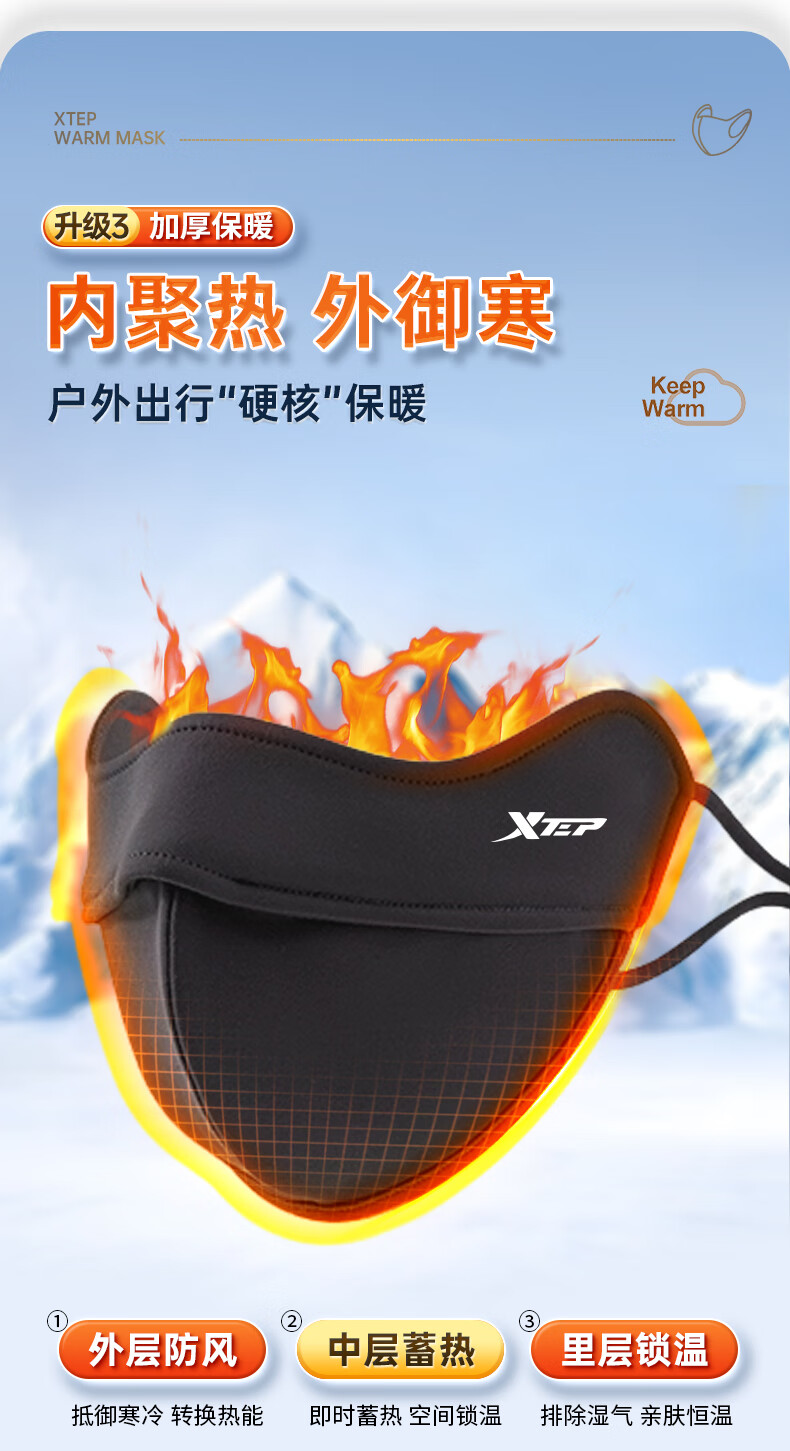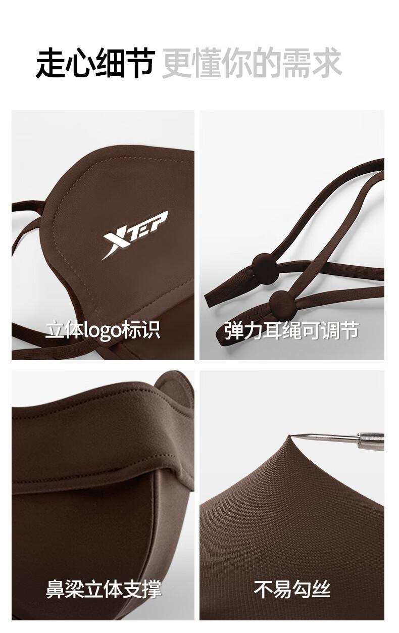 XTEP warm mask, winter riding mask, thickened, cold and windproof, men and women, outdoor skiing and motorcycle, washed black brown