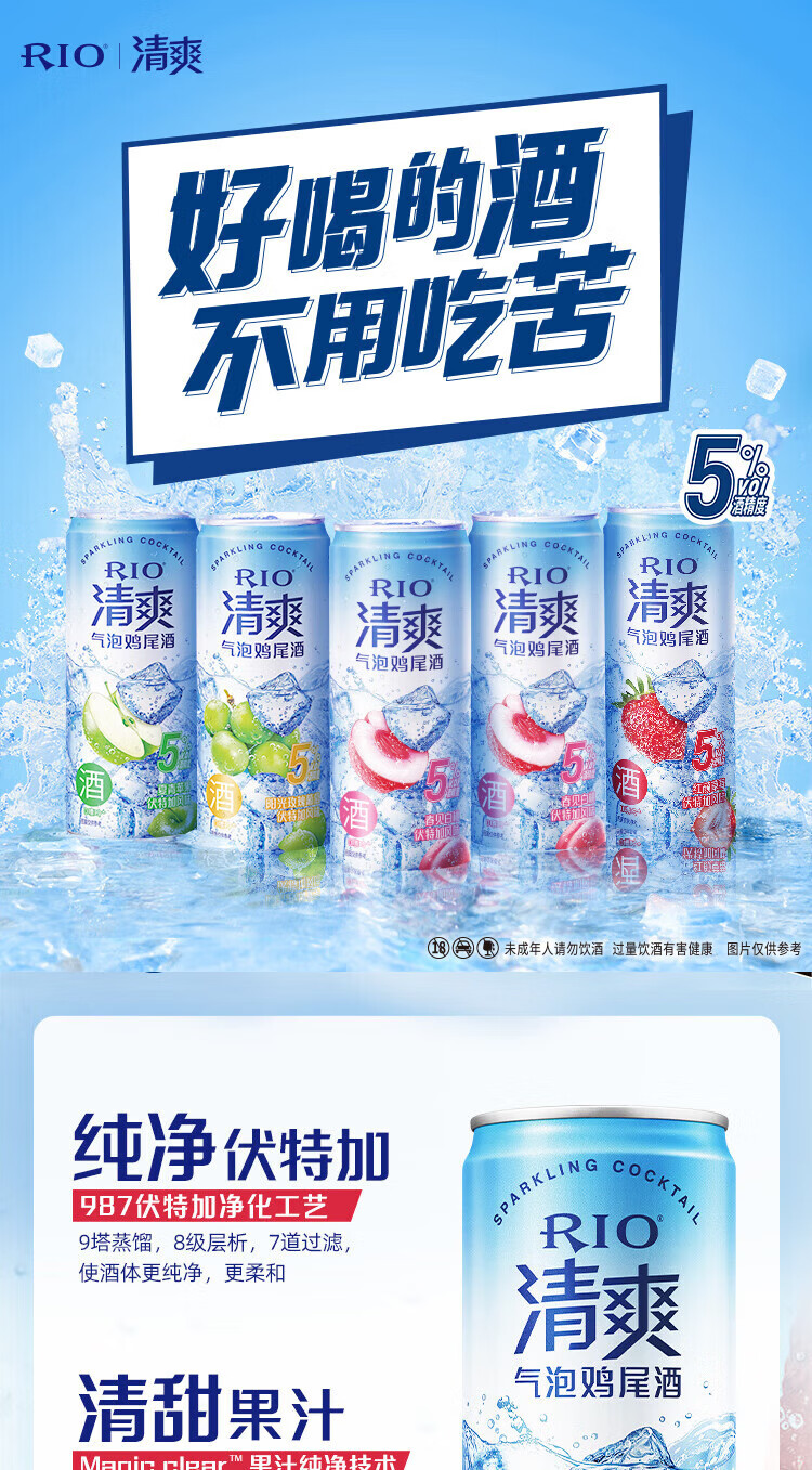 RIO cocktail, foreign wine, fruit wine, liqueur, pre-mixed wine, refreshing and strong multi-flavor combination 330ml*6 cans