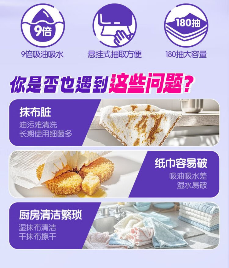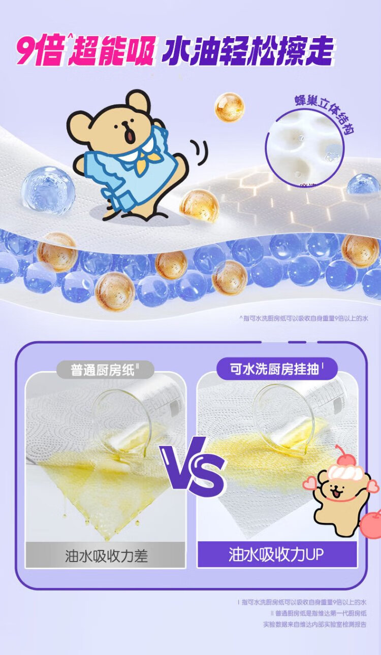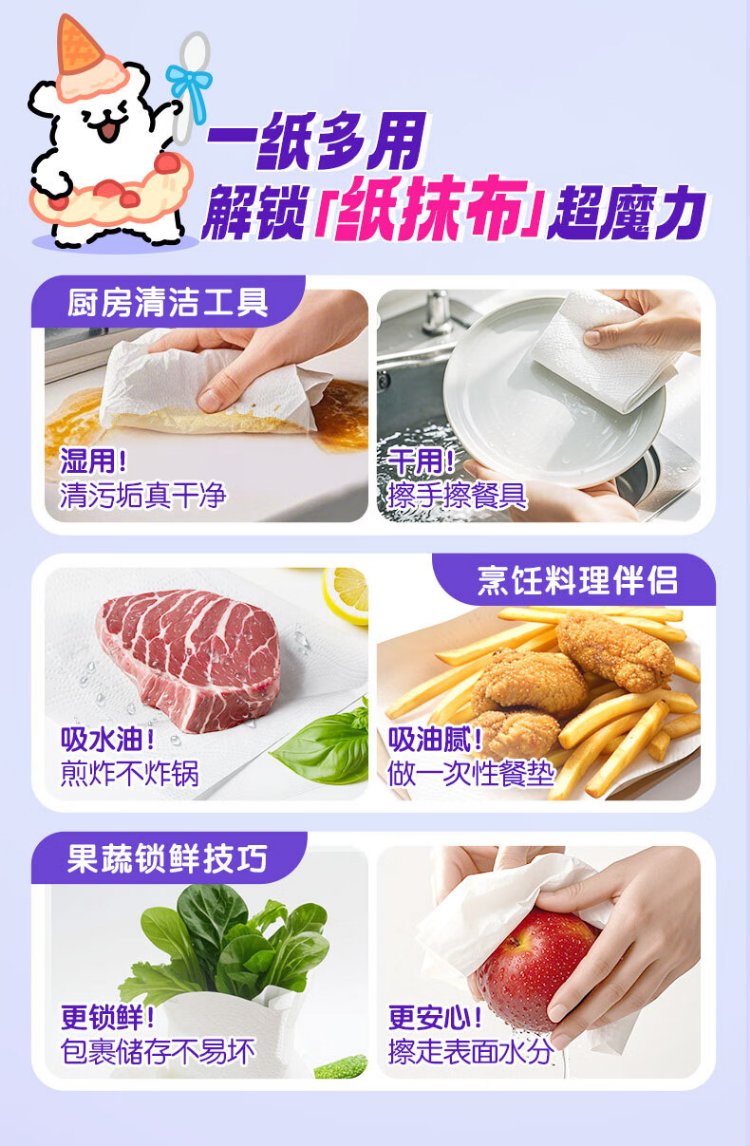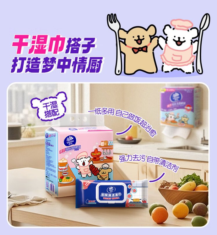Vinda kitchen paper, food-contact grade, hanging tissue paper 180 sheets*6 packs, line puppy joint model