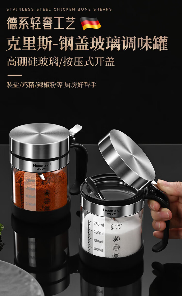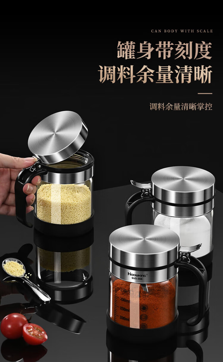 Heqing high borosilicate glass seasoning box kitchen household MSG salt jar seasoning bottle seasoning bottle storage box seasoning jar