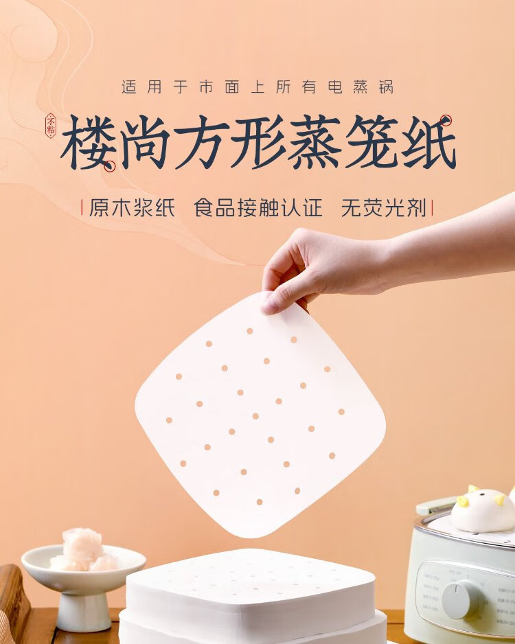 Loushang steamer paper bun pad paper square steamer pad food household steamed bun oil paper disposable 20*20cm 110 sheets