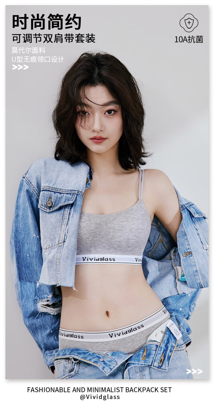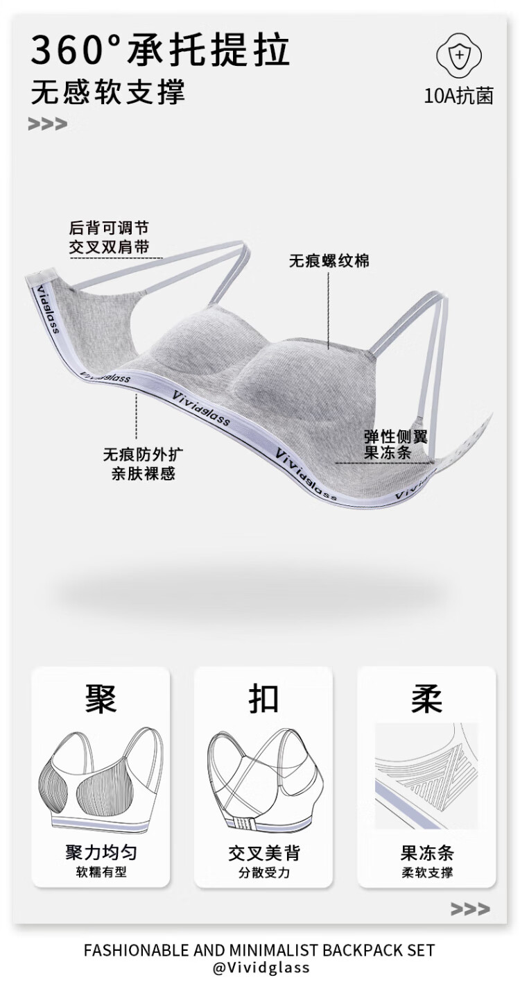 Urban Beauty Modal Seamless Cross Back Sports Bra Women's Small Breast Gather Thin Vest Anti-Sagging Bra Set