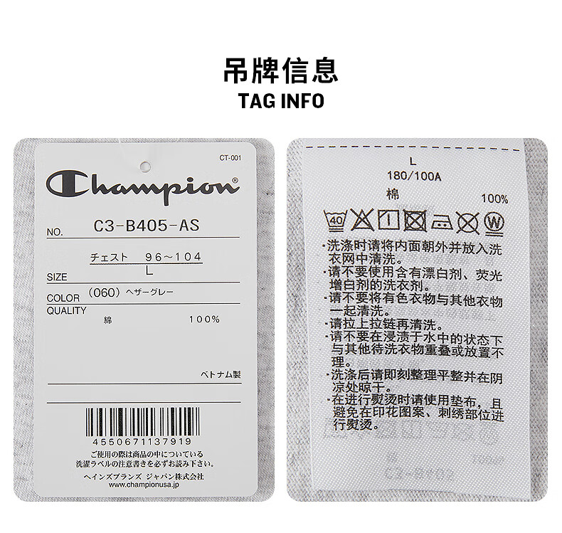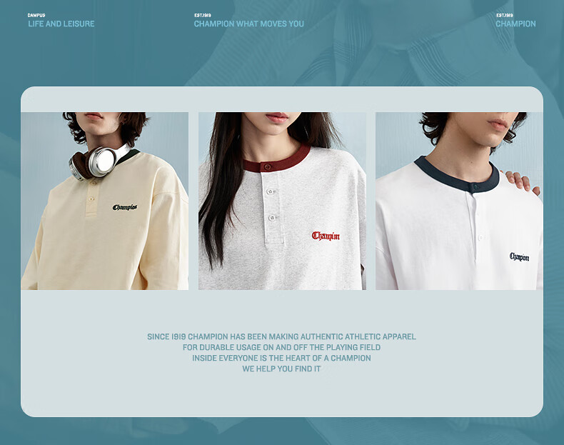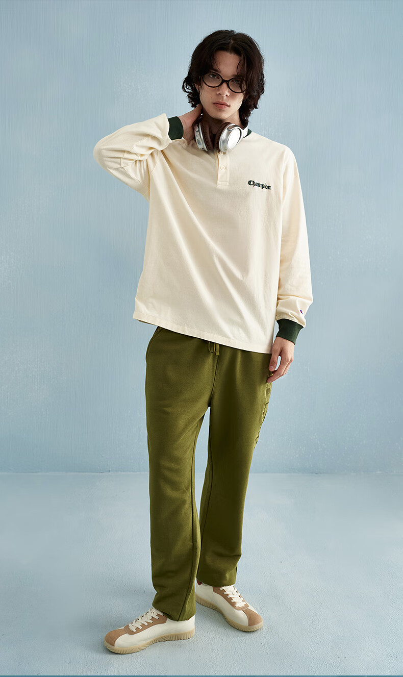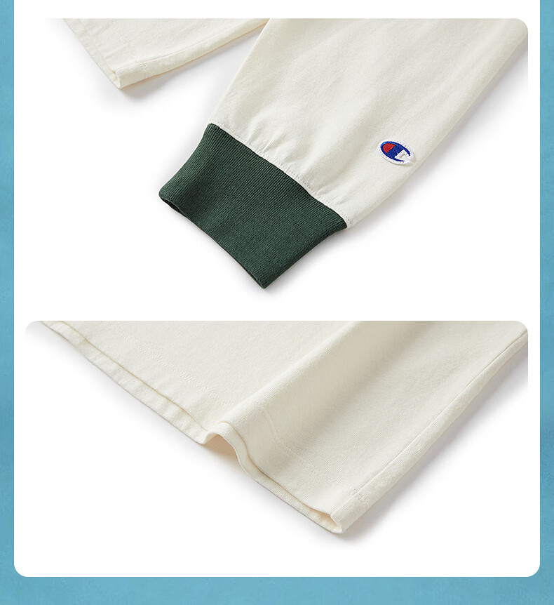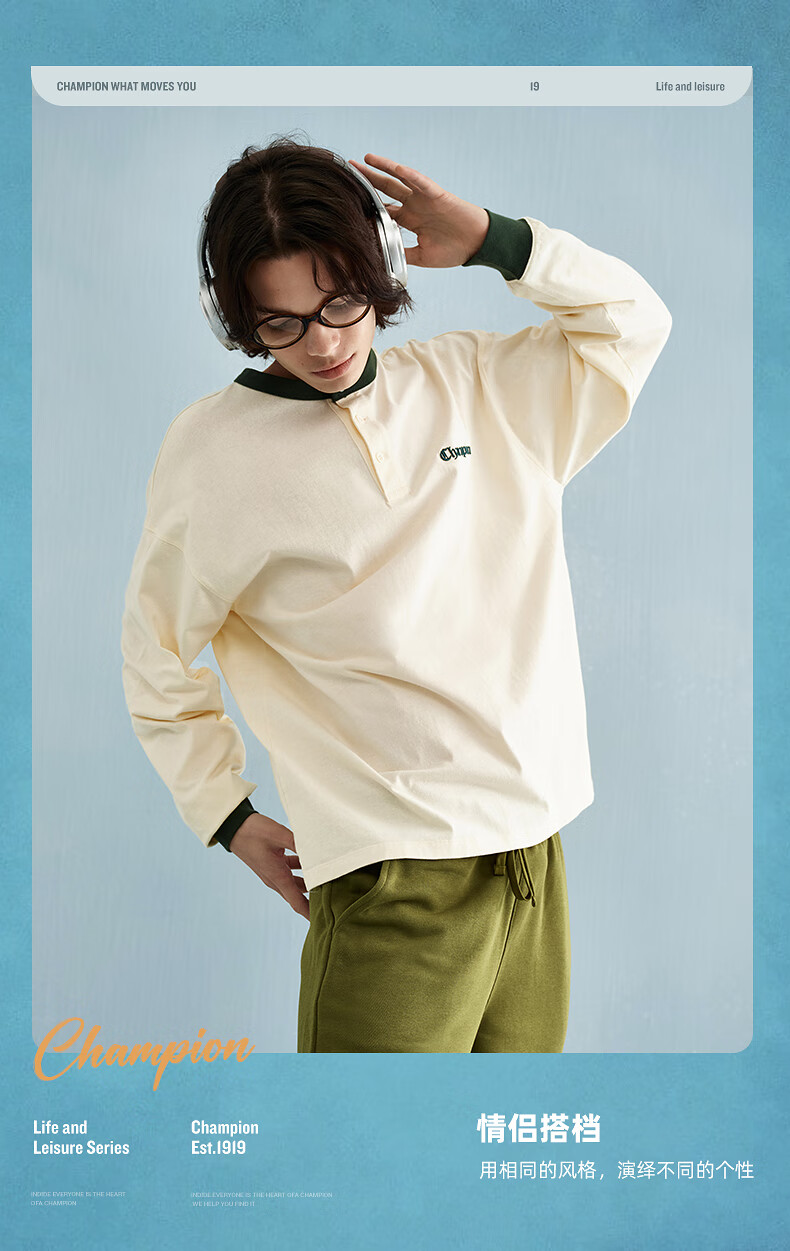 Champion long-sleeved T-shirt men's color-blocked Henry collar bottoming shirt pure cotton top women's twist gray L
