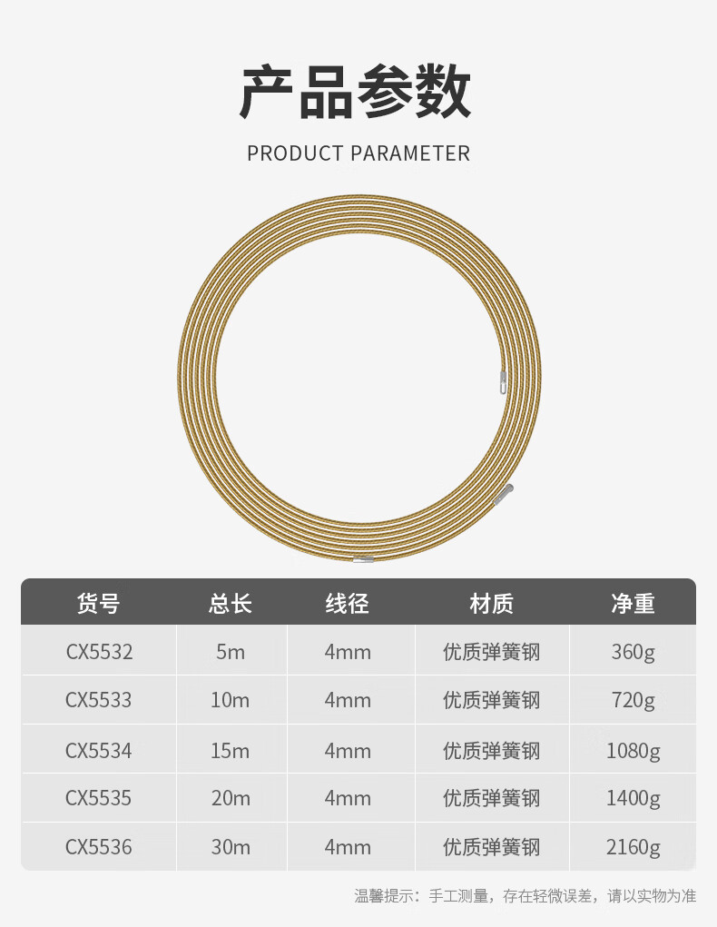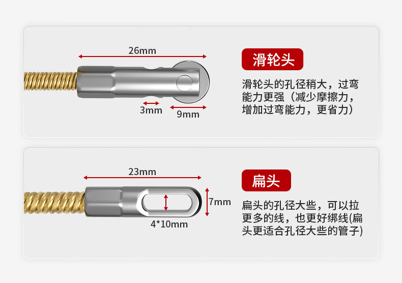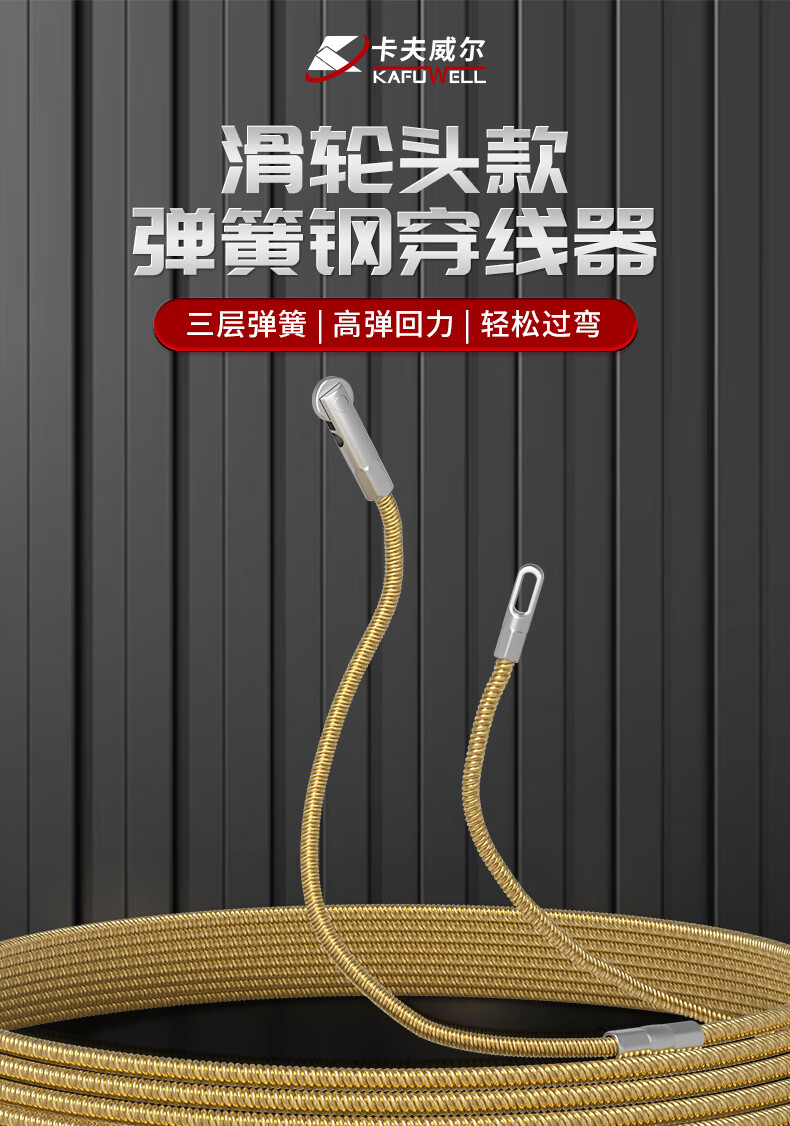 Kraftwell Electrician Spring Steel Threader Pulley Head Power Channel Lead Wire Releaser 4mm*10M CX5533