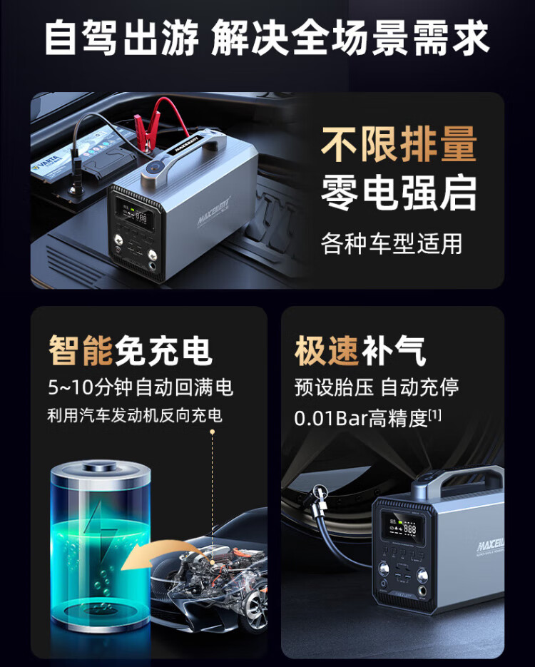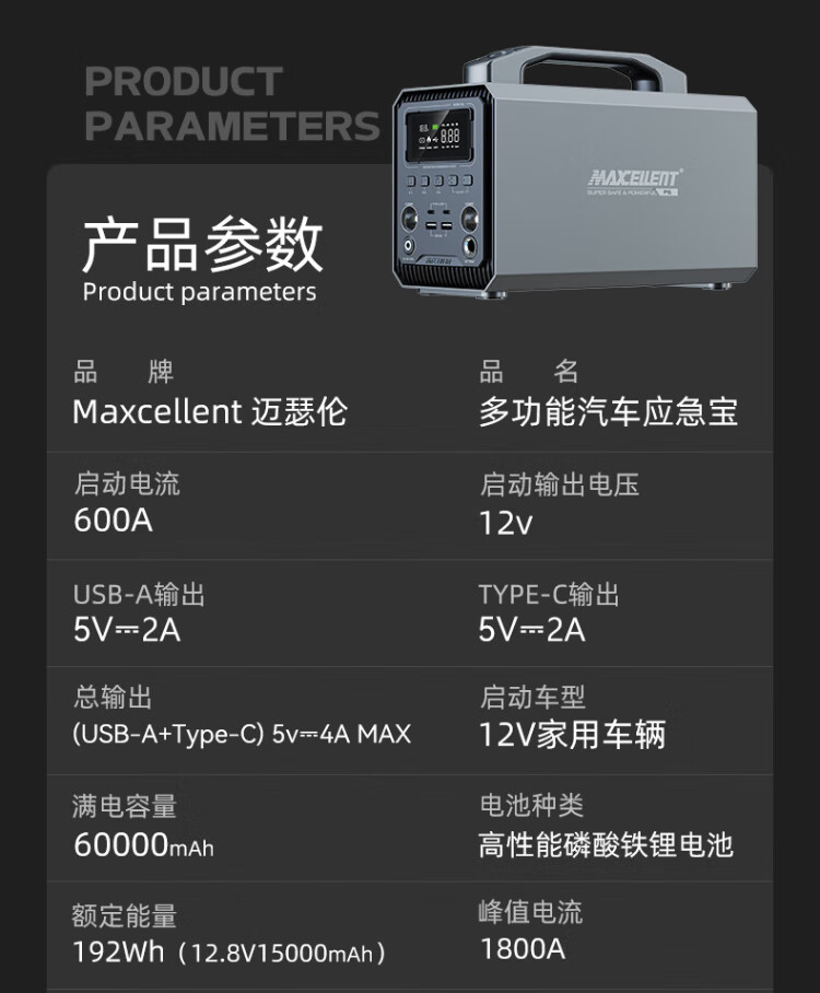 MAXCELLENT 3C certified car outdoor multi-function power supply car emergency start emergency battery tire air pump power bank and power bank 60000 mAh