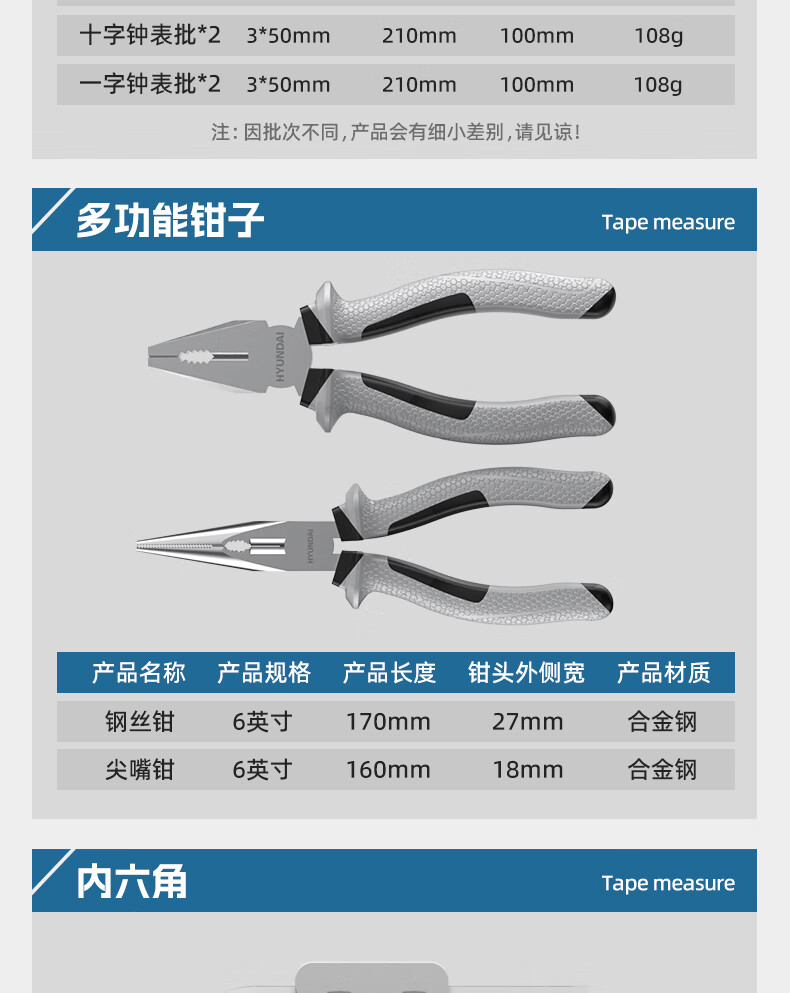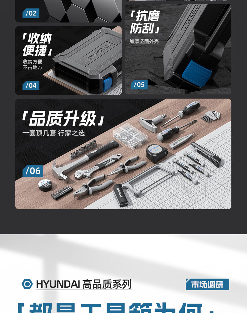 HYUNDAI household tool box set household electrician woodworking telecommunications repair tool set all-purpose set 26 pieces