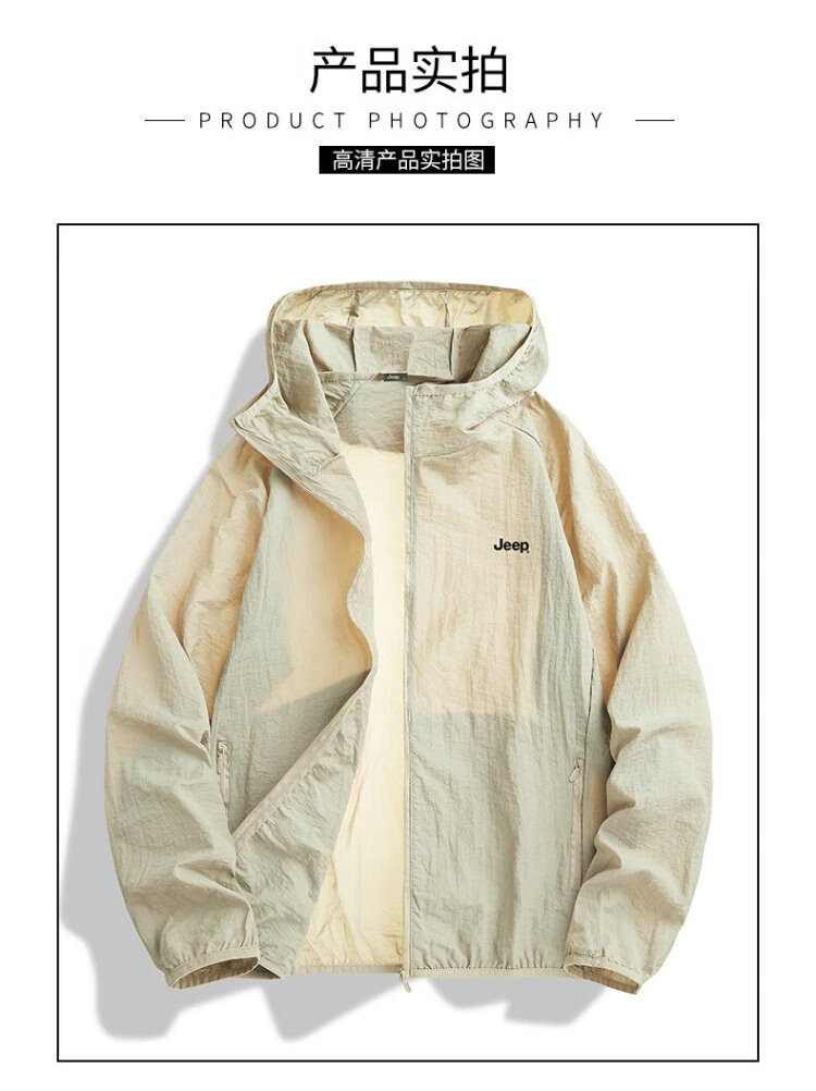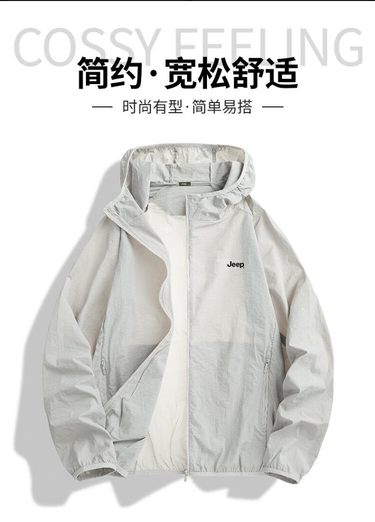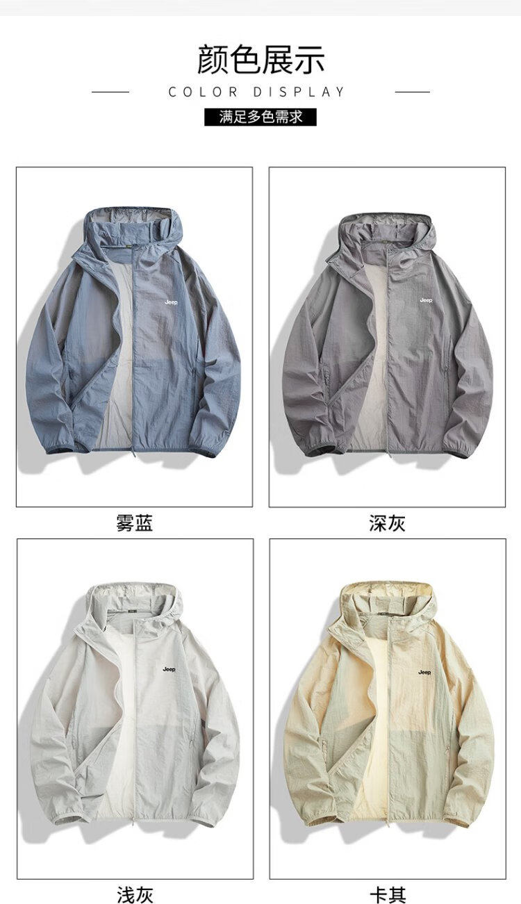 JEEP sun protection clothing men's summer UPF50+ ice silk breathable fishing sun protection clothing men's anti-UV large size thin jacket