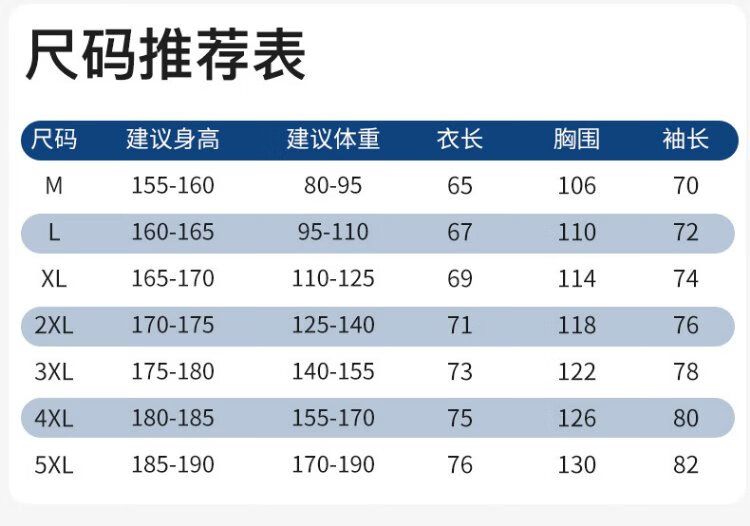 China (cm) 165 / 88-90 170 / 96-98 175 / 108-110 180 / 118-122 185 / 126-130