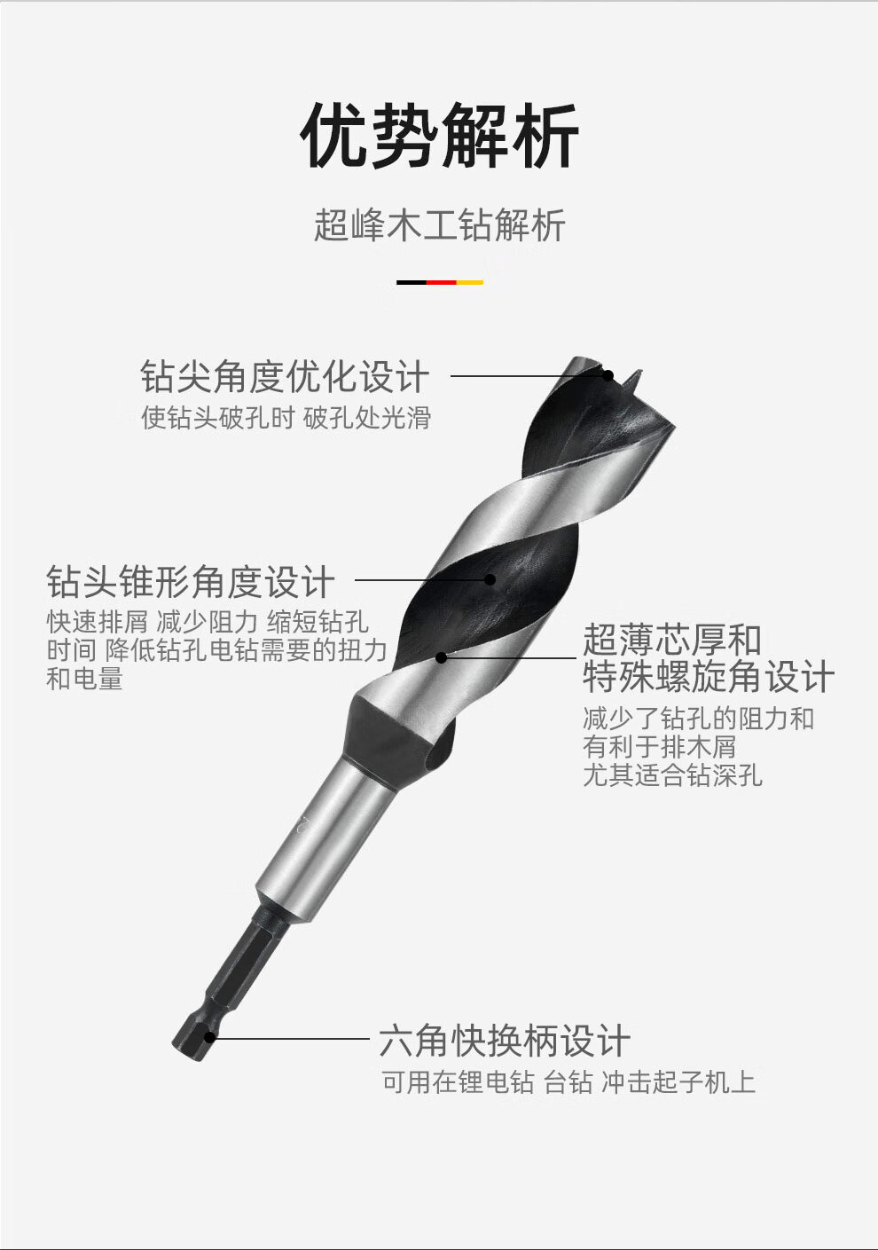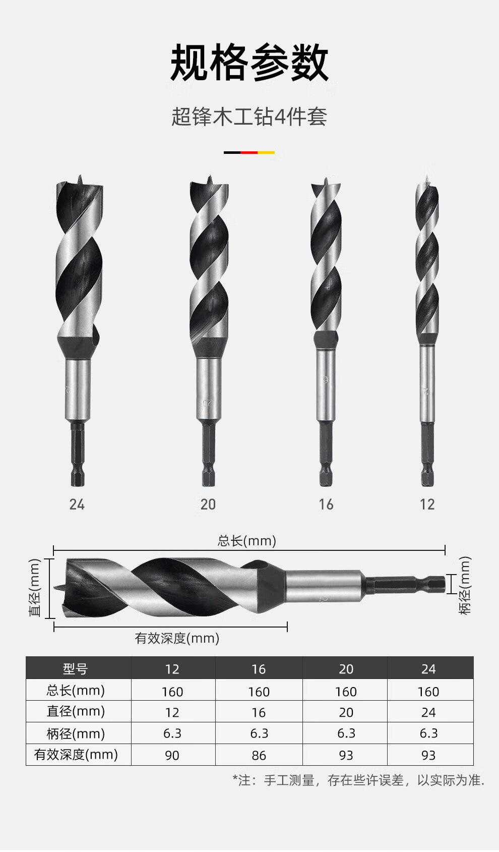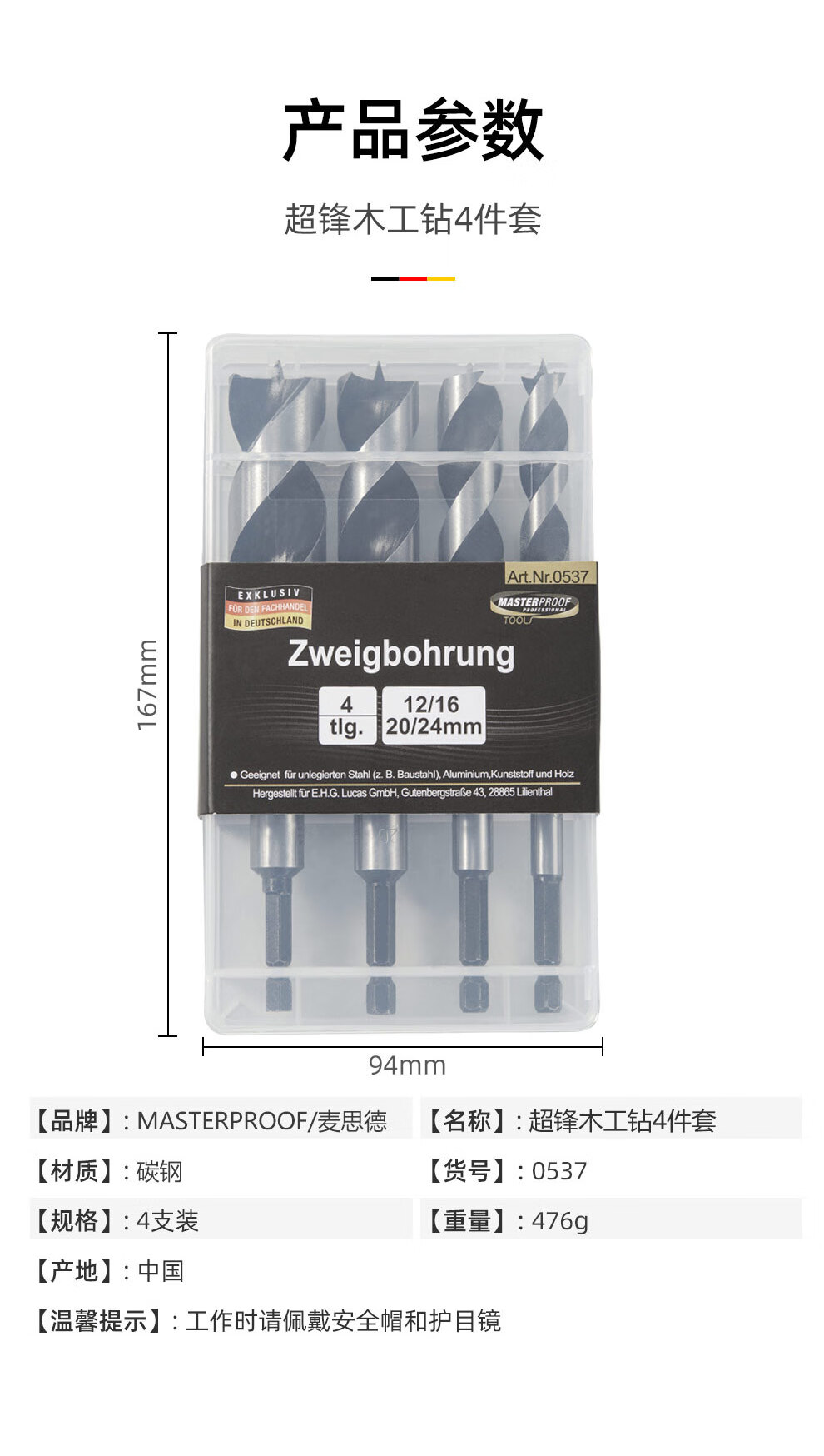 MASTERPROOF woodworking drill bit extended electric drill drill bit hole opener set hexagonal handle support Luo drill wood drill bit puncher hole expander