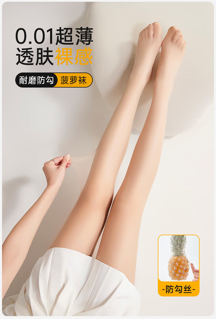 Urban Beauty Stockings Women's Summer Ultra-Thin Pineapple Socks Any Cut to Prevent Loose Pantyhose Sexy Long Bottoming Socks 2-Pack