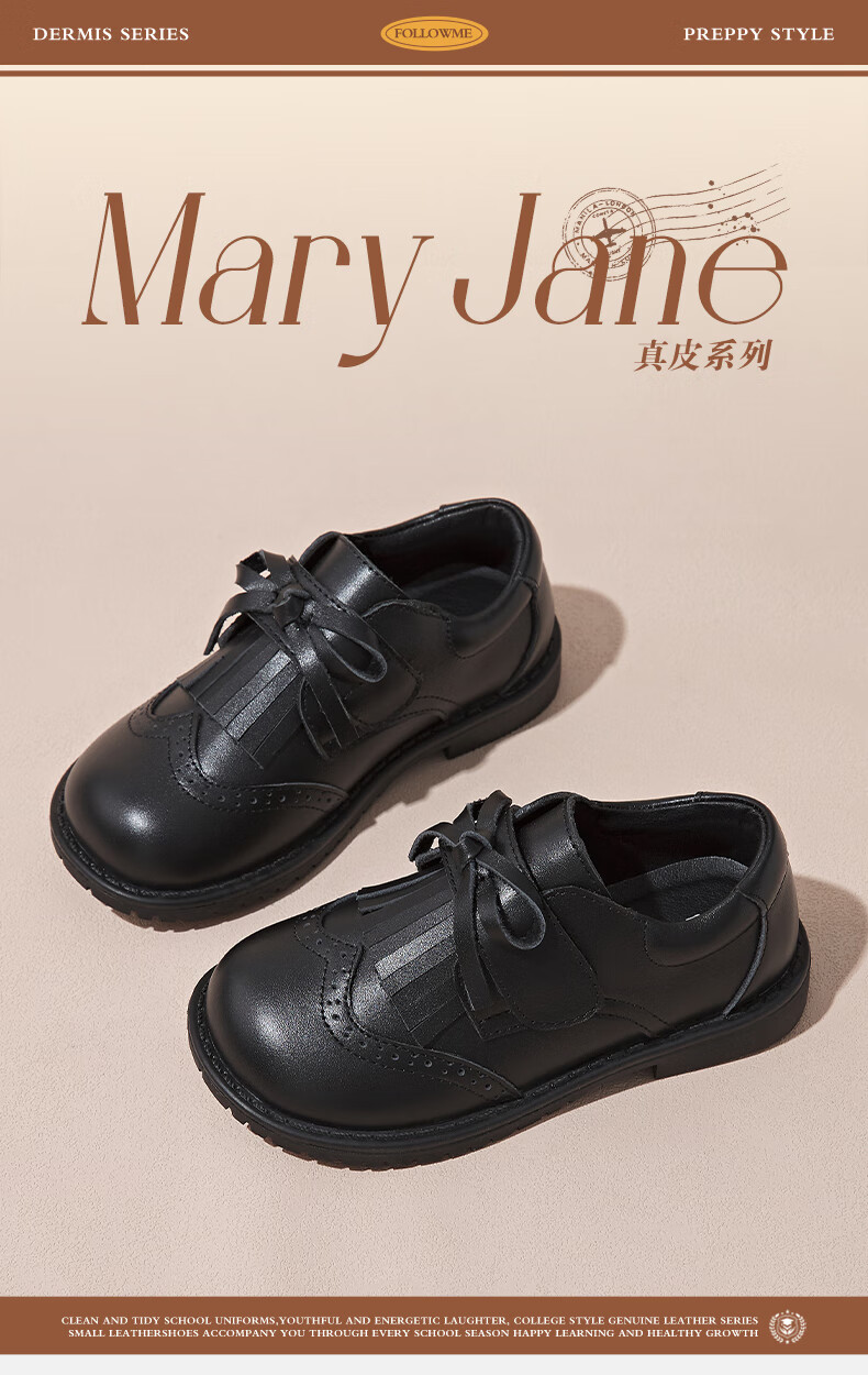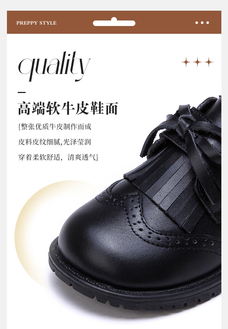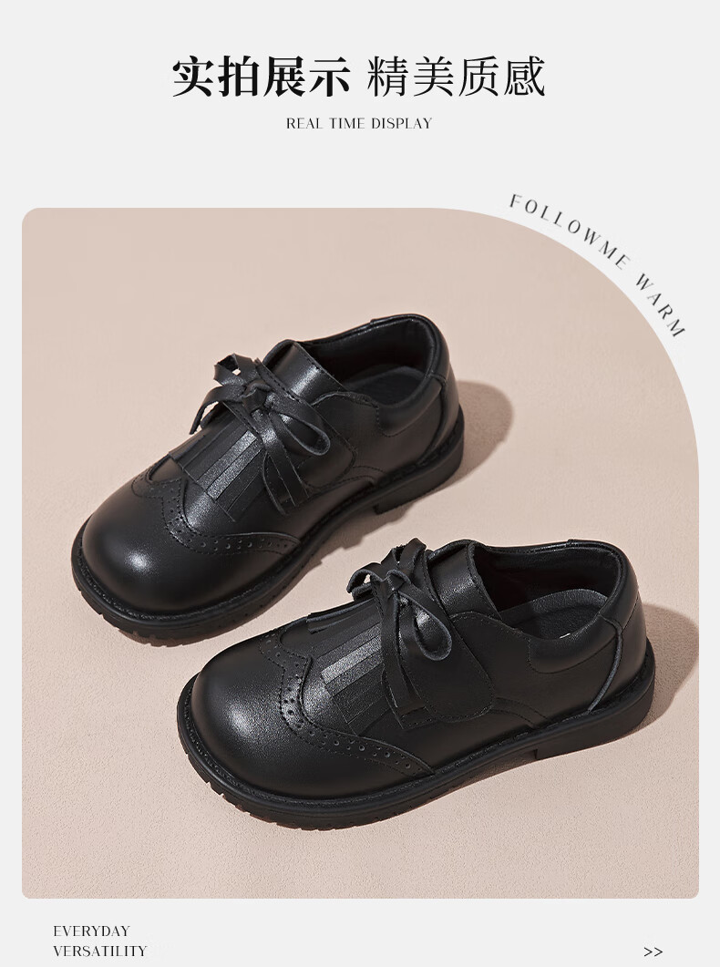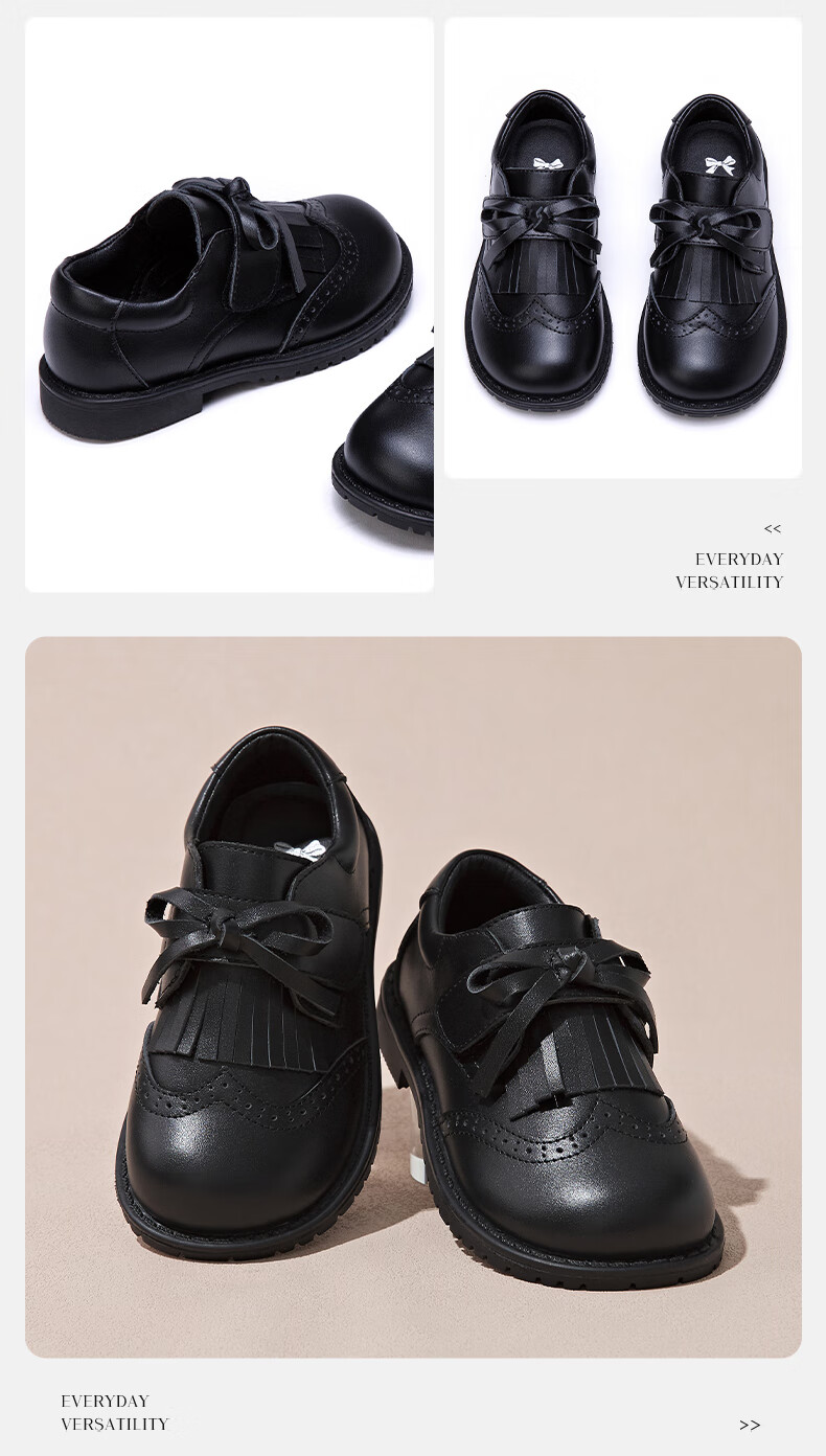 Fuluo Mi Girls Genuine Leather Shoes Spring and Autumn British Style Performance Fashion Shoes Children's Black Breathable Shoes Black 29
