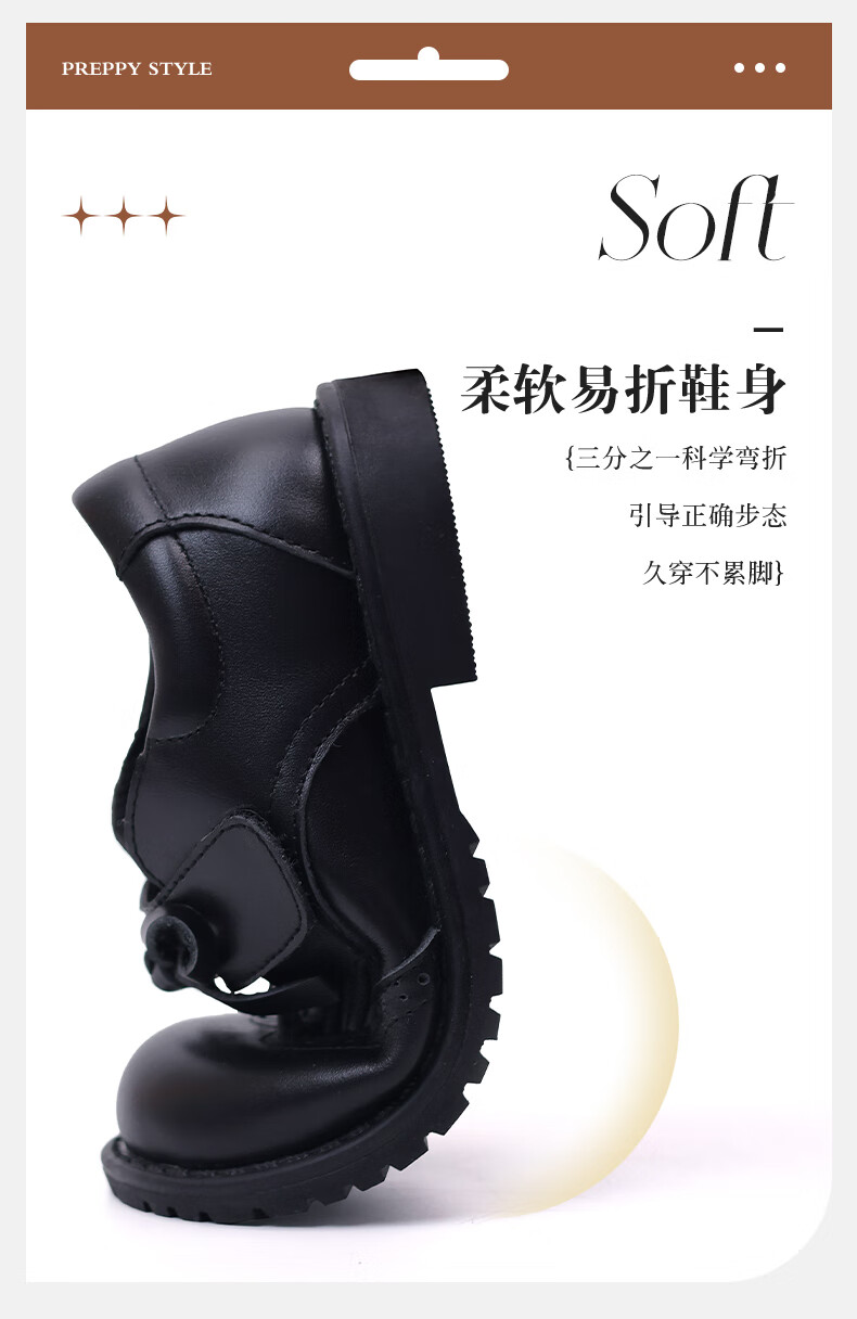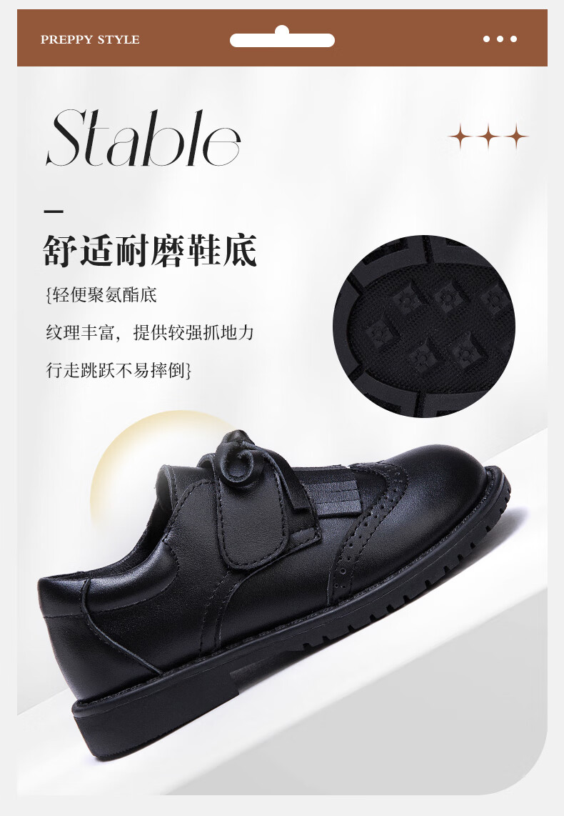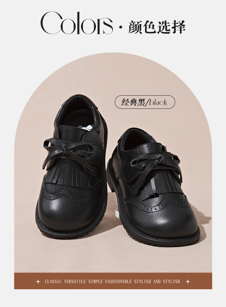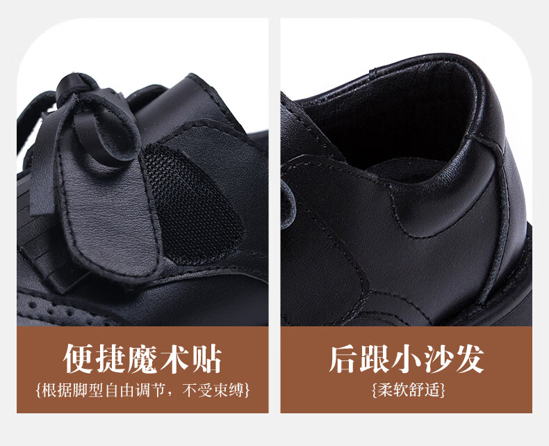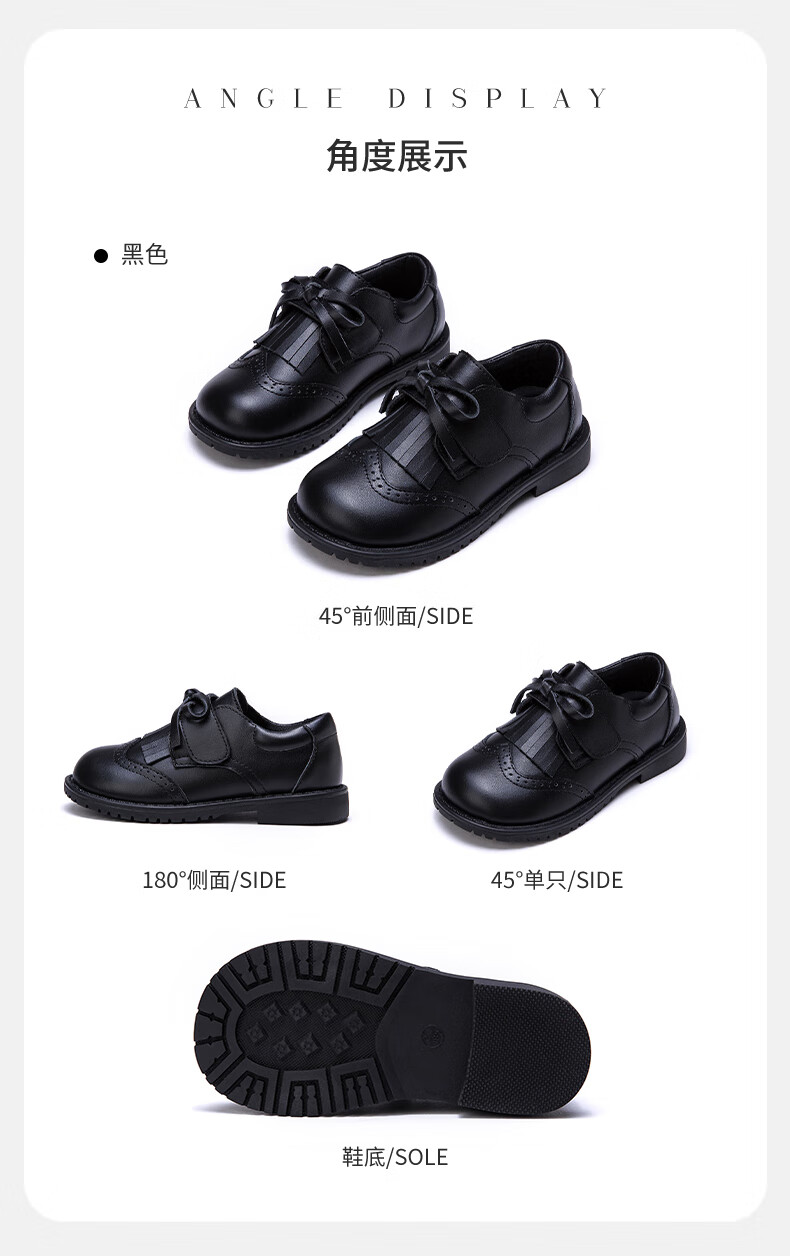 Fuluo Mi Girls Genuine Leather Shoes Spring and Autumn British Style Performance Fashion Shoes Children's Black Breathable Shoes Black 29