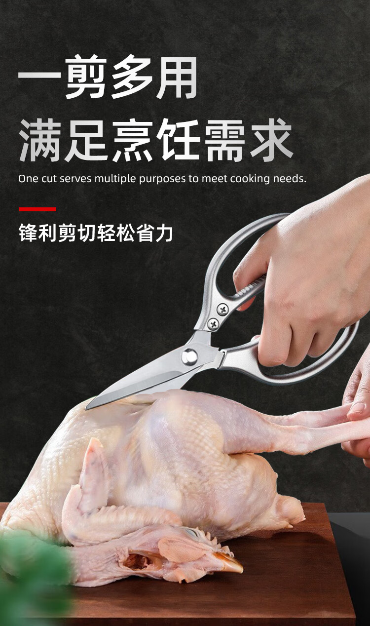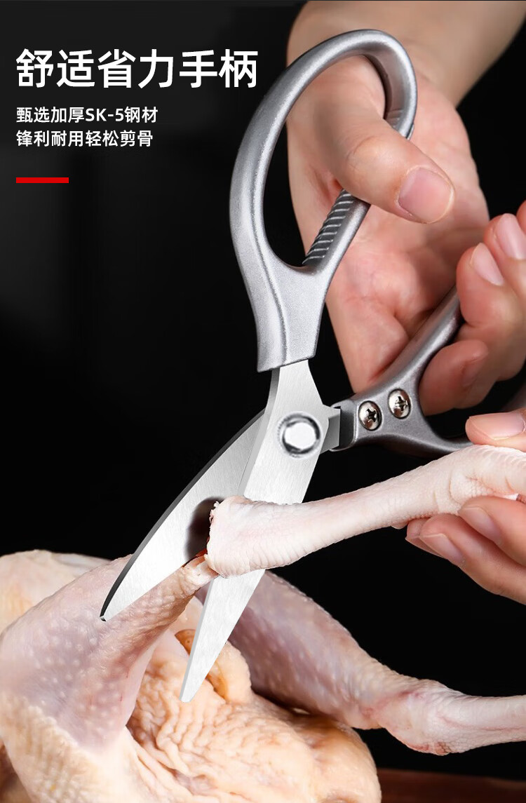 Factory No. 1 Food Grade SK5 Stainless Steel Multifunctional Household Scissors Chicken Duck Fish Bone Strong Household Aluminum Alloy Handle Scissors