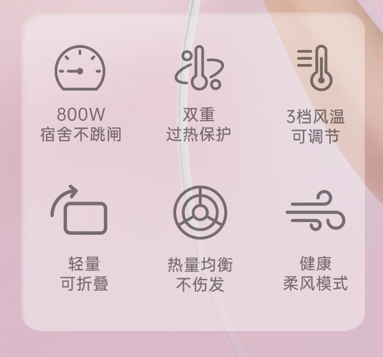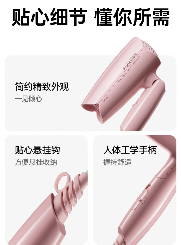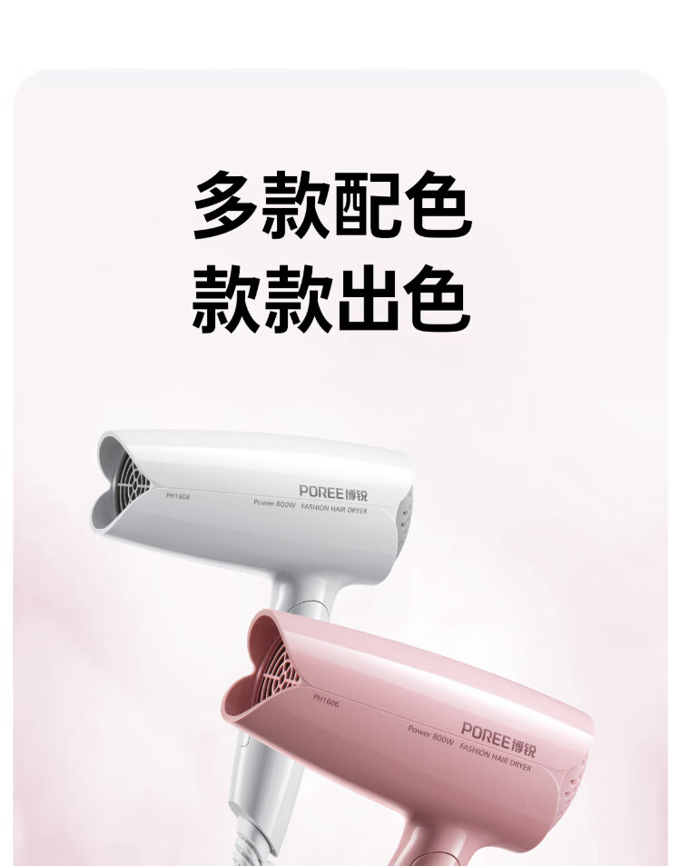 Feike Borui hair dryer, 800W hair dryer for student dormitories, portable and foldable, low power for home use, does not harm hair, PH1606 powder