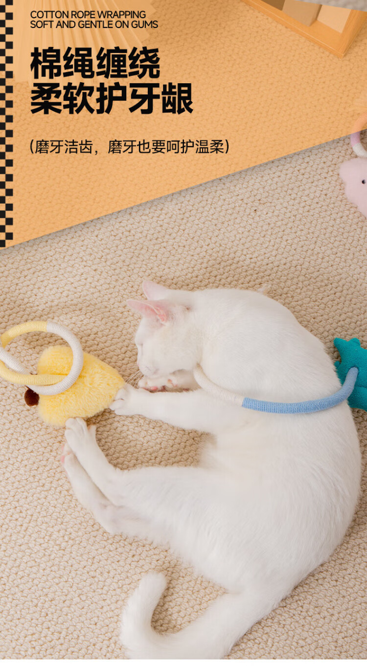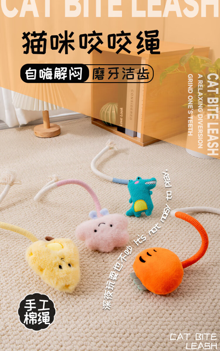 Extension pet cat chewing rope toy self-pleasure relieve boredom artifact teeth grinding and bite-resistant kitten kitten cat teasing stick supplies cloud doll