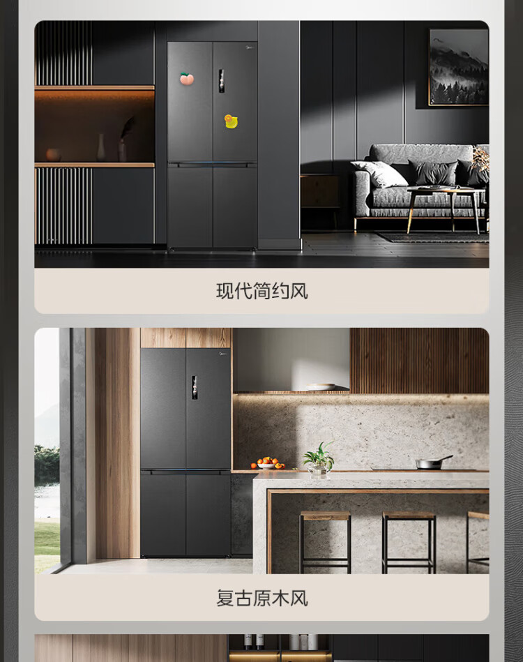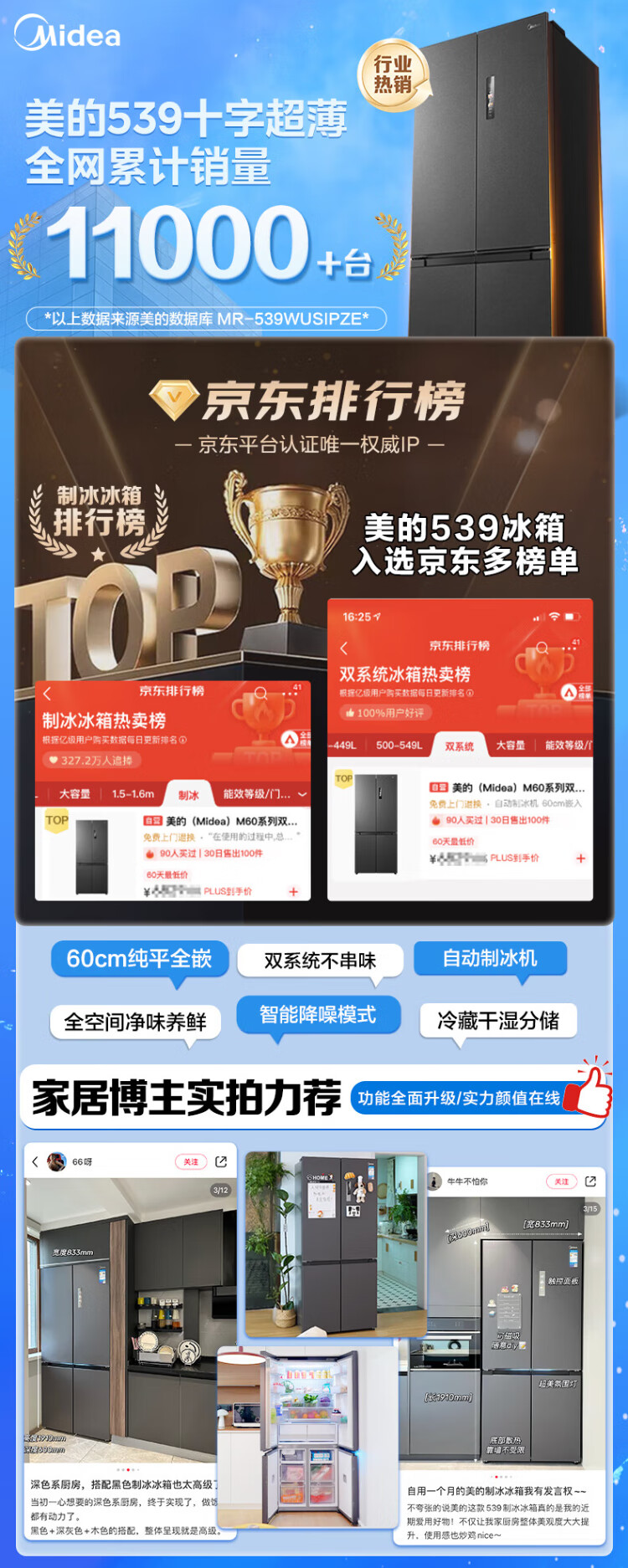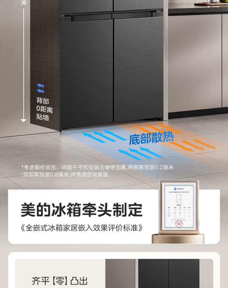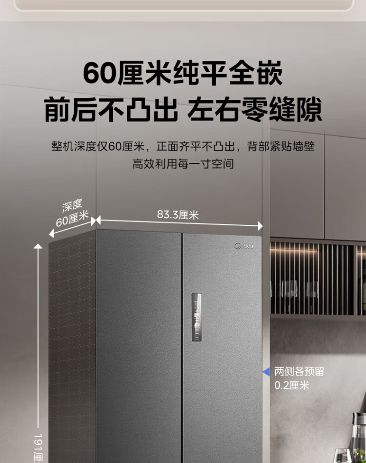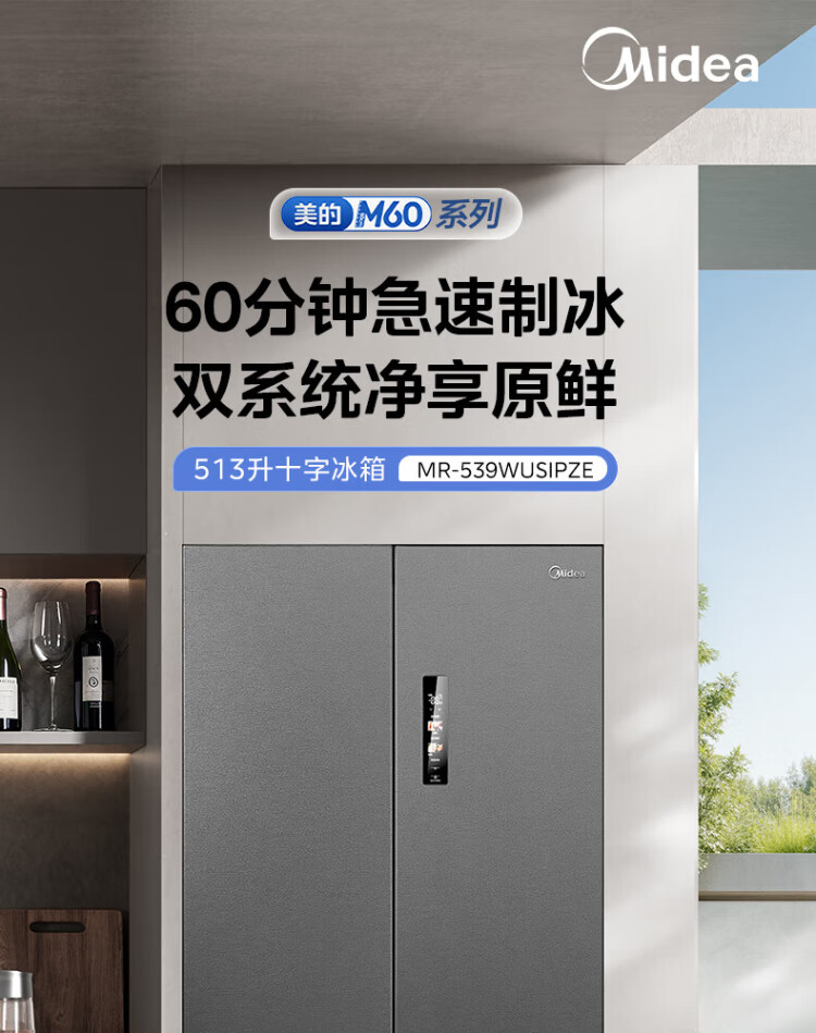 Midea M60 series Gemini 539 cross four-door automatic ice making all-in-one machine dual system ultra-thin fully zero built-in refrigerator MR-539WUSIPZE 20% national subsidy for home appliances