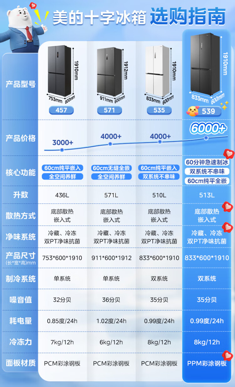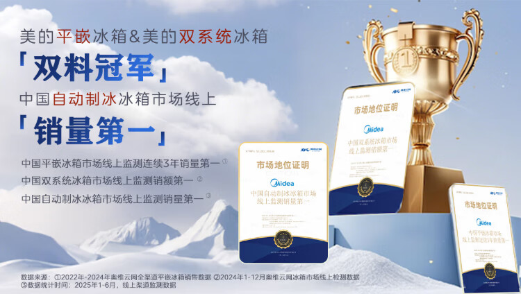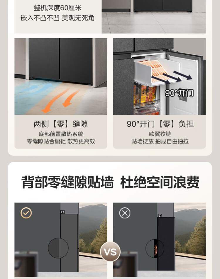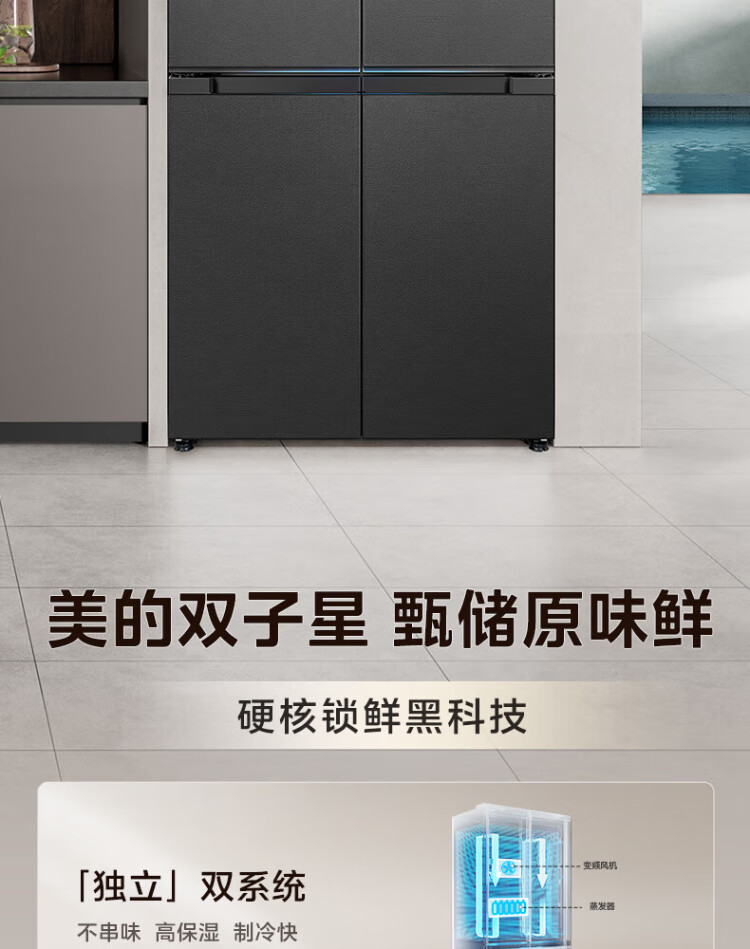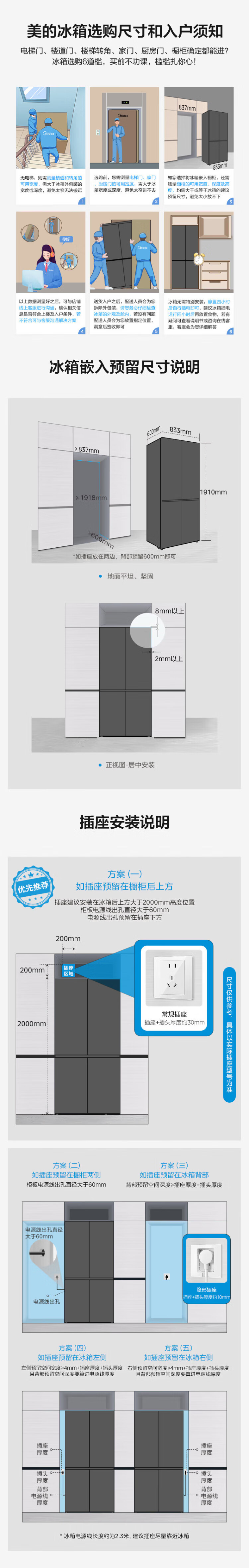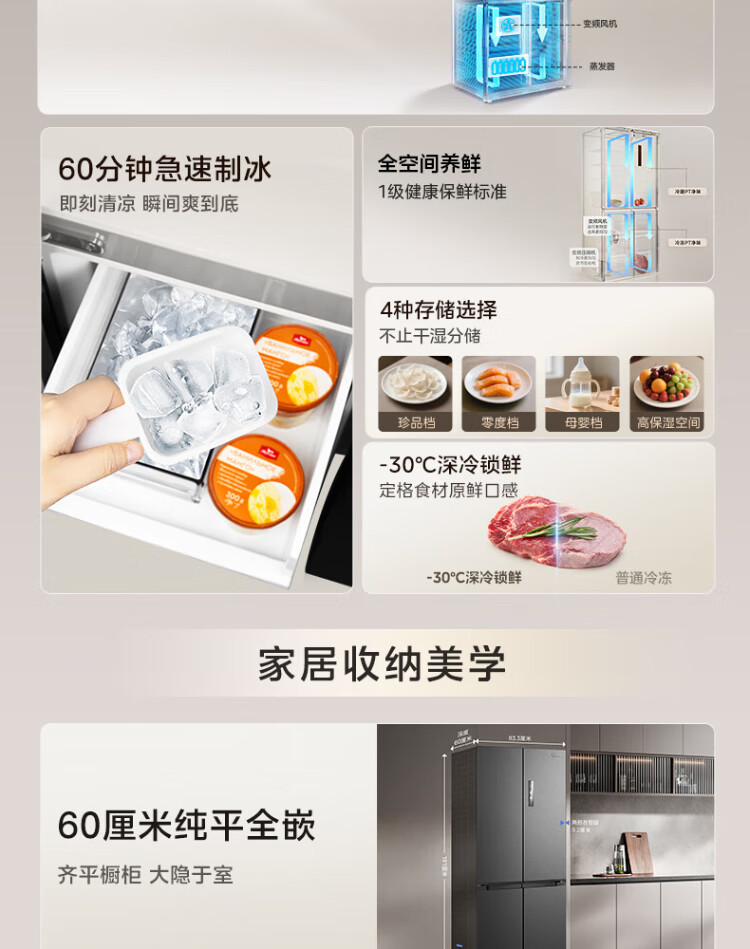 Midea M60 series Gemini 539 cross four-door automatic ice making all-in-one machine dual system ultra-thin fully zero built-in refrigerator MR-539WUSIPZE 20% national subsidy for home appliances