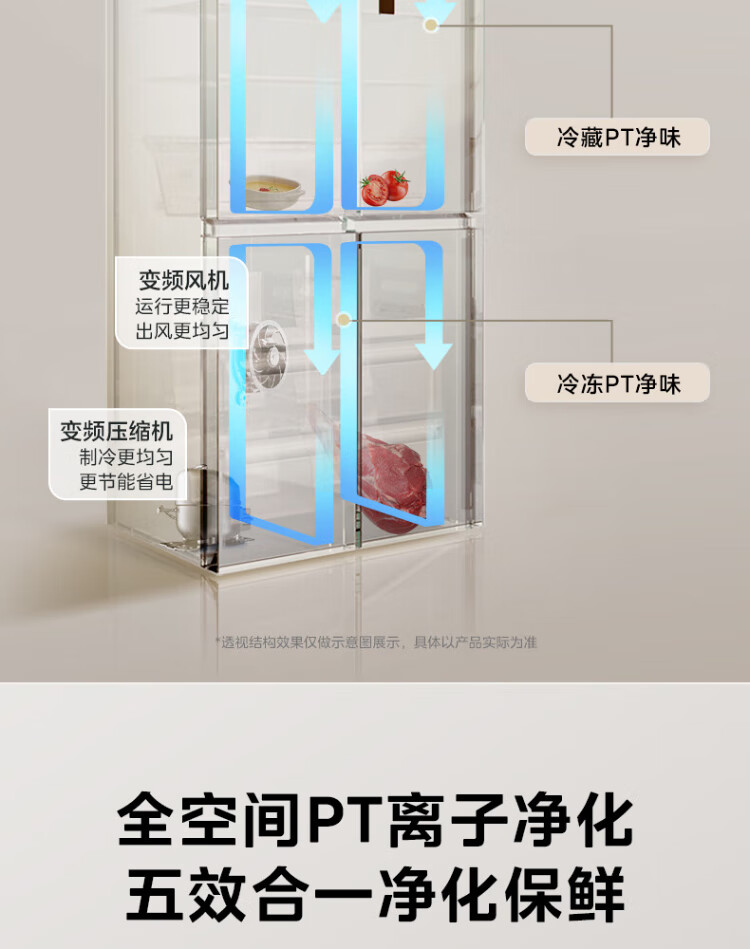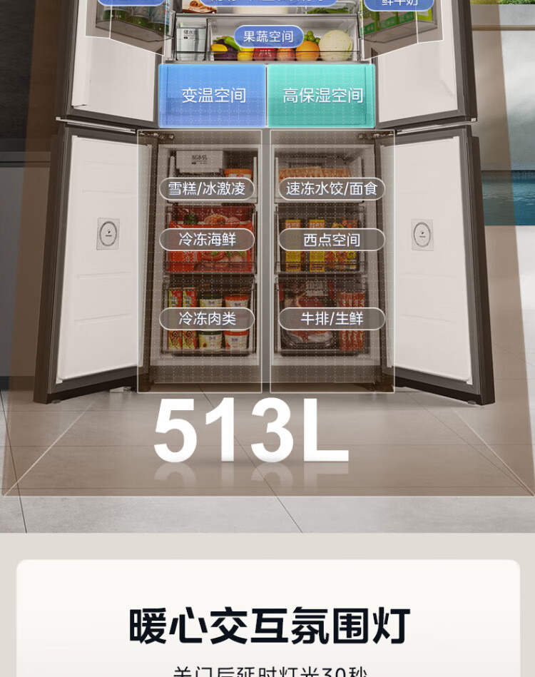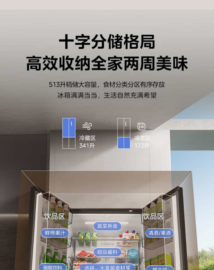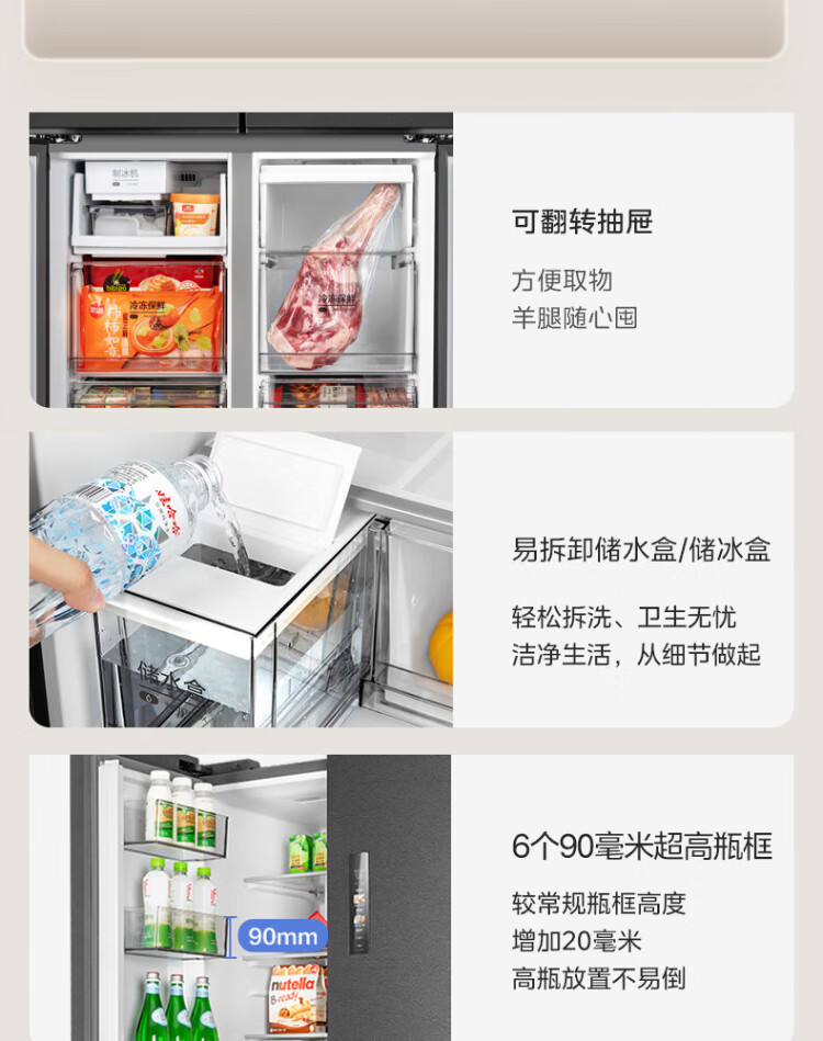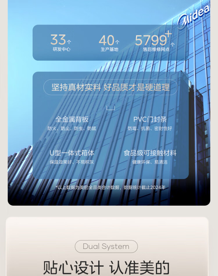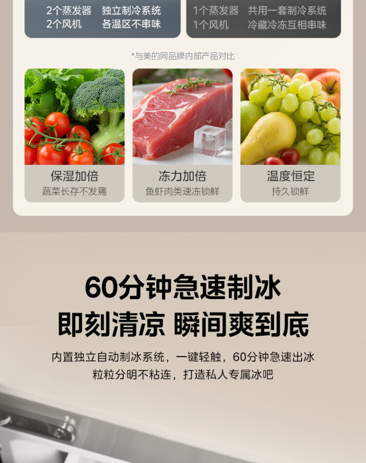 Midea M60 series Gemini 539 cross four-door automatic ice making all-in-one machine dual system ultra-thin fully zero built-in refrigerator MR-539WUSIPZE 20% national subsidy for home appliances