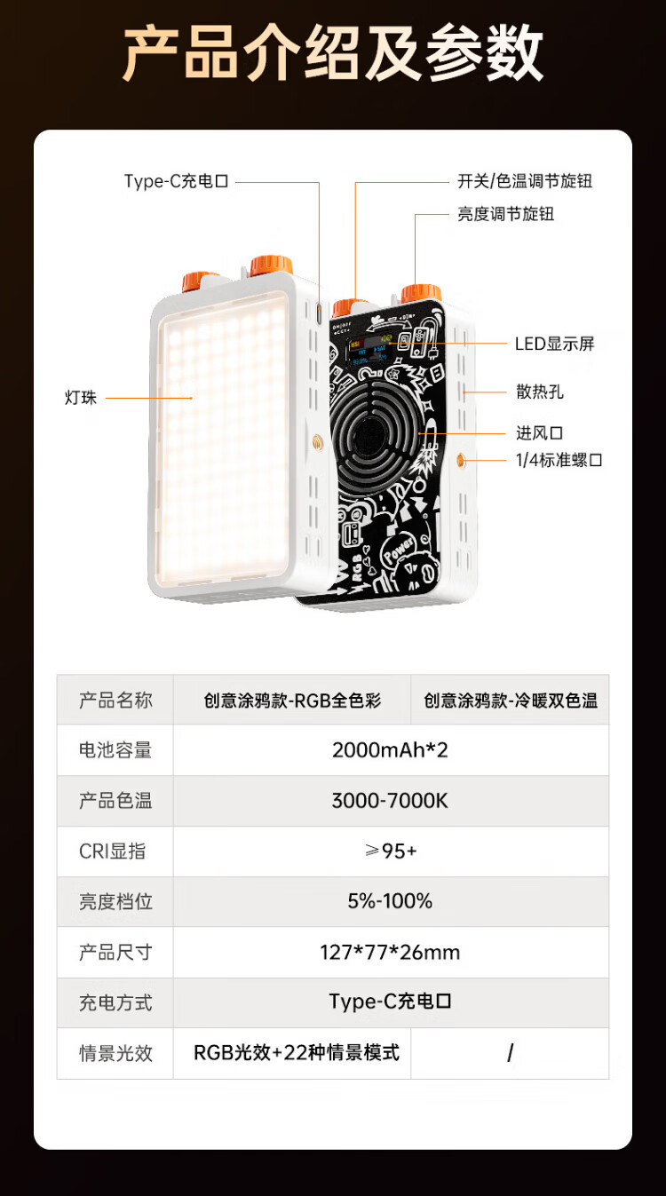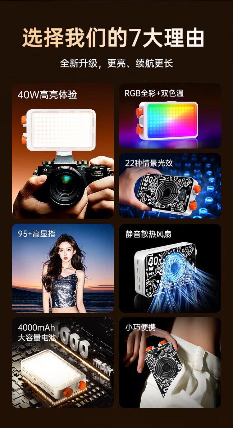 Jimantu 40W live photography fill light portable LED pocket light micro single camera mobile phone dual color temperature fill light rechargeable outdoor photography light