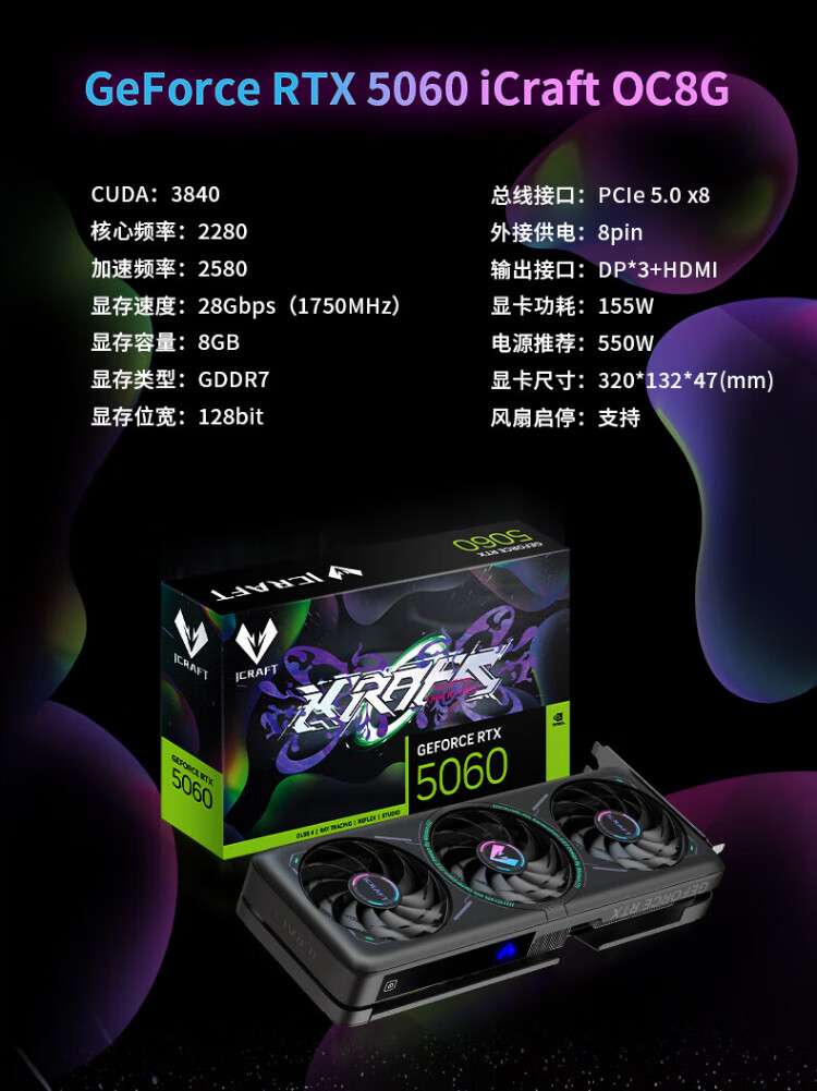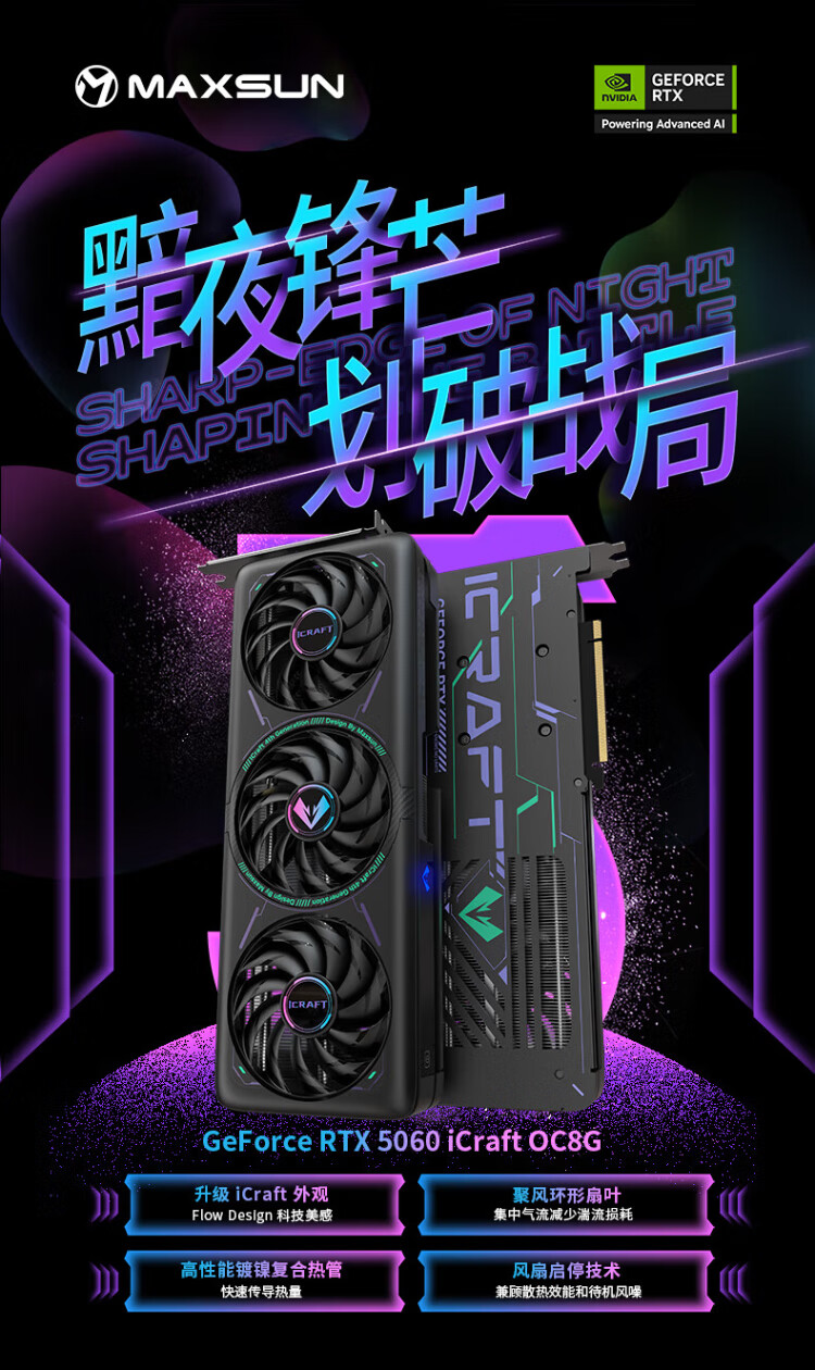 MAXSUN GeForce RTX5060 iCraft OC8G DLSS 4 E-Sports Heart Light Chasing Game AI Design Computer Graphics Card