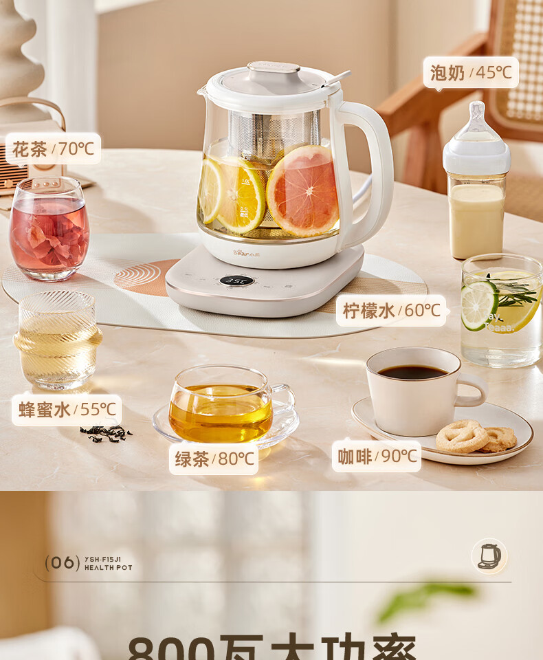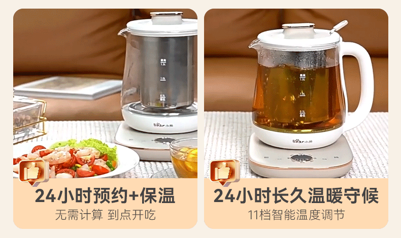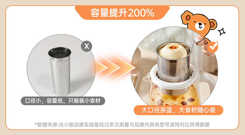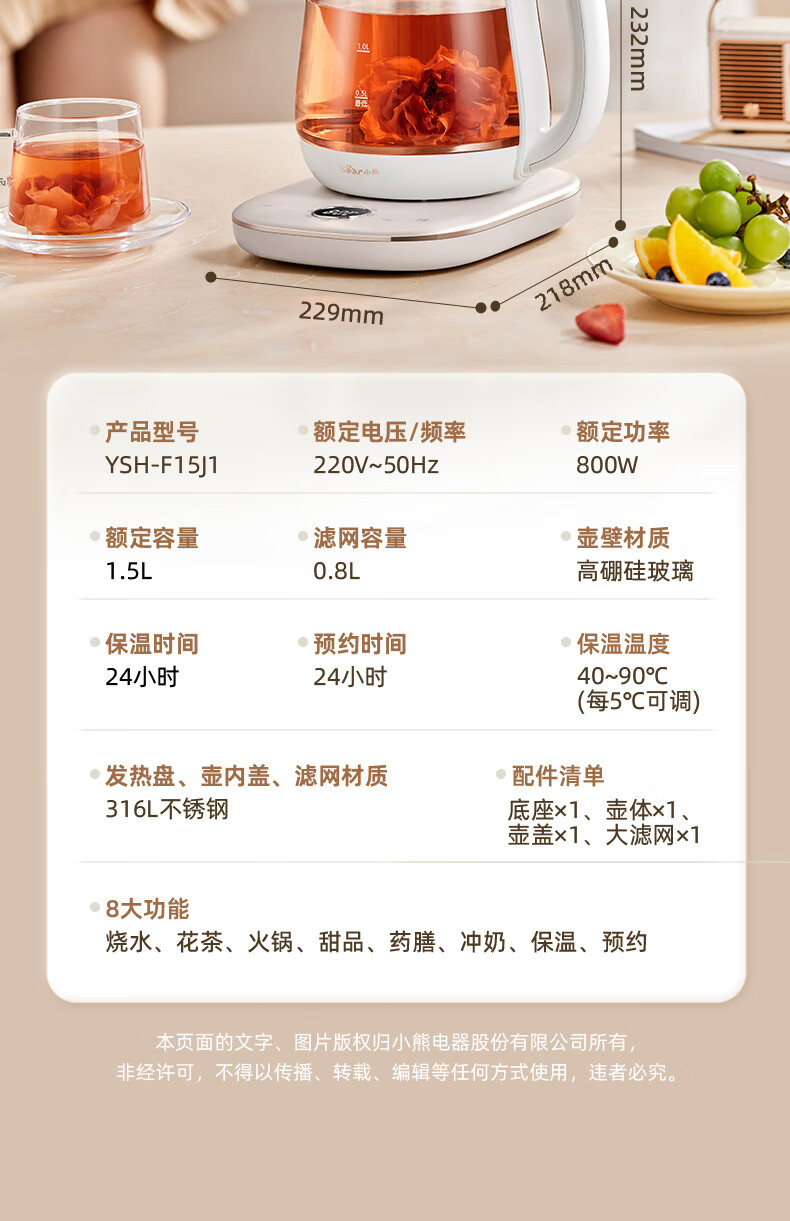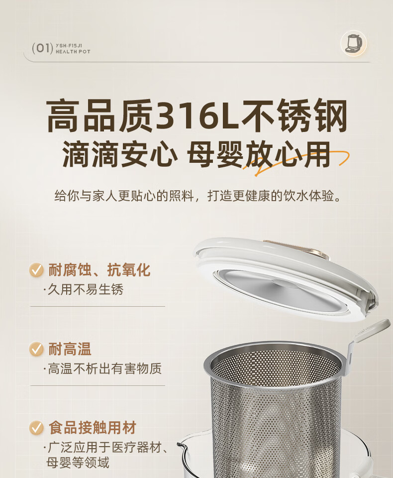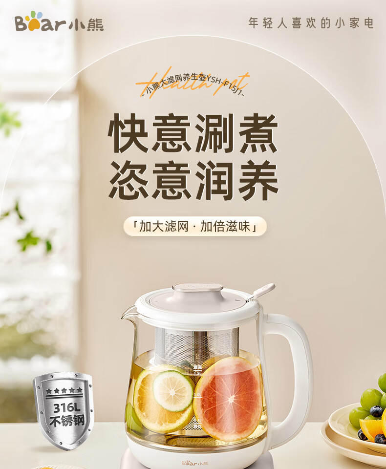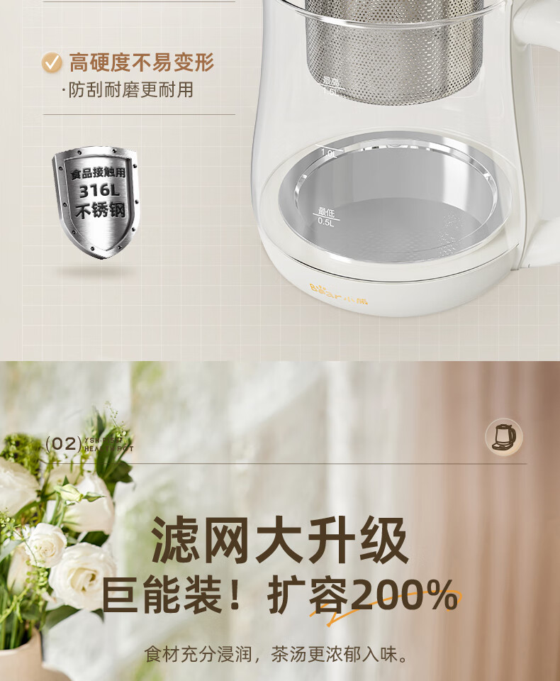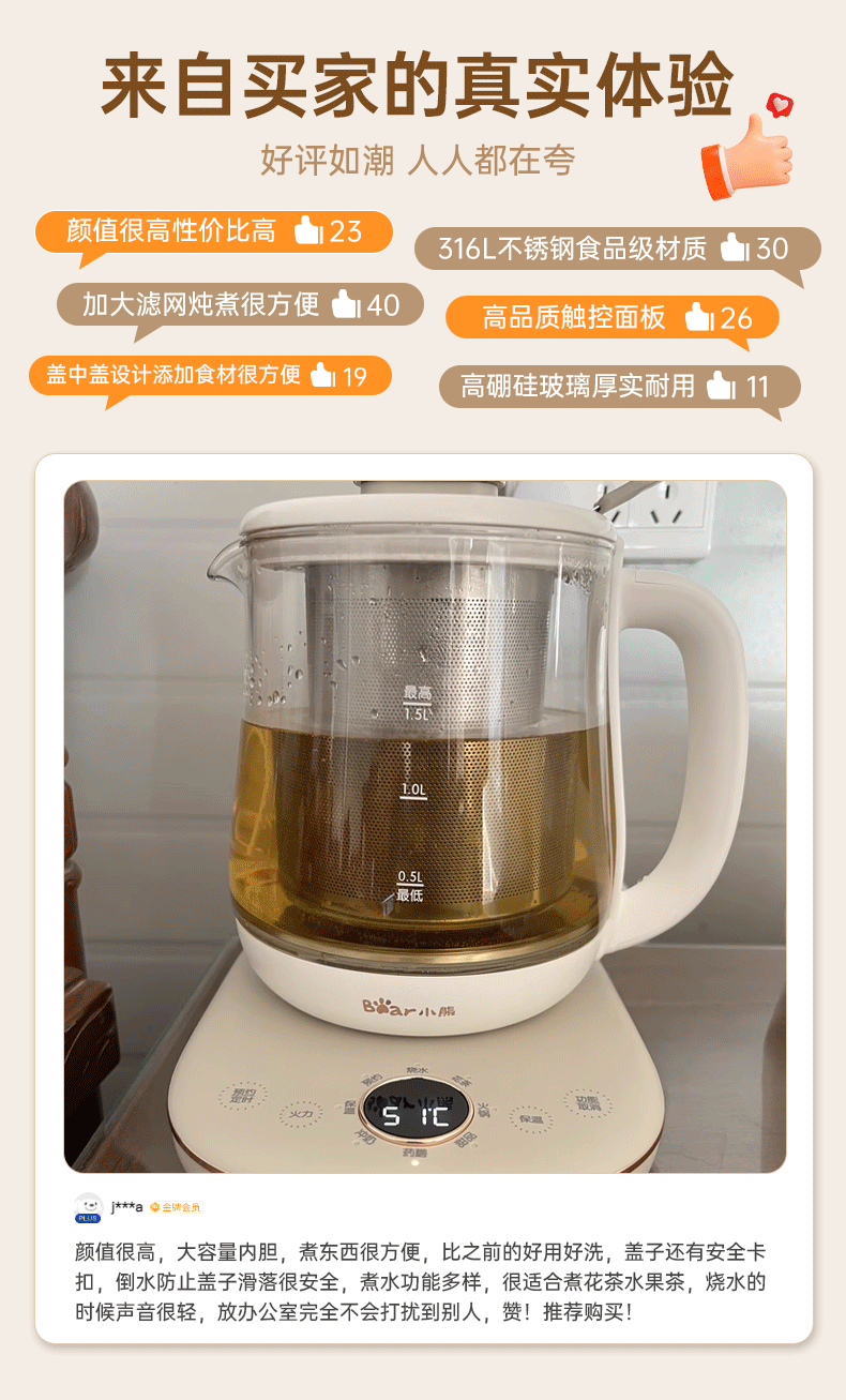 Bear health kettle, kettle, tea kettle, 316L stainless steel tea kettle, enlarged filter to separate tea, scented tea, 1.5L home office stewing kettle all in one YSH-F15J1