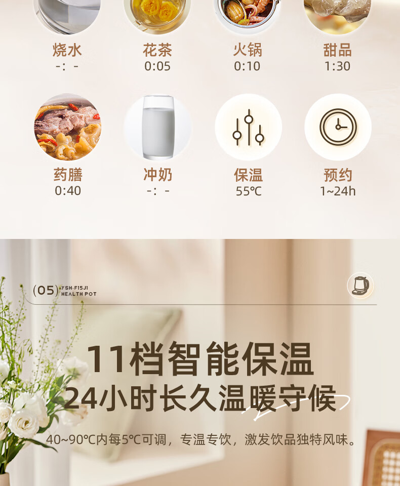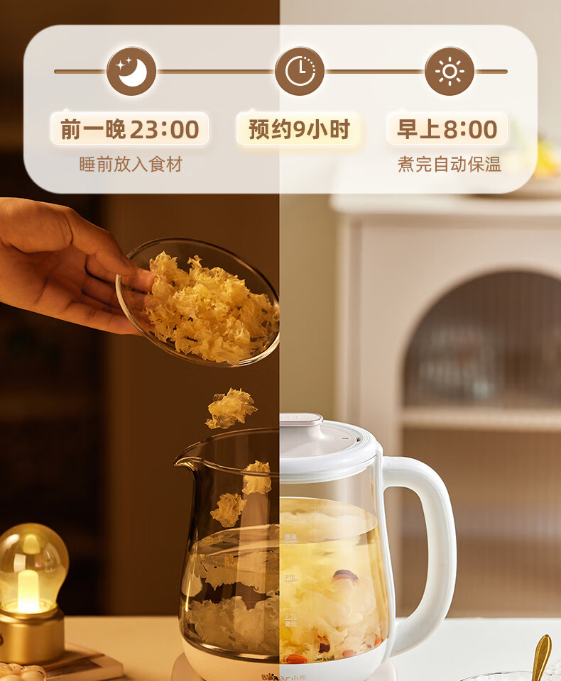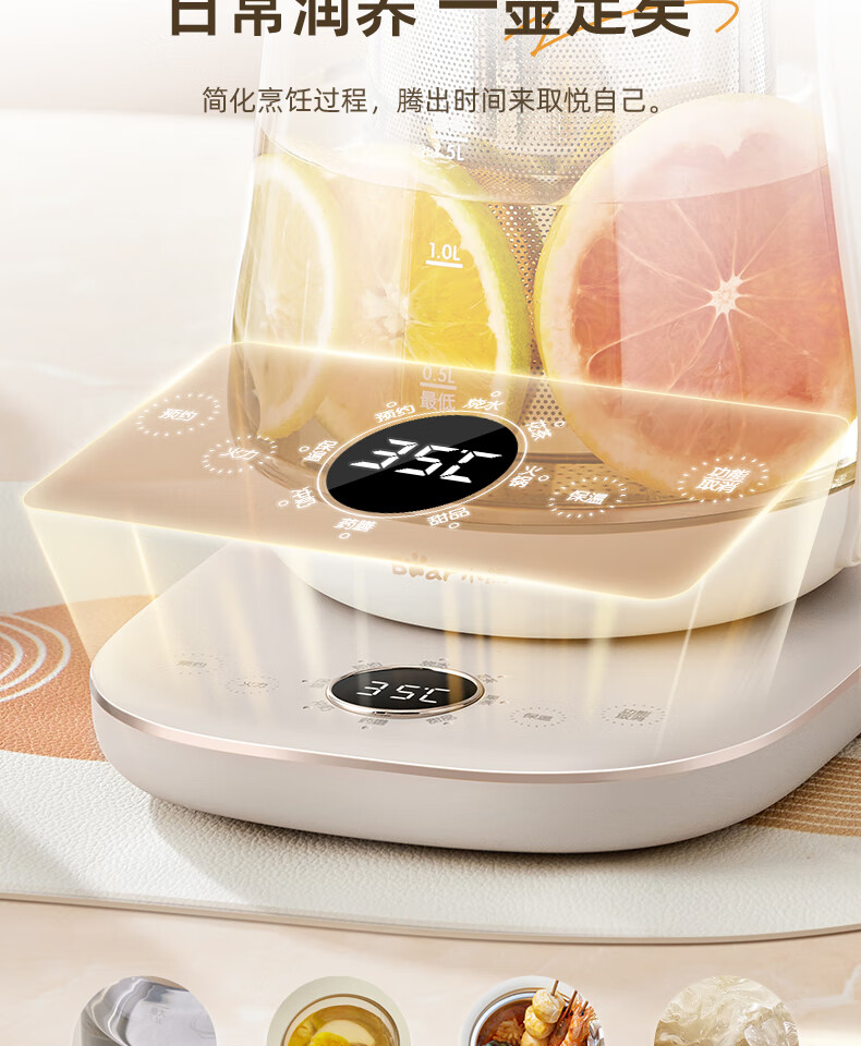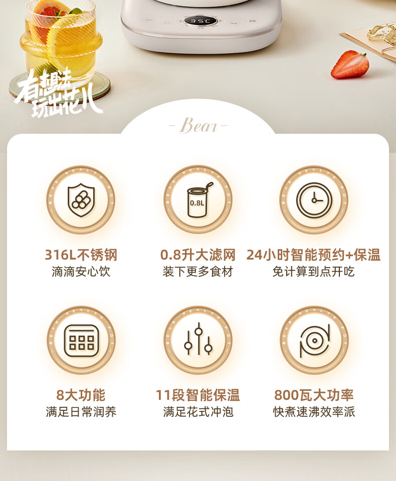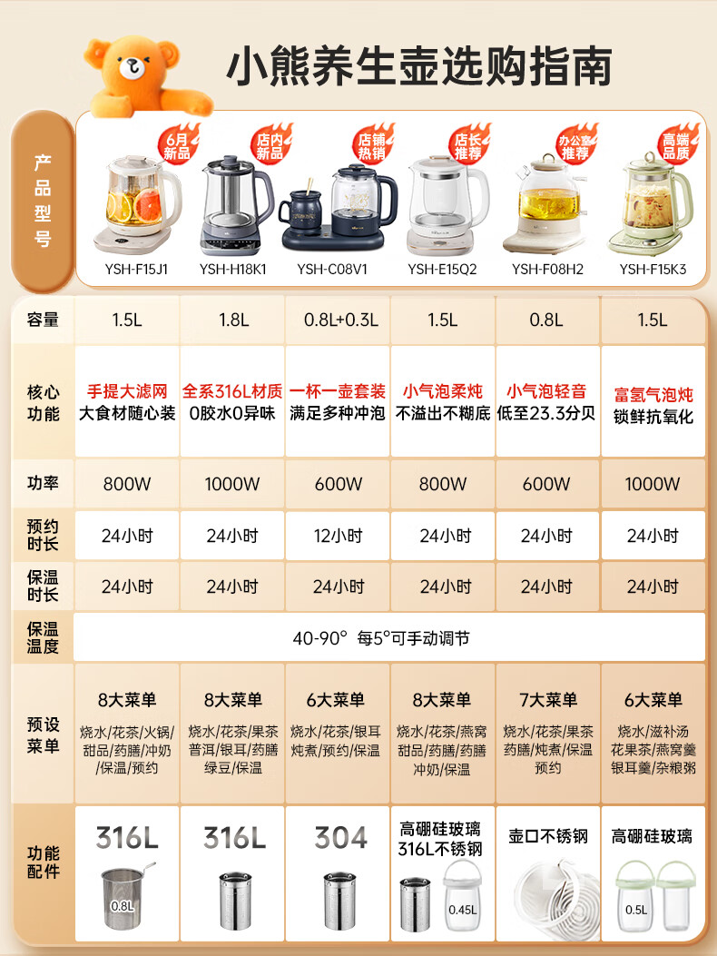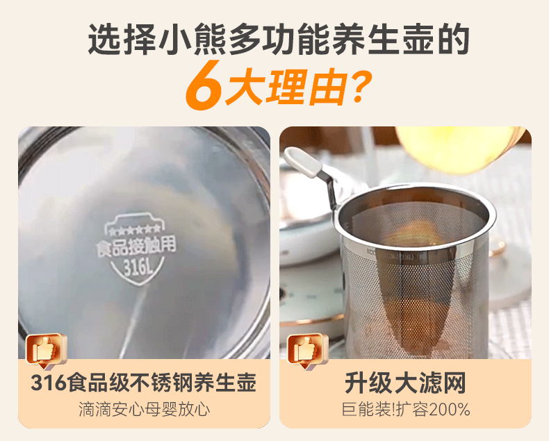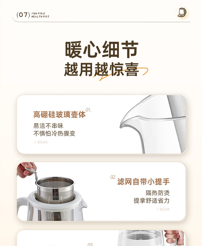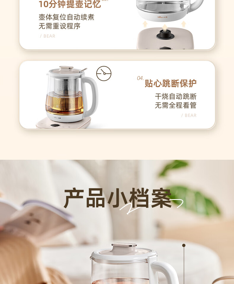 Bear health kettle, kettle, tea kettle, 316L stainless steel tea kettle, enlarged filter to separate tea, scented tea, 1.5L home office stewing kettle all in one YSH-F15J1