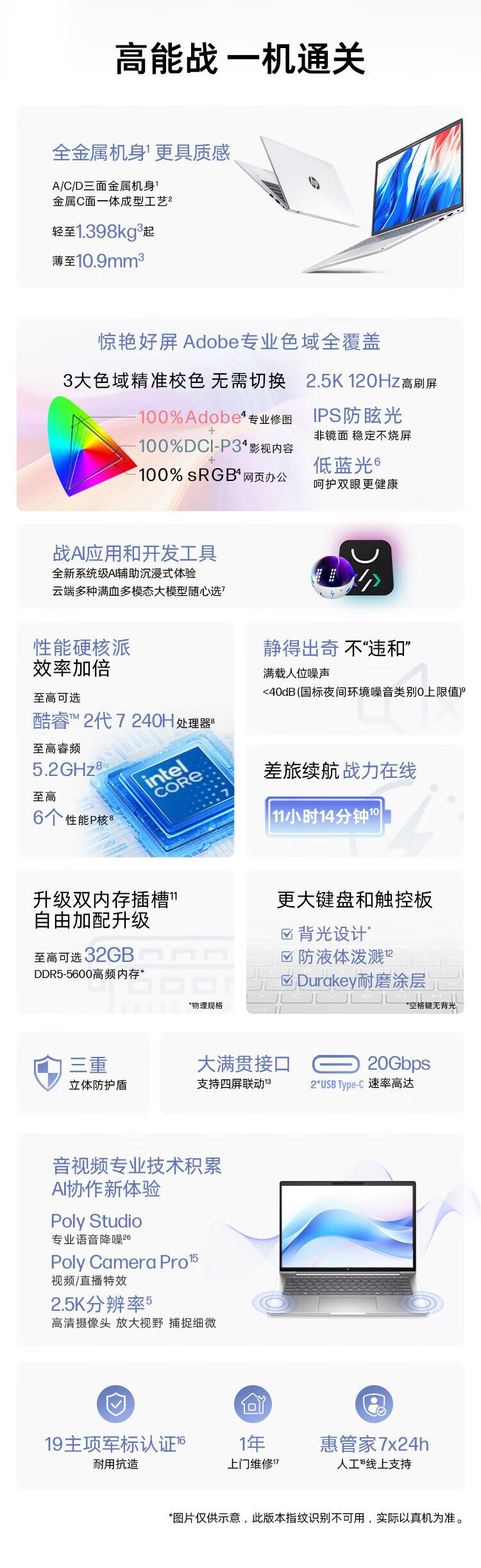 惠普(HP)战66八代 14英寸轻薄笔记本电脑 (25新酷睿5标压 16G 1T 2.5K屏 19项军标 一年上门服务)国家补贴