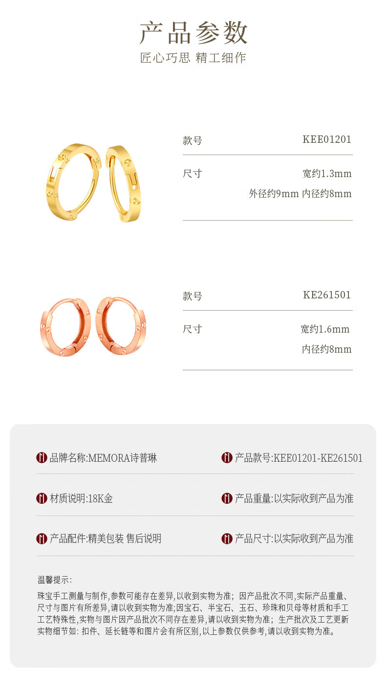 Shipulin 18K gold earrings, simple earrings for women, gift for self-wear, yellow 18K gold