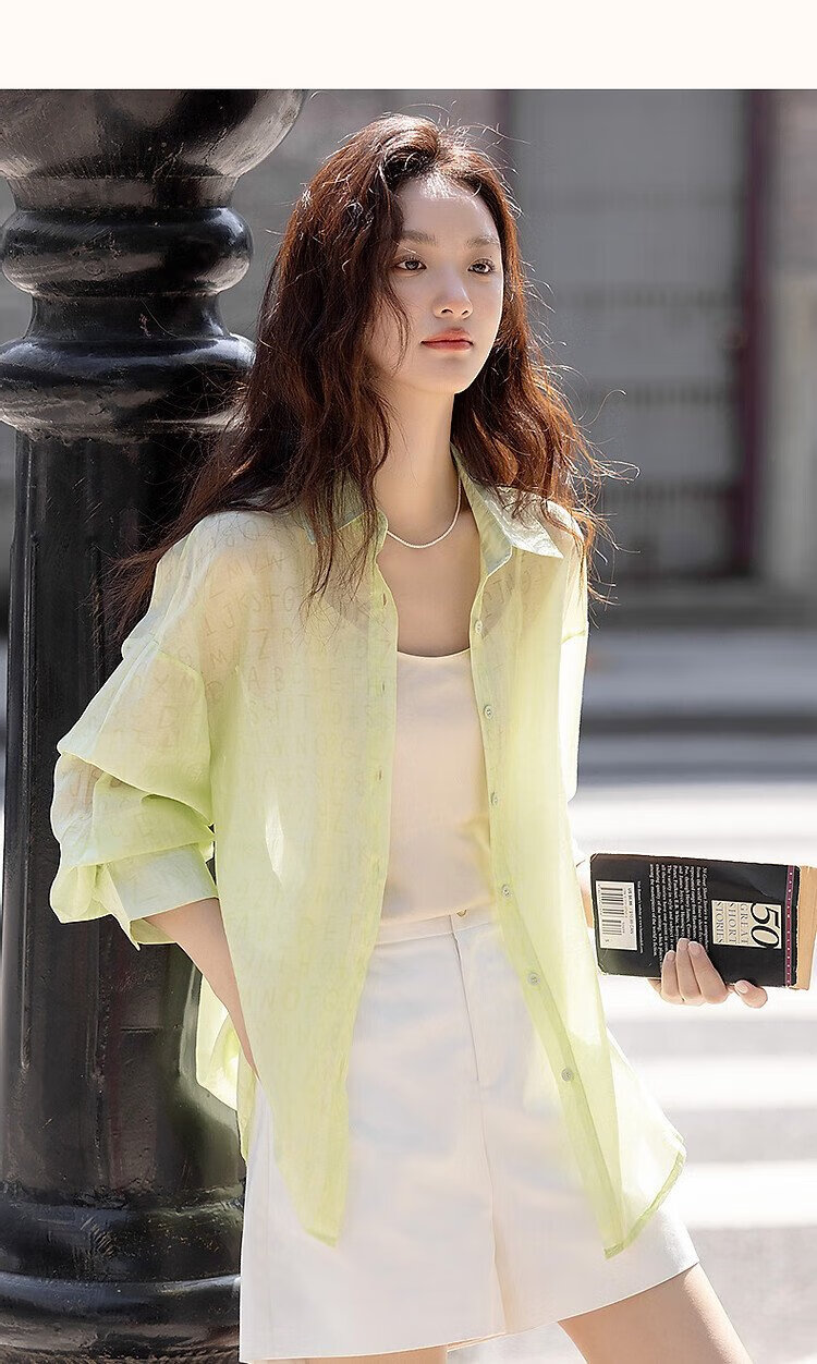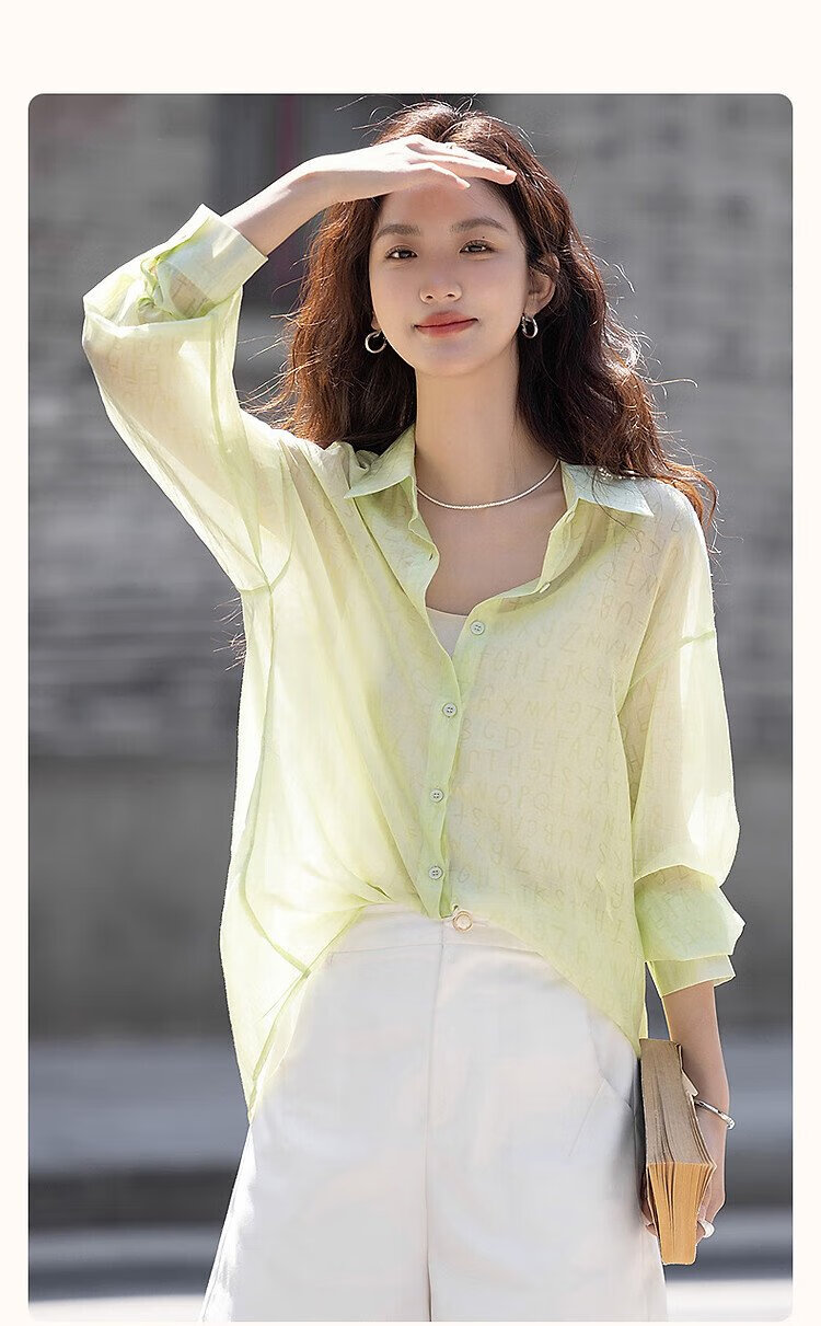 Demana Letter Party Spring and Autumn Dopamine Lyocell Gradient Print Lapel Shirt Light Shirt Women's Top