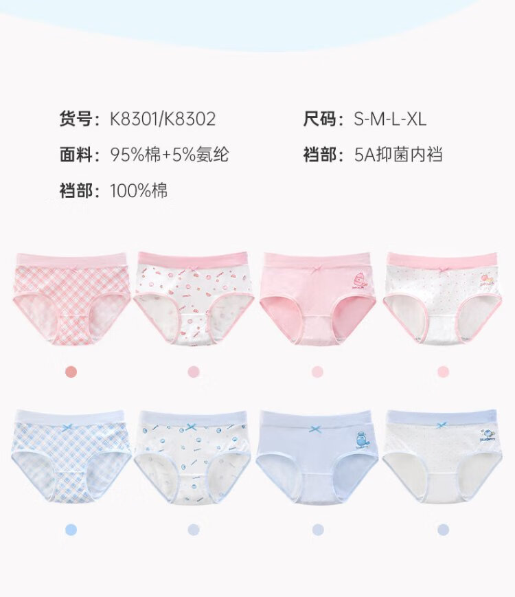 Ariel & Aurora Girls Underwear Pure Cotton 100 Cotton Category A Children 6-12 Years Old Middle-aged Girls Triangle Girls Students Antibacterial S