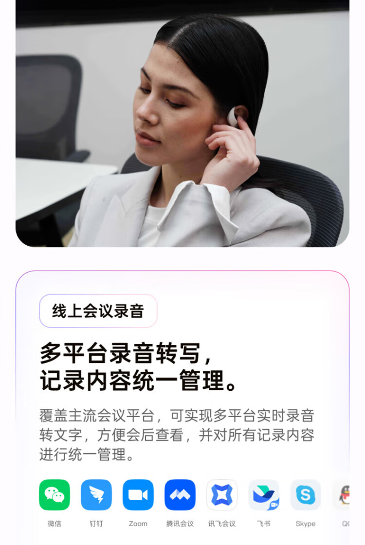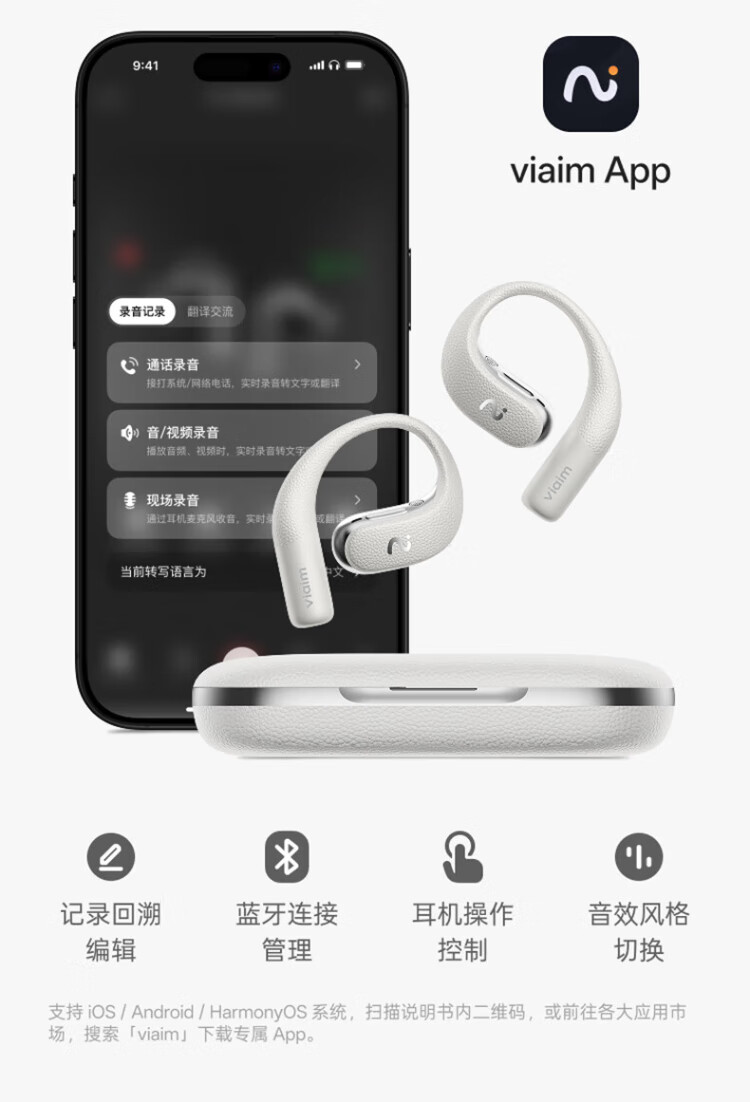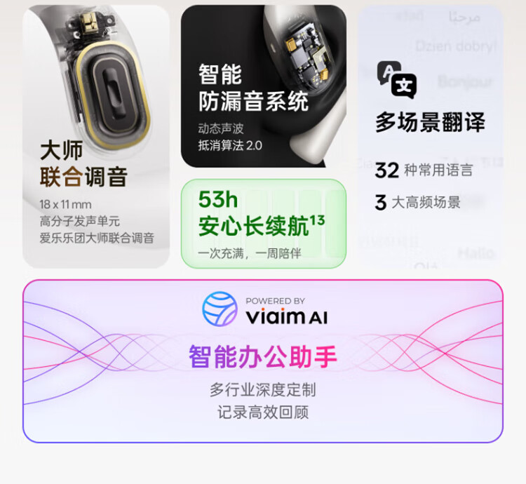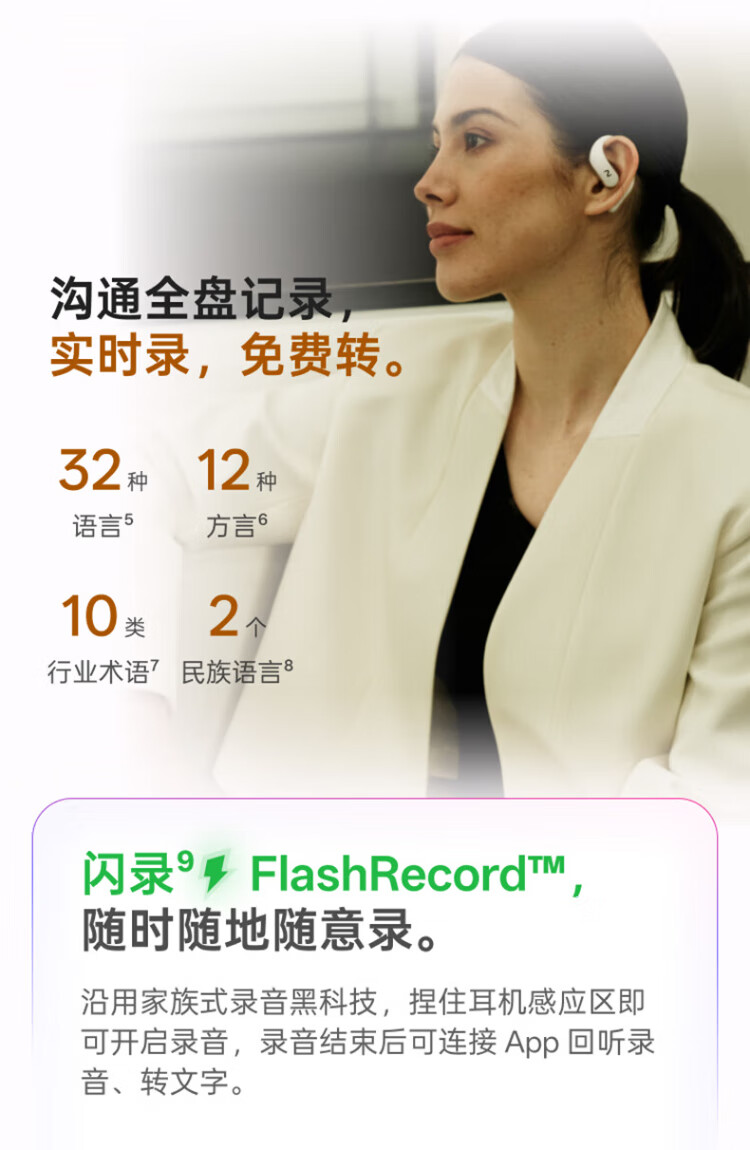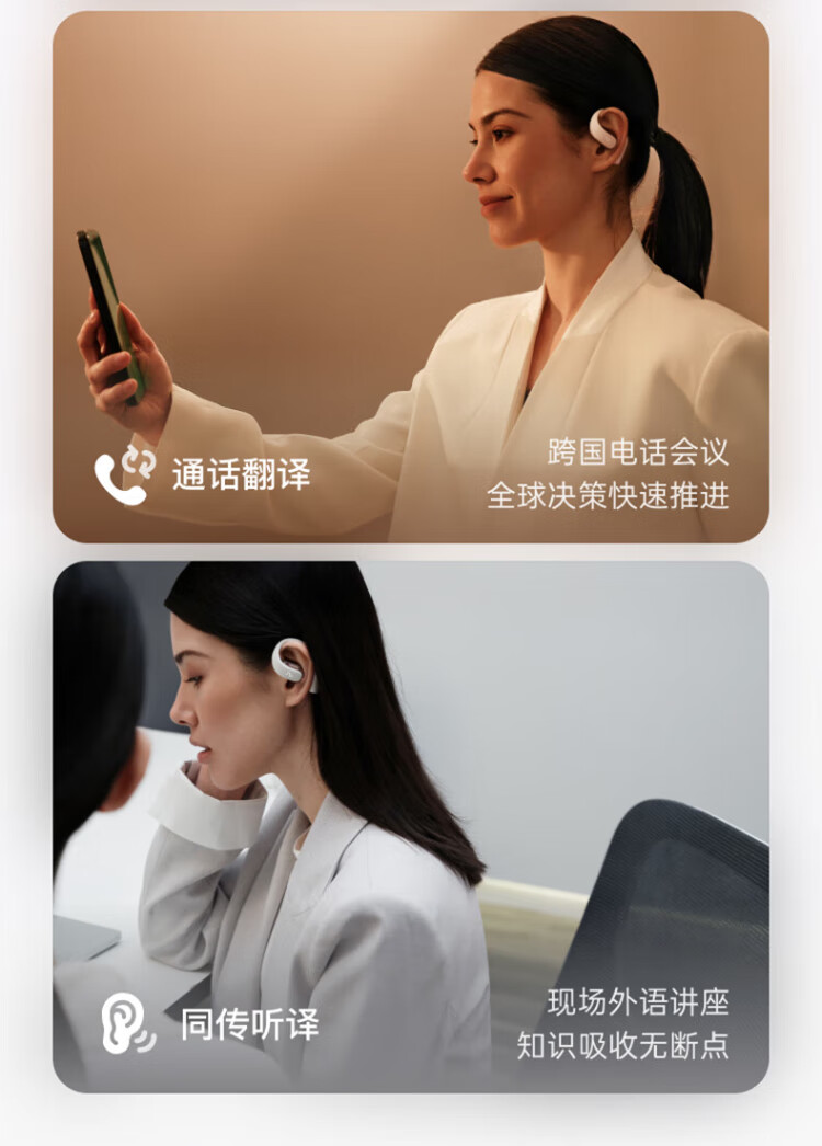 IFlytek Open AI Ear-mounted Wireless Bluetooth Headset Air 2, Mist Black, Sports Intelligent Translation and Noise Reduction, Ultra-Long Battery Life, Compatible with Apple, Huawei, and Xiaomi
