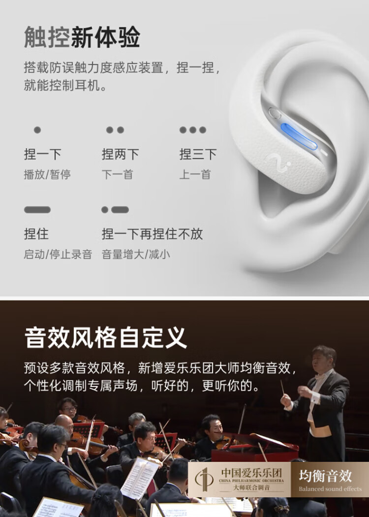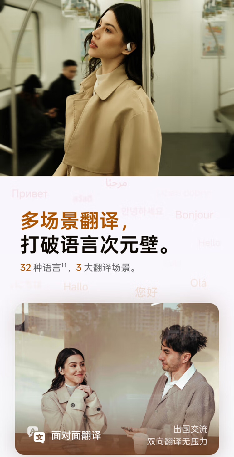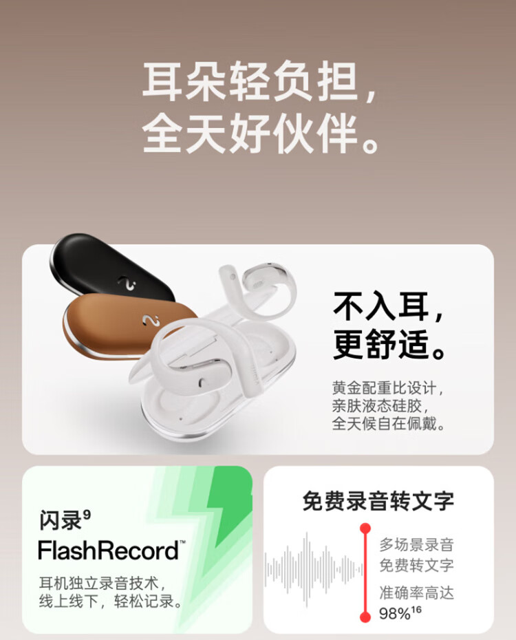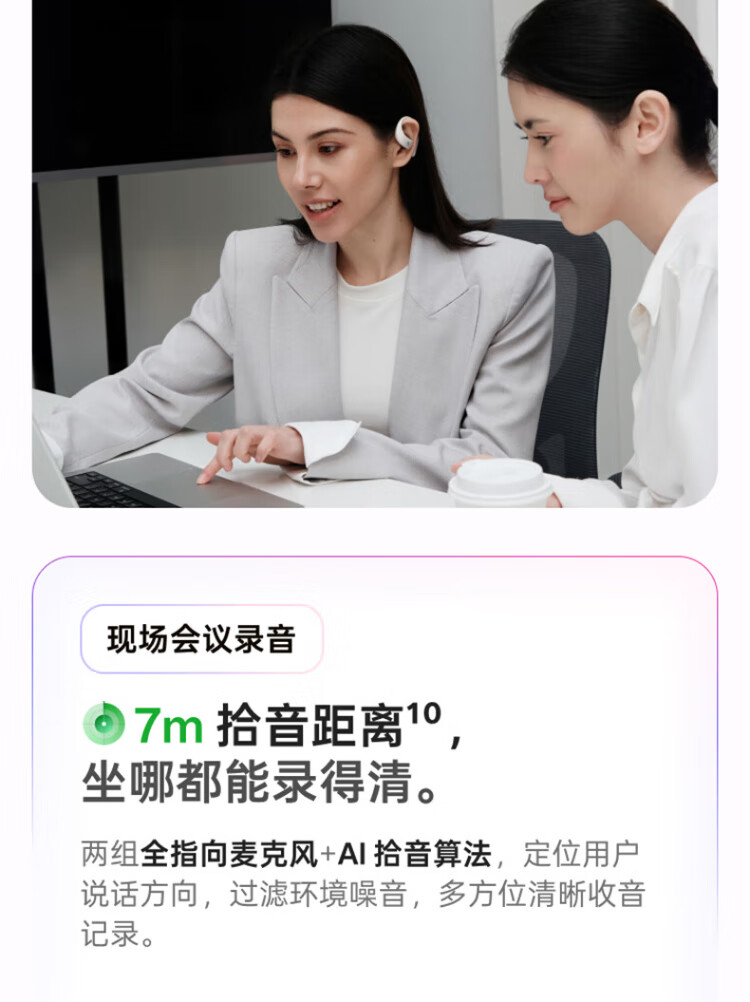 IFlytek Open AI Ear-mounted Wireless Bluetooth Headset Air 2, Mist Black, Sports Intelligent Translation and Noise Reduction, Ultra-Long Battery Life, Compatible with Apple, Huawei, and Xiaomi