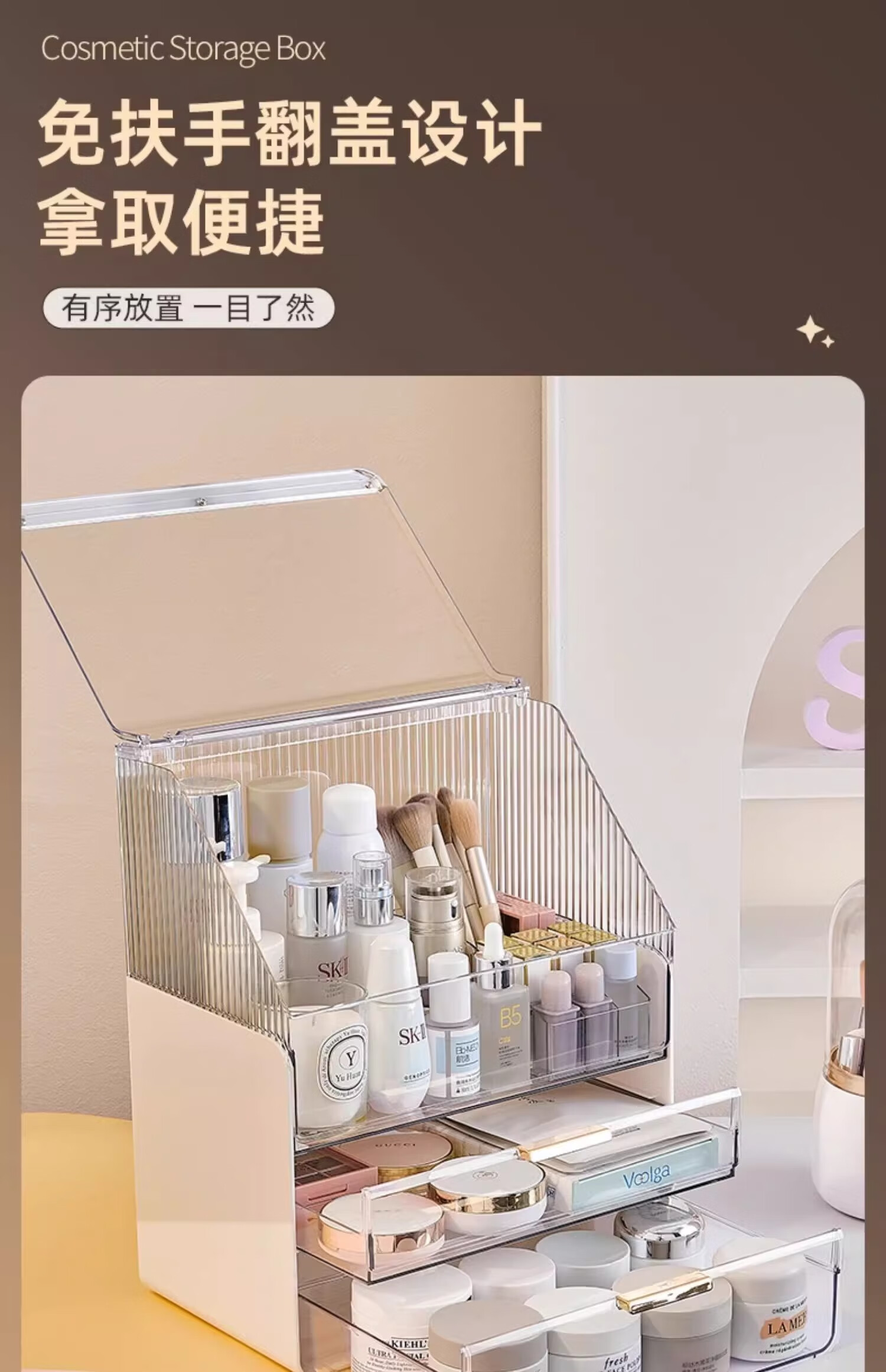 Jiadu high-end cosmetics storage box, dressing table, skin care product storage rack, desktop dust-proof cosmetic box, Chinese Valentine's Day gift